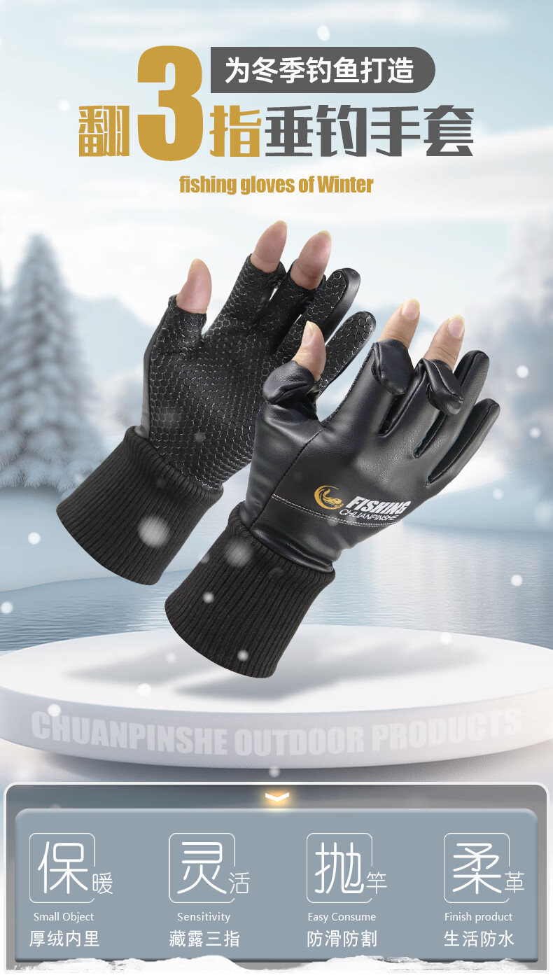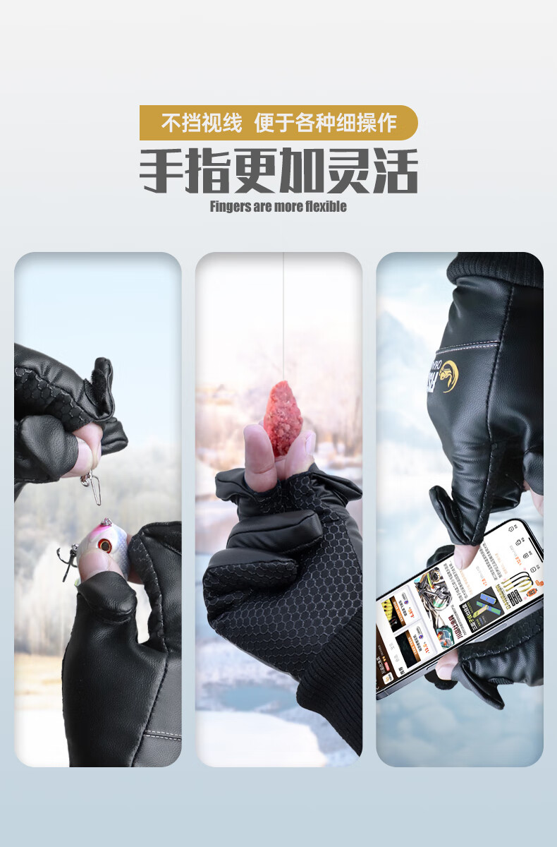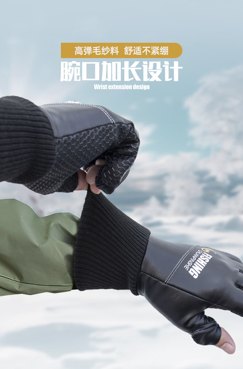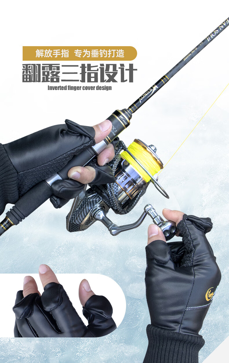 JPHZNB outdoor winter fishing gloves are non-slip, anti-thorn, waterproof, velvet flip-top, leaky finger fishing lure gloves with three fingers exposed