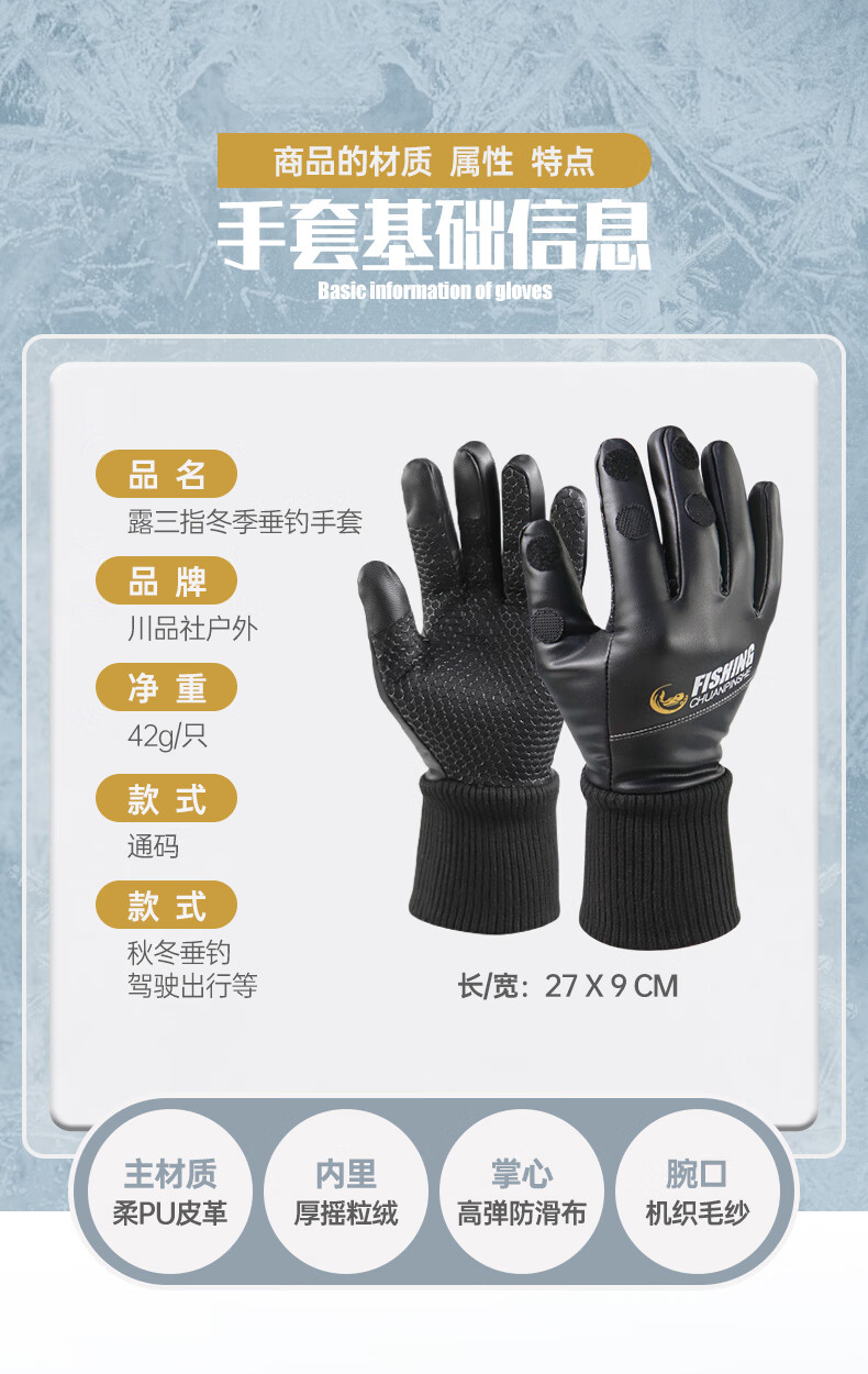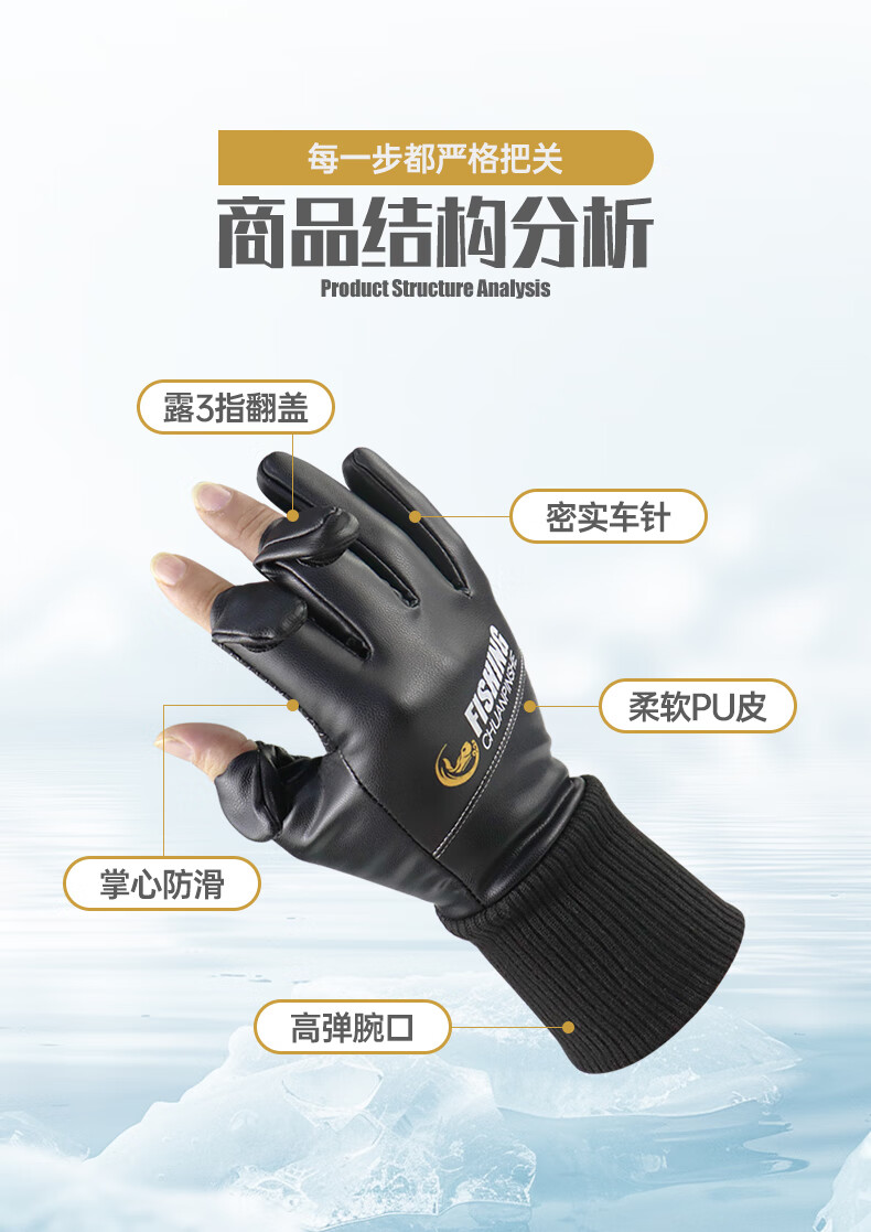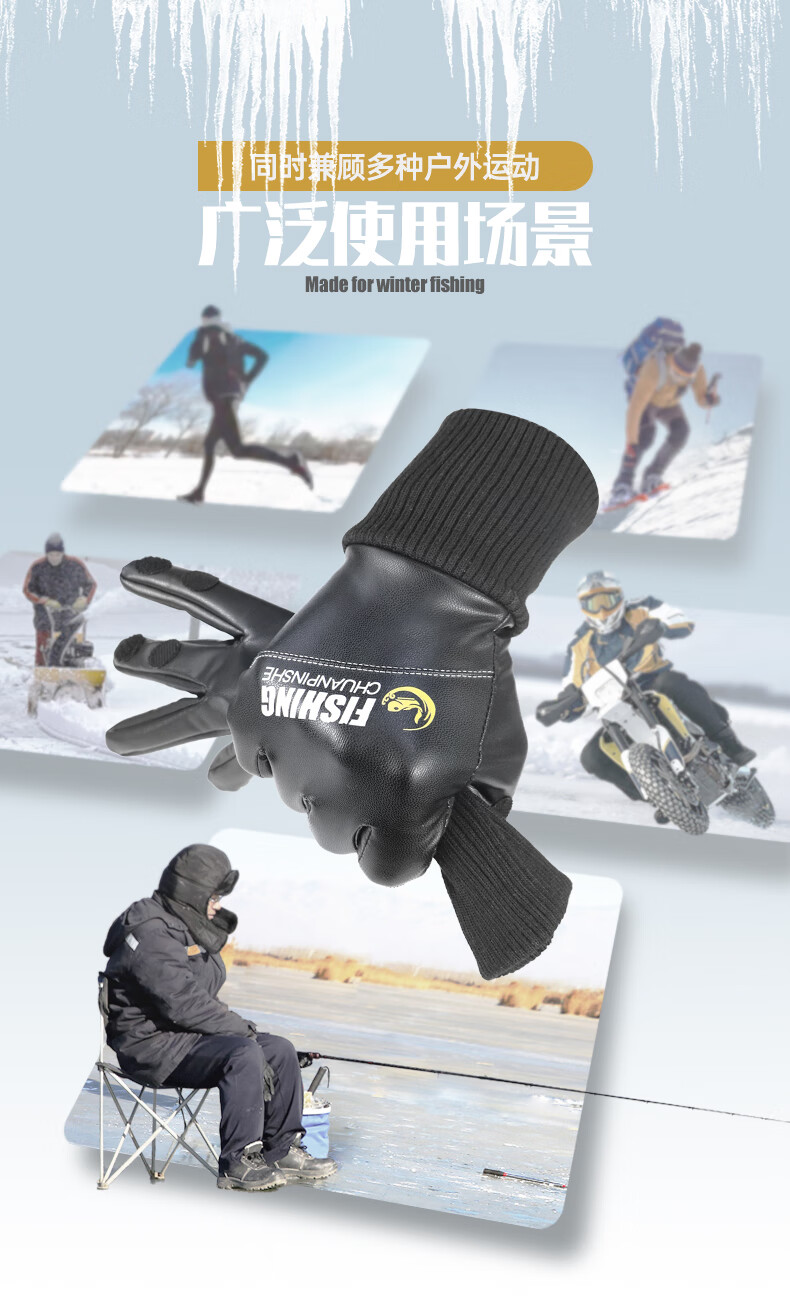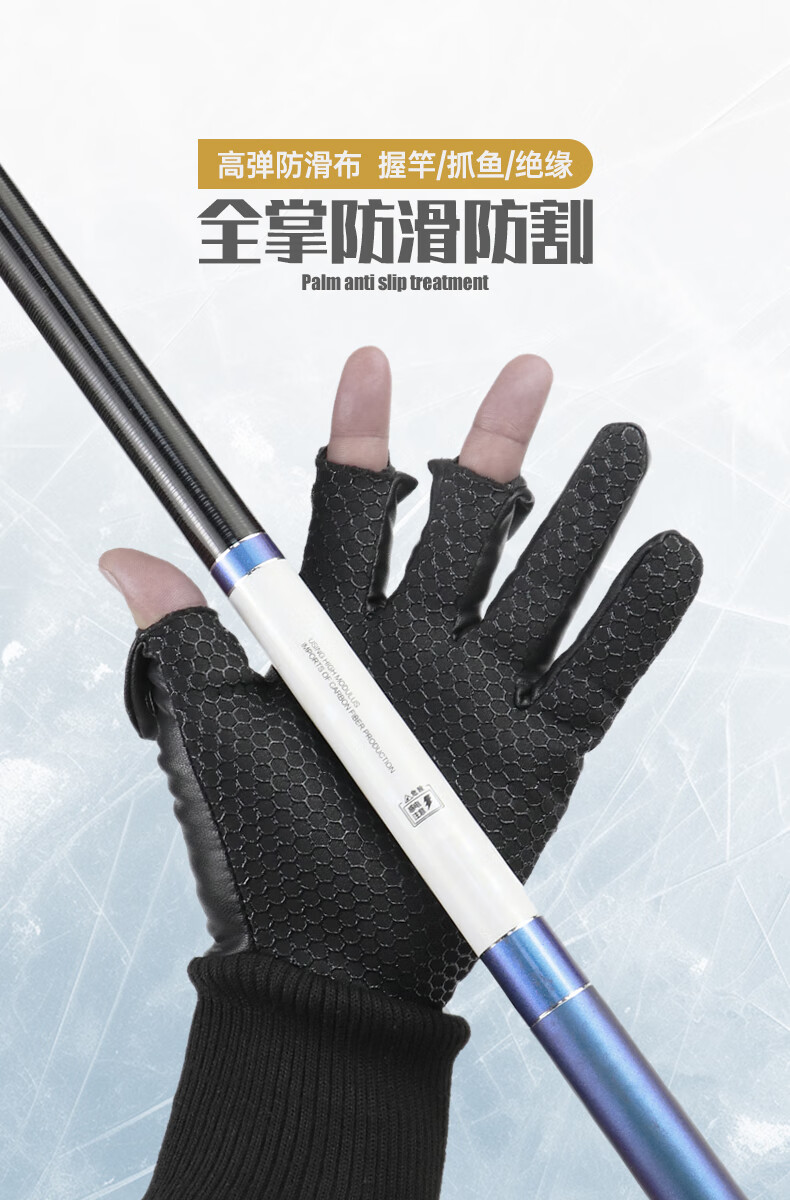JPHZNB outdoor winter fishing gloves are non-slip, anti-thorn, waterproof, velvet flip-top, leaky finger fishing lure gloves with three fingers exposed