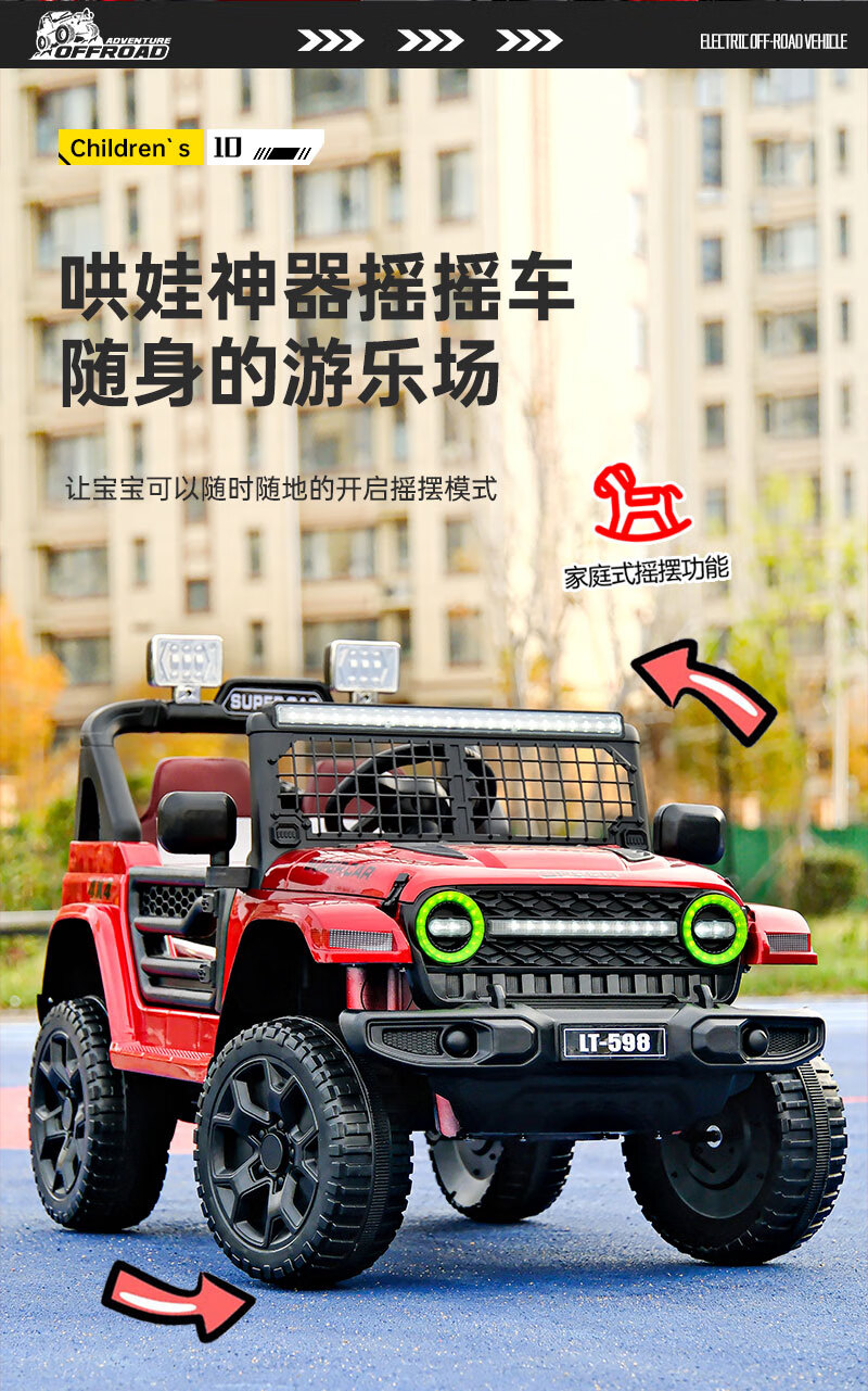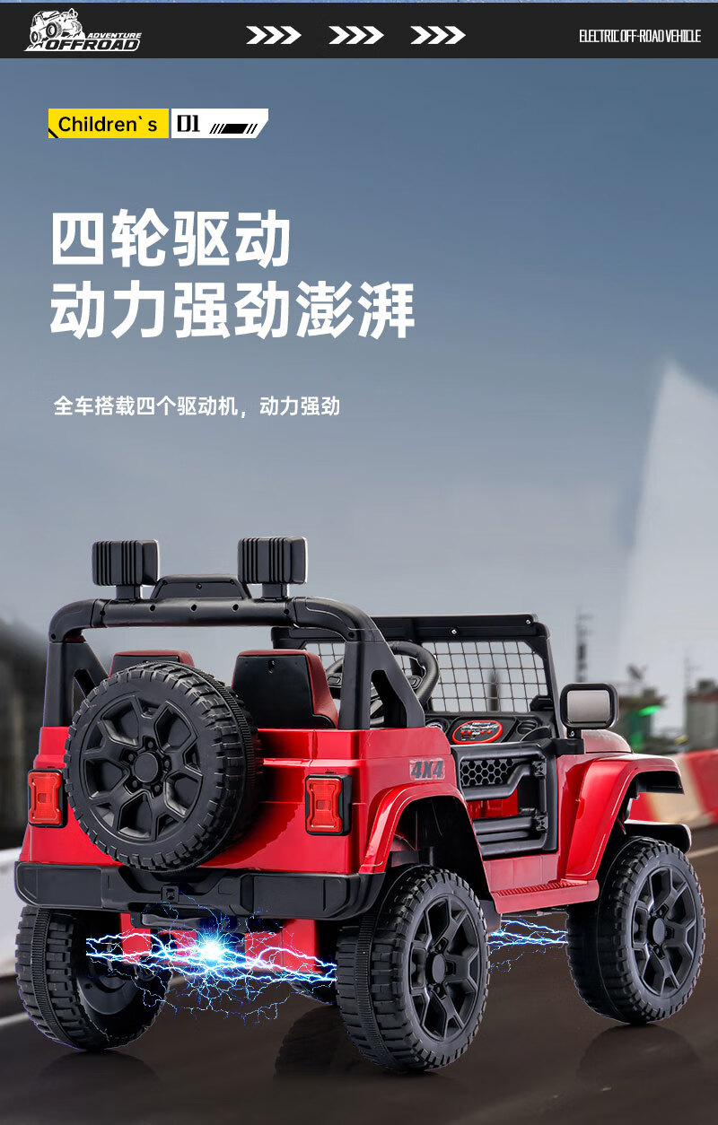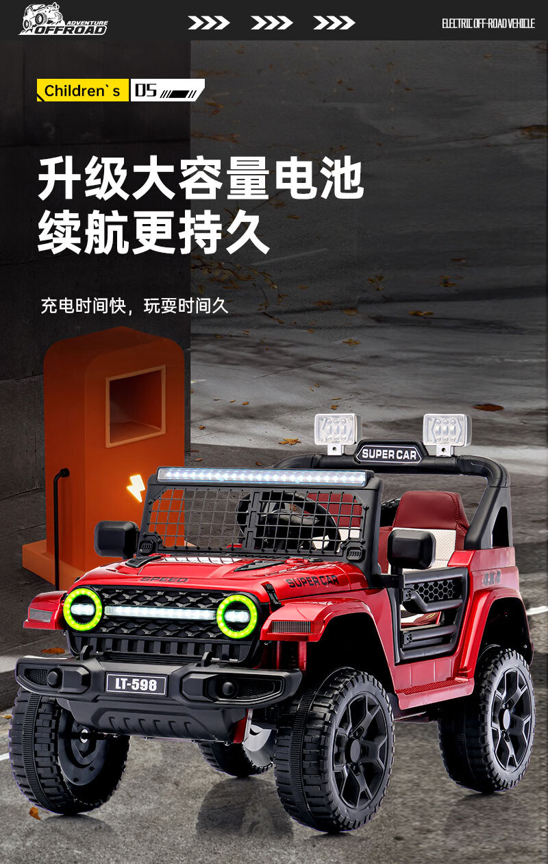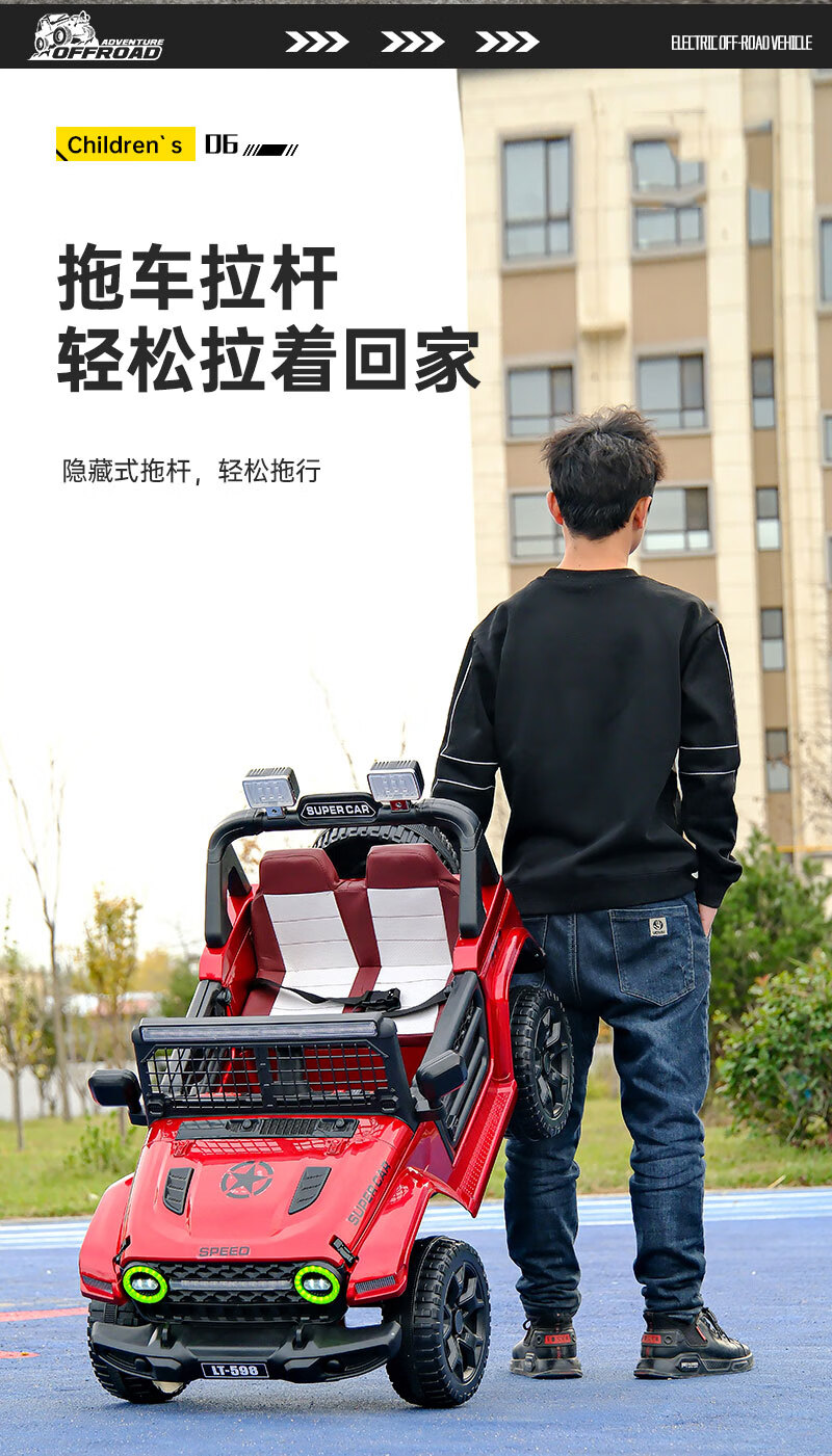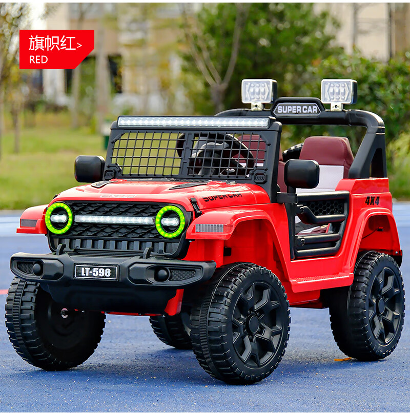 Shanghaojia children's electric car four-wheel toy car can seat 3-6 years old baby remote control car children can drive off-road vehicle red four-wheel drive Bluetooth remote control + leather seat large battery