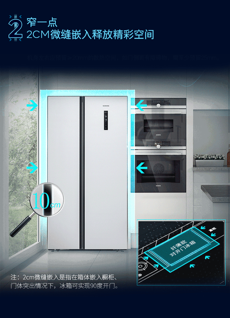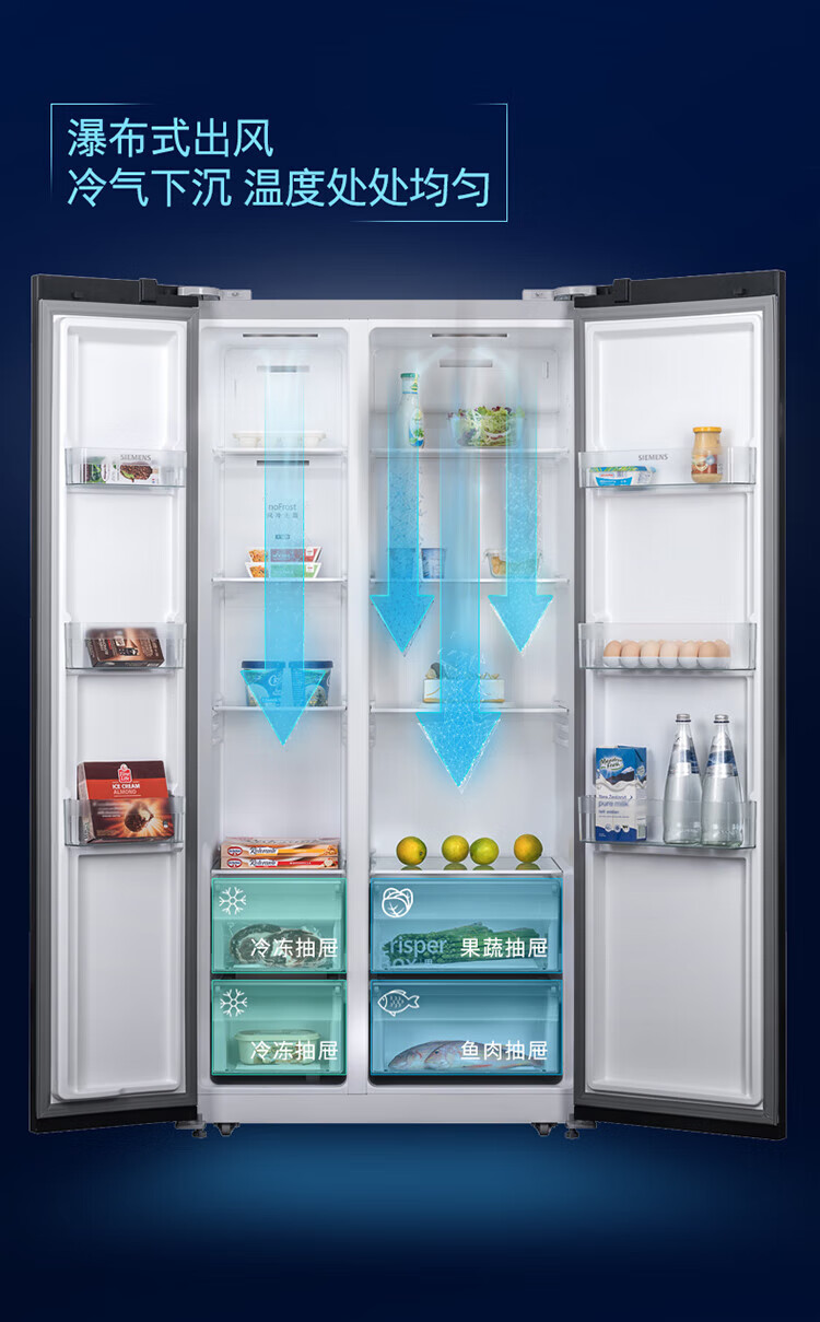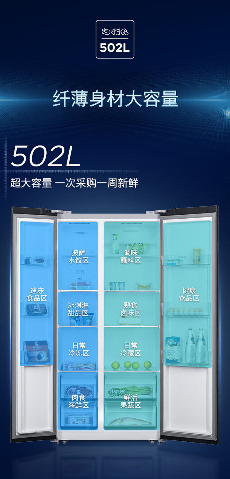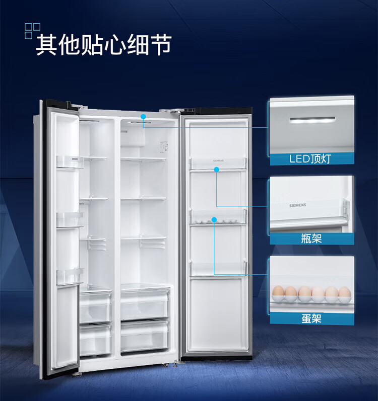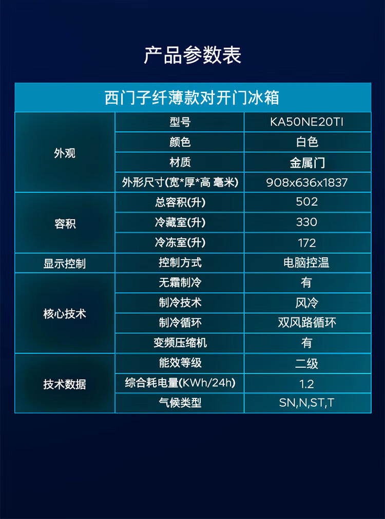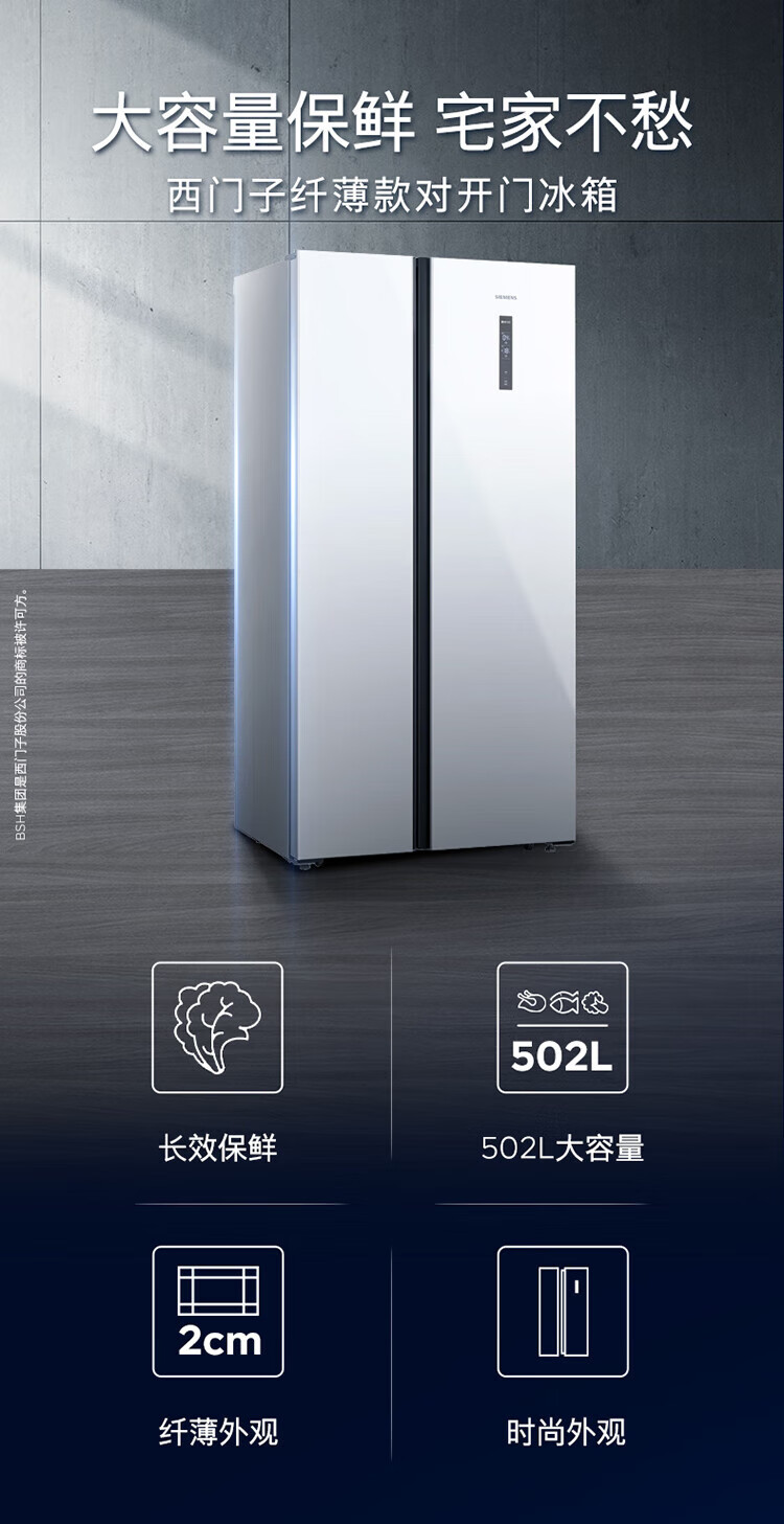 SIEMENS 502L variable frequency frost-free double-door ultra-thin embedded home refrigerator KA50NE20TI Yaogang Black KA95V2138C