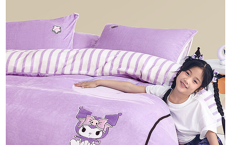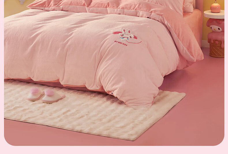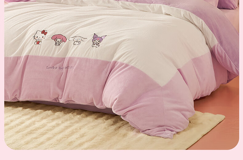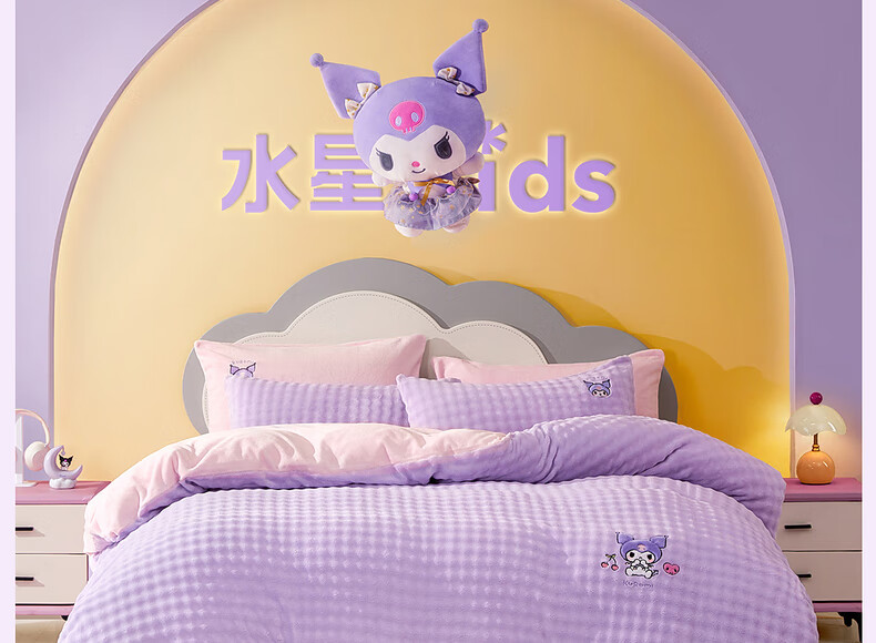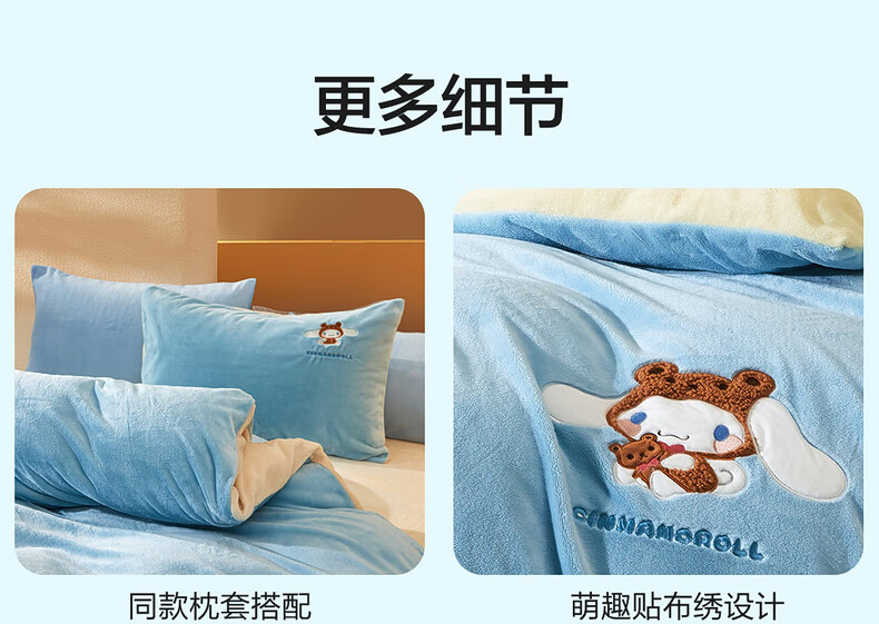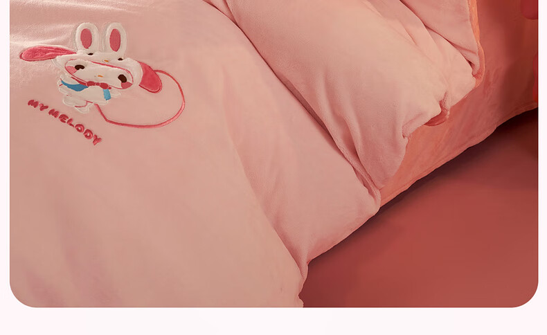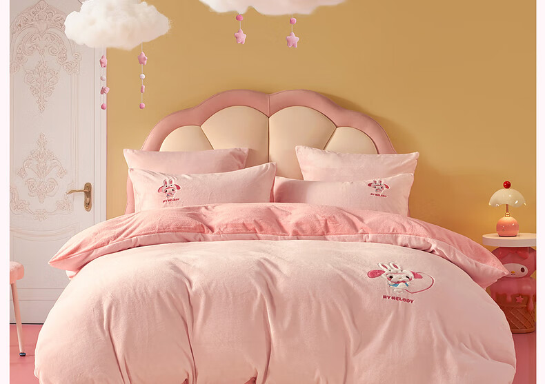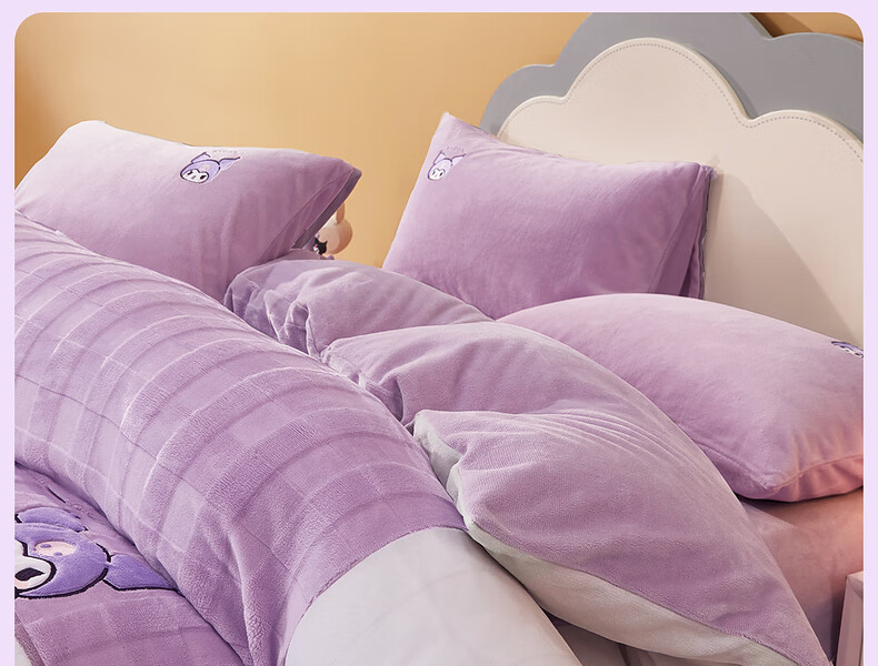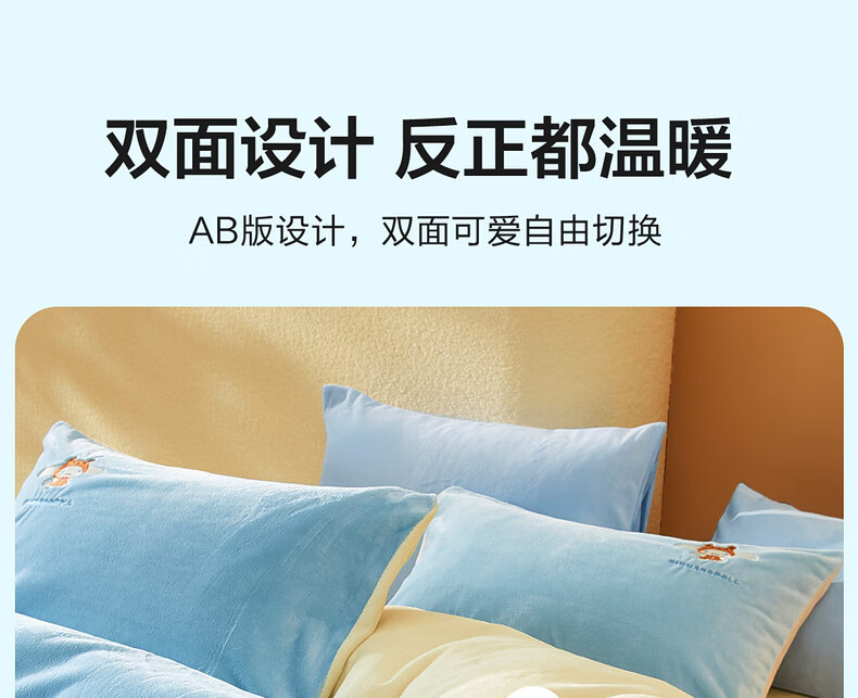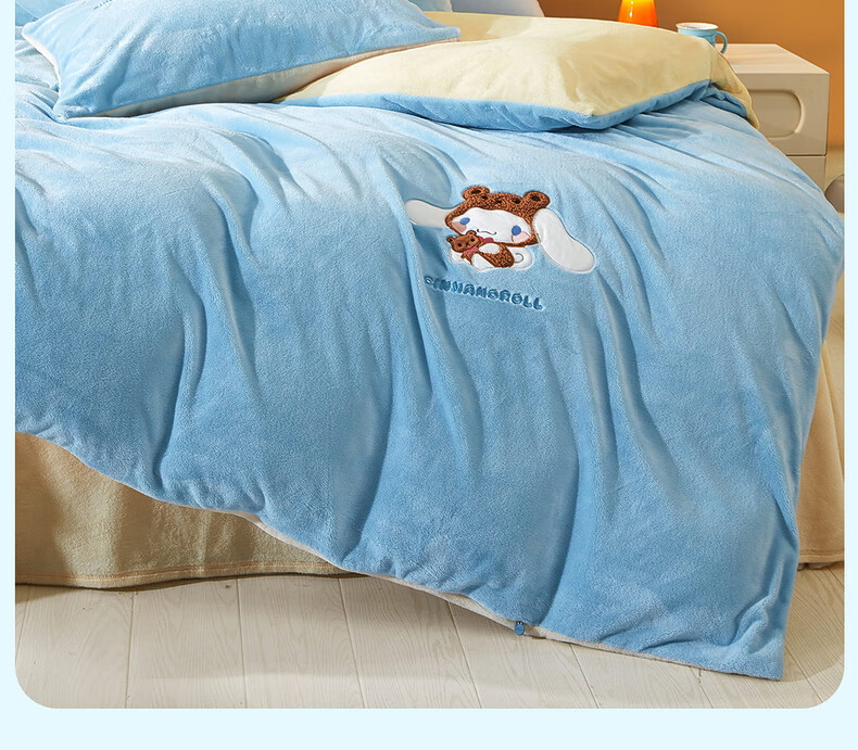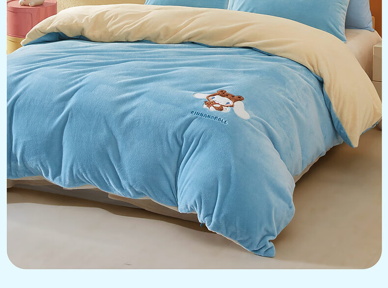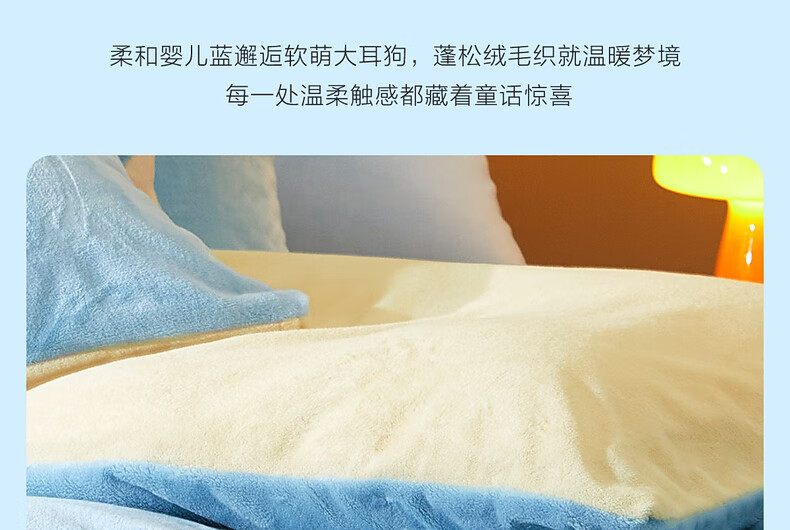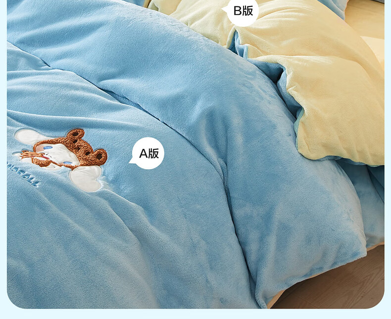 Mercury Home Textiles three/four-piece milk velvet set, infant class A antibacterial warm velvet set, cartoon children's dormitory available, cloud big-eared dog, infant class A/childlike embroidery, bed sheet (quilt cover 150*210cm)