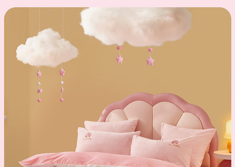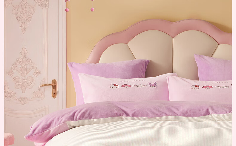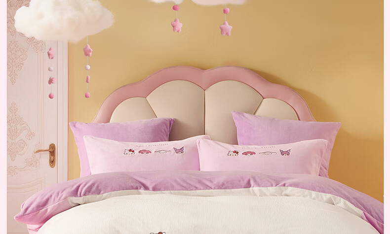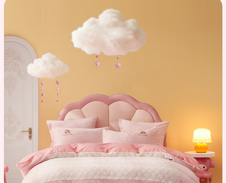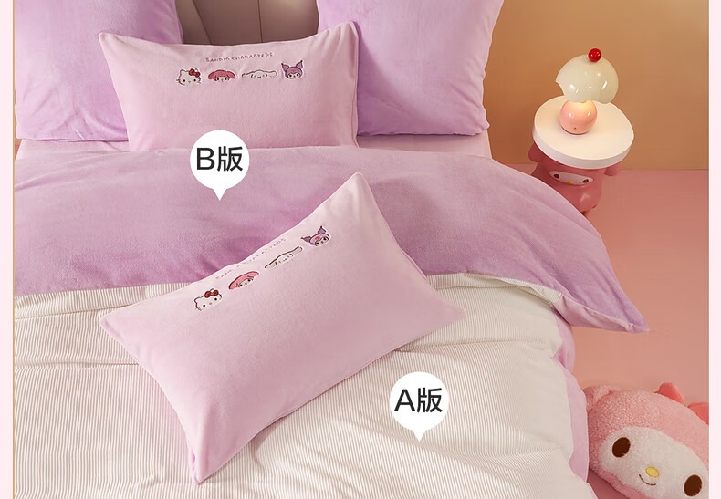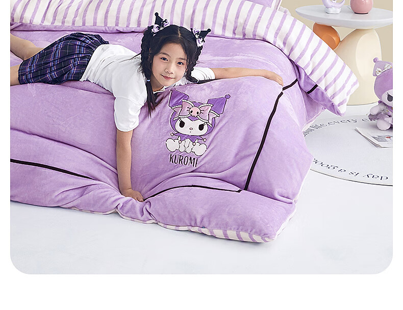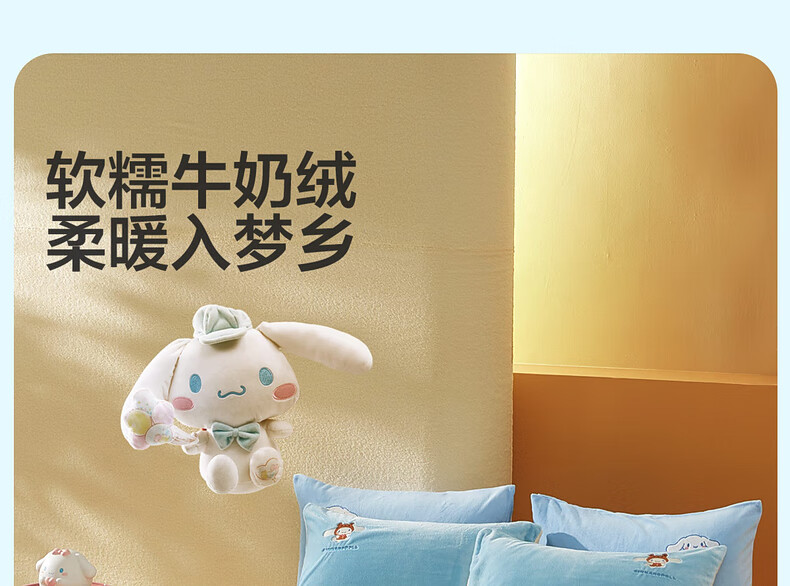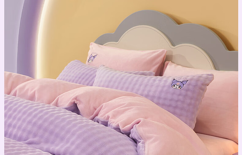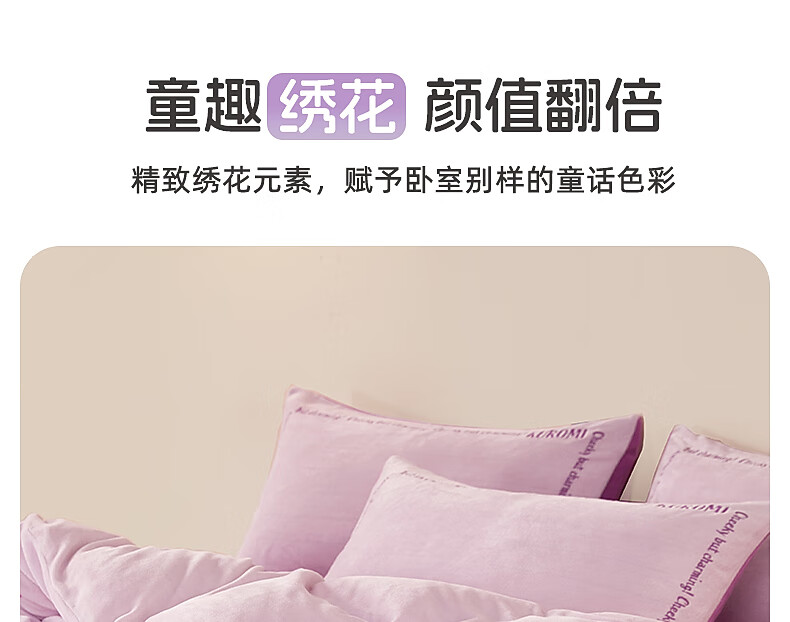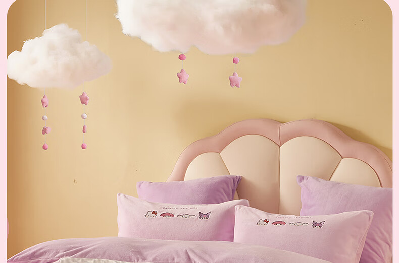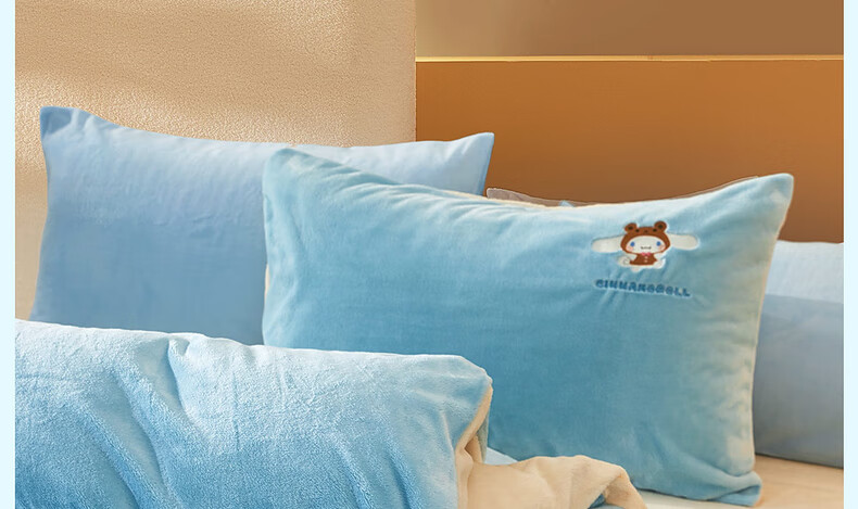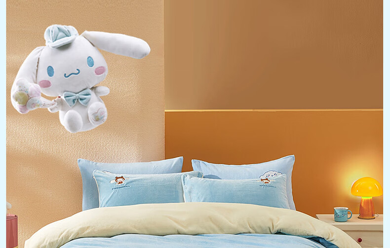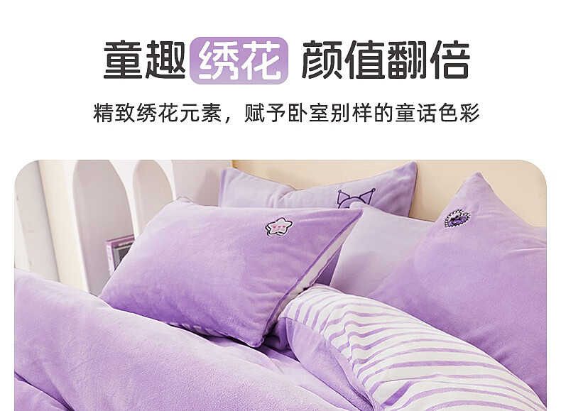 Mercury Home Textiles three/four-piece milk velvet set, infant class A antibacterial warm velvet set, cartoon children's dormitory available, cloud big-eared dog, infant class A/childlike embroidery, bed sheet (quilt cover 150*210cm)