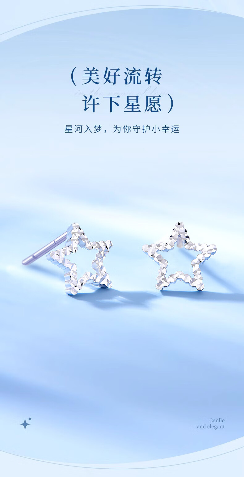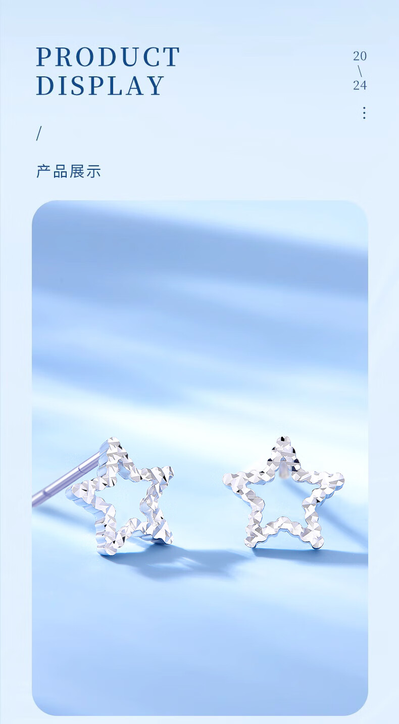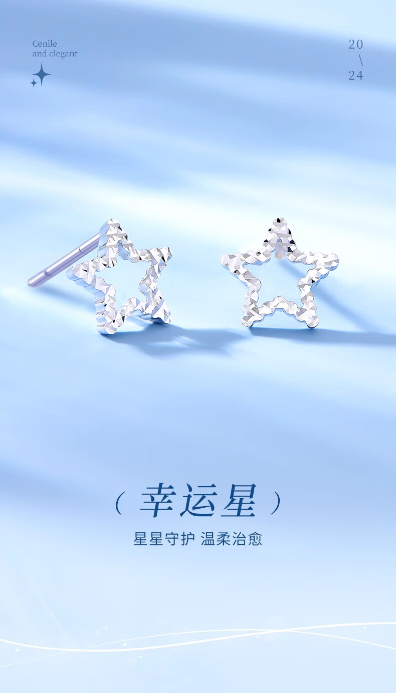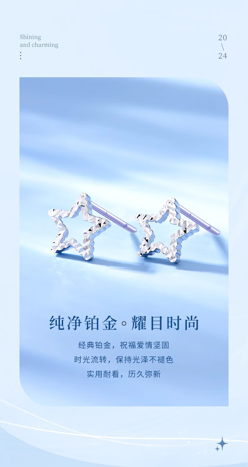 China Gold (CHINA GOLD) Star Earrings for Women PT950 Platinum New Lucky Star Valentine's Day Birthday Gift for Girlfriend and Wife Star Platinum Earrings About 1.8g