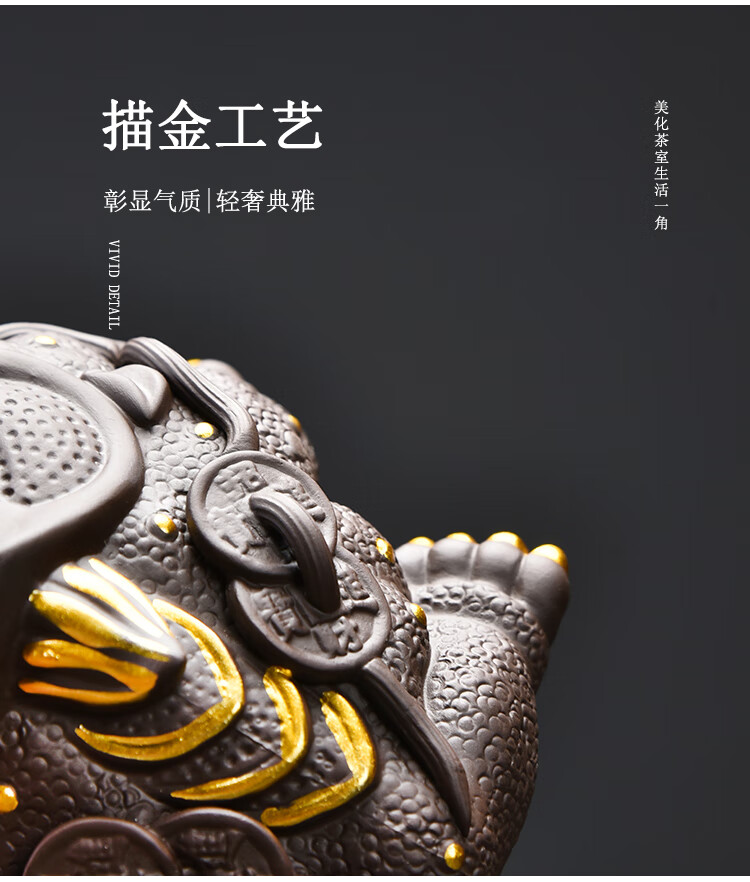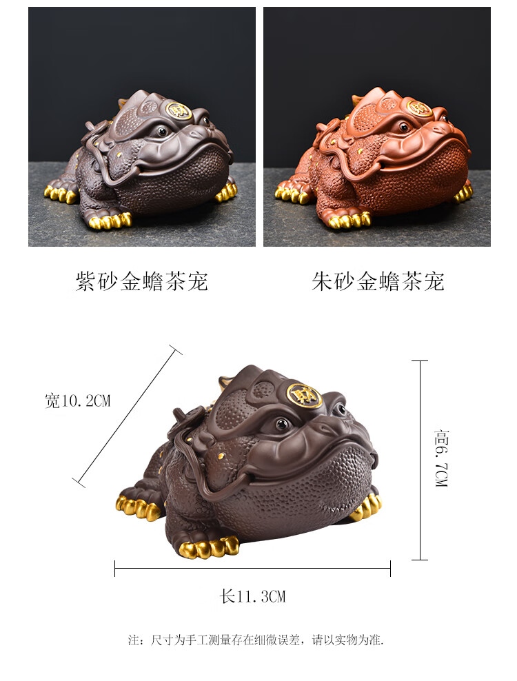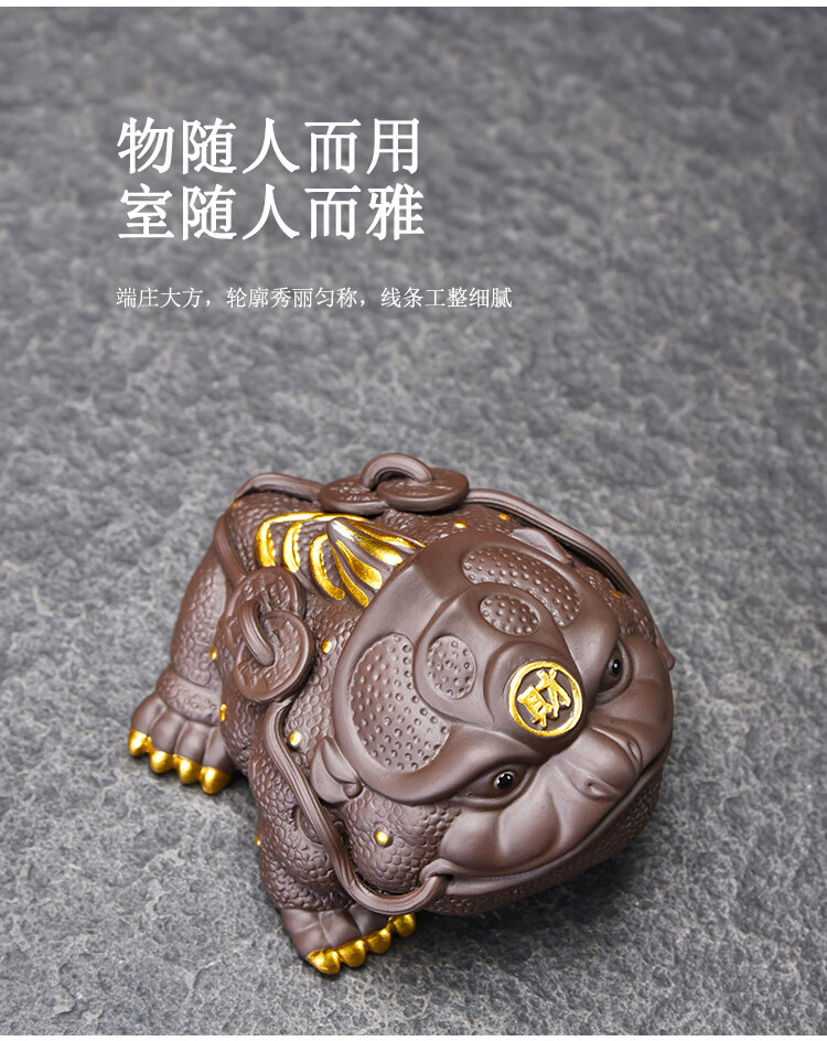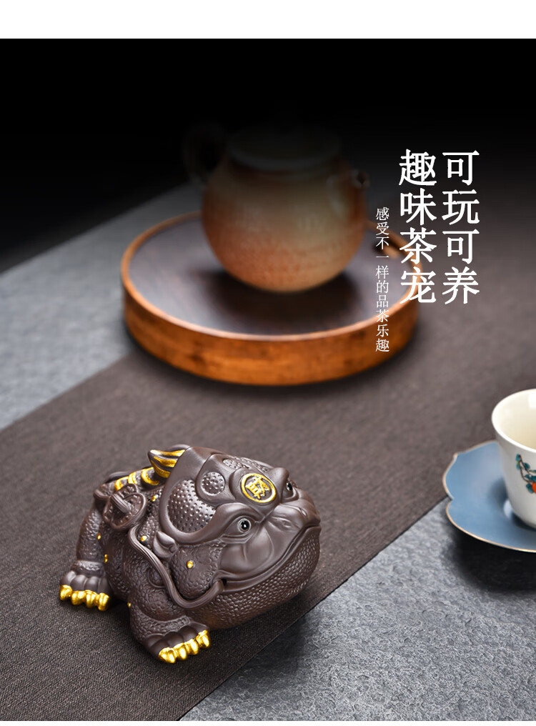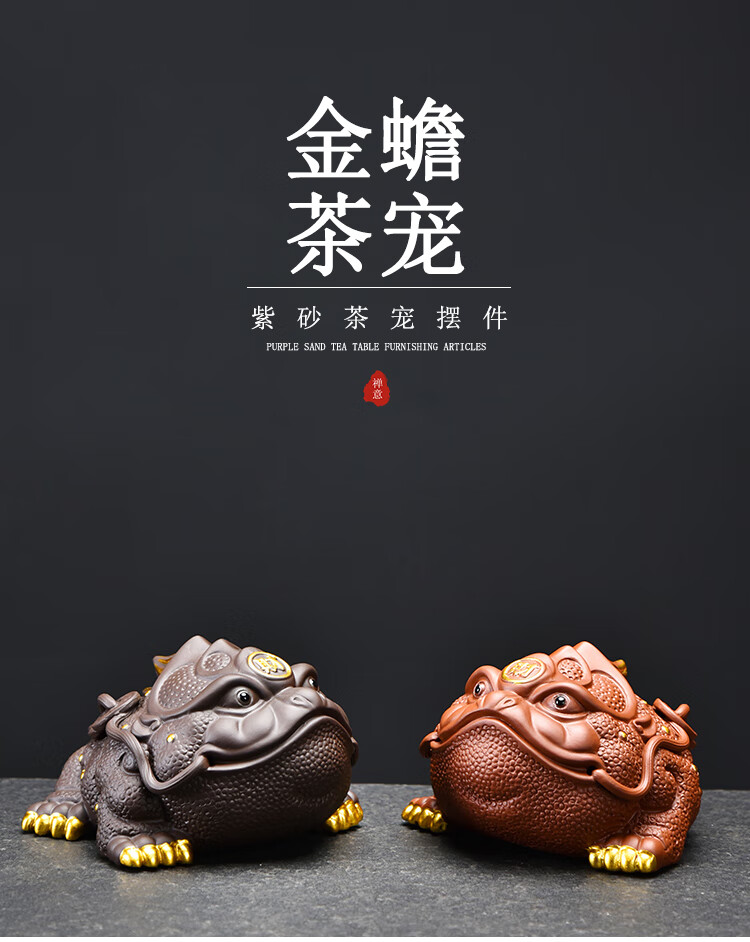 Yundi Zisha Golden Toad Tea Pet Ornaments Boutique Can Keep Tea Tables Tea Table Ornaments High-end Lucky Toad Tea Play Zisha Lucky Golden Toad-Purple Clay Small Size As Pictured