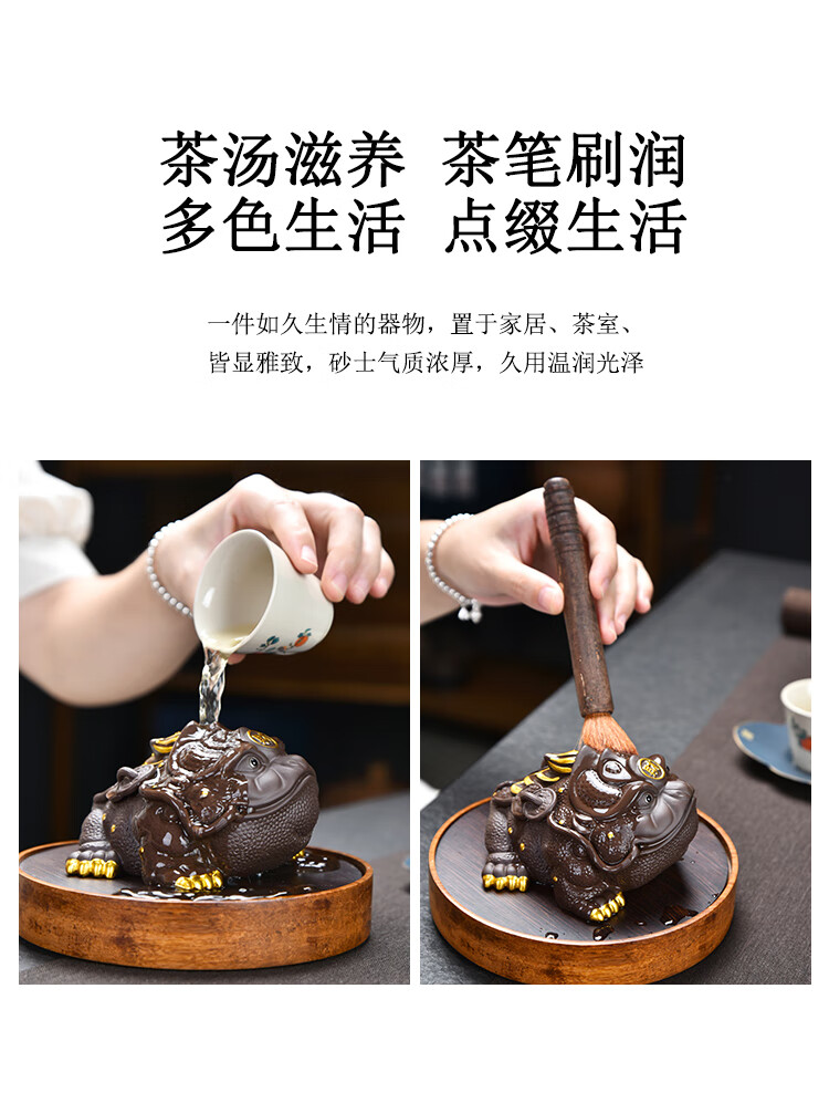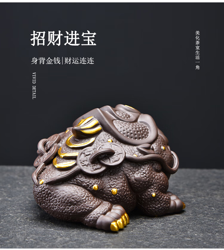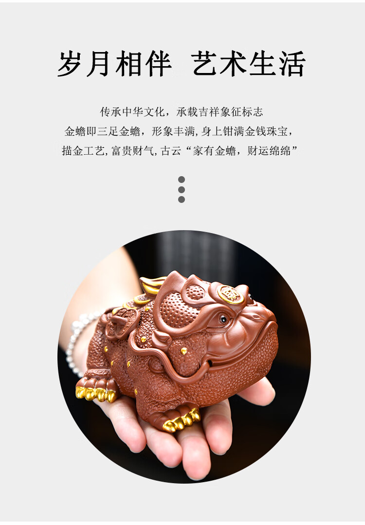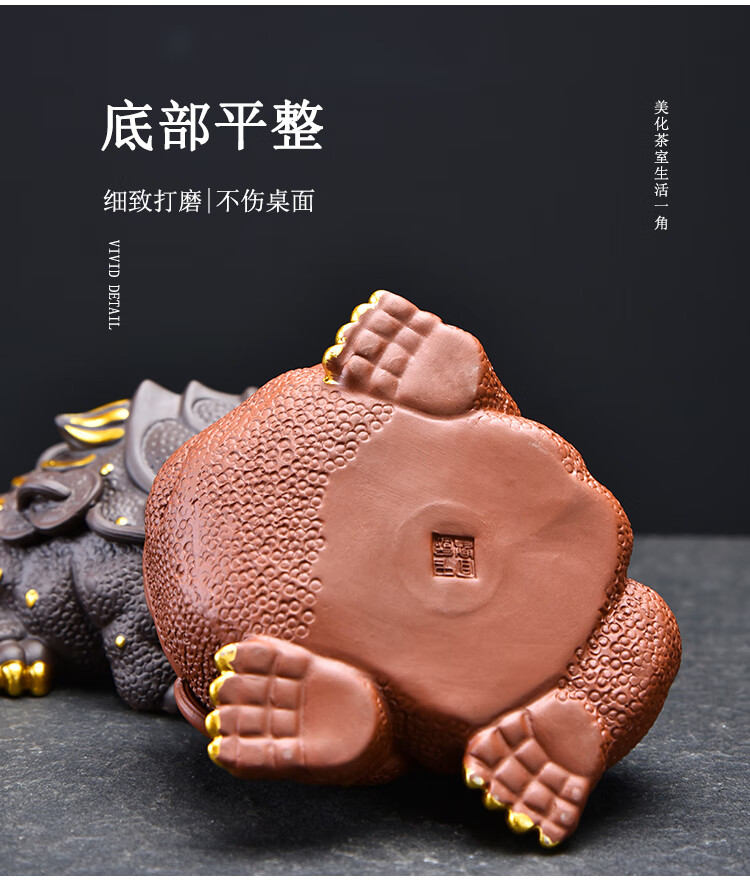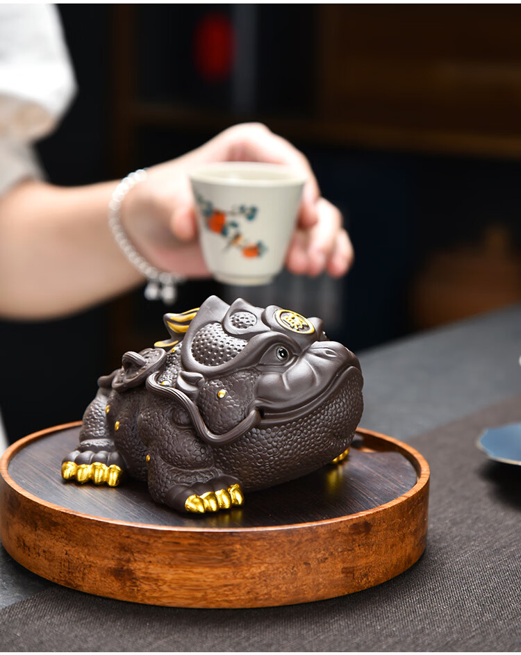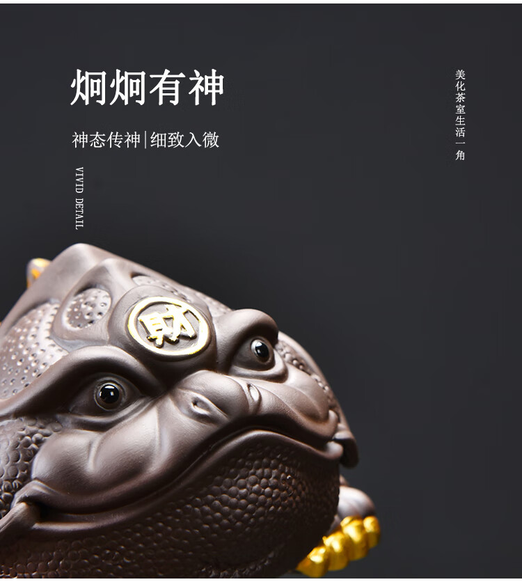 Yundi Zisha Golden Toad Tea Pet Ornaments Boutique Can Keep Tea Tables Tea Table Ornaments High-end Lucky Toad Tea Play Zisha Lucky Golden Toad-Purple Clay Small Size As Pictured