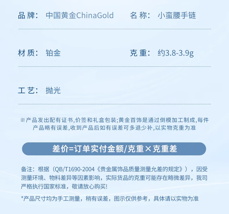 China Gold (CHINA GOLD) new small waist platinum bracelet pt950 platinum chain Valentine's Day birthday gift for girlfriend and wife small waist platinum bracelet about 4.3g
