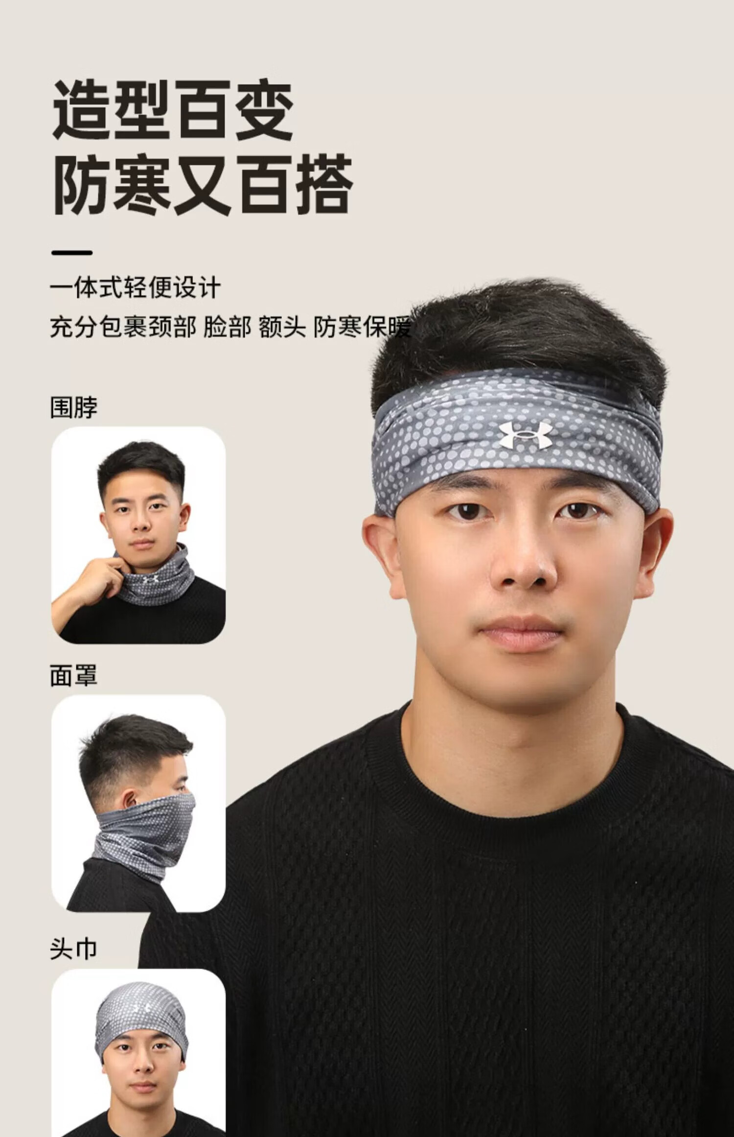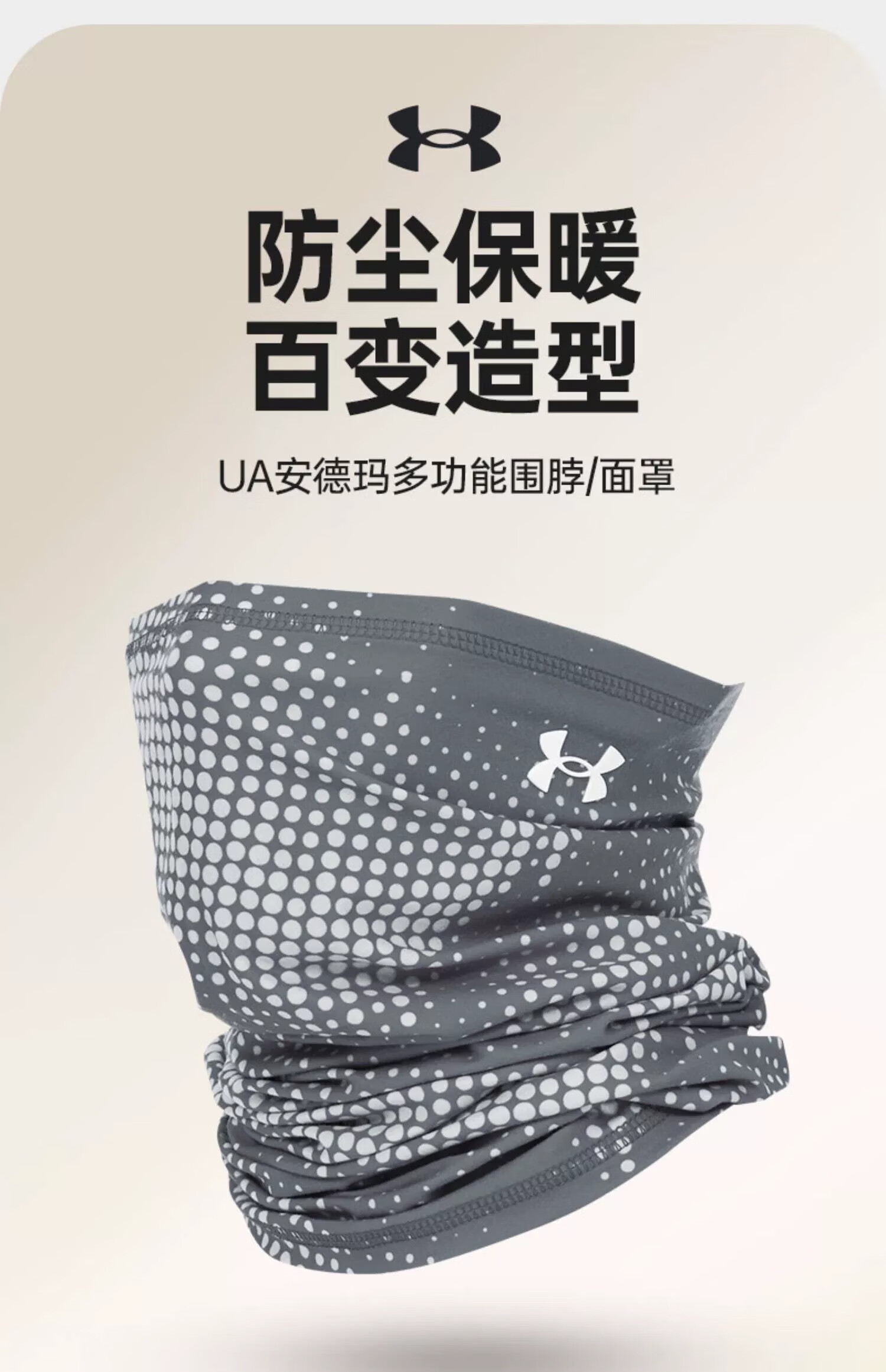 Under Armor thermal mask sports cycling mask UA fishing windproof and cold-proof neck scarf outdoor sunshade 23510501-009 light gray