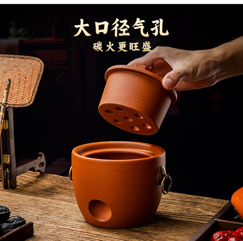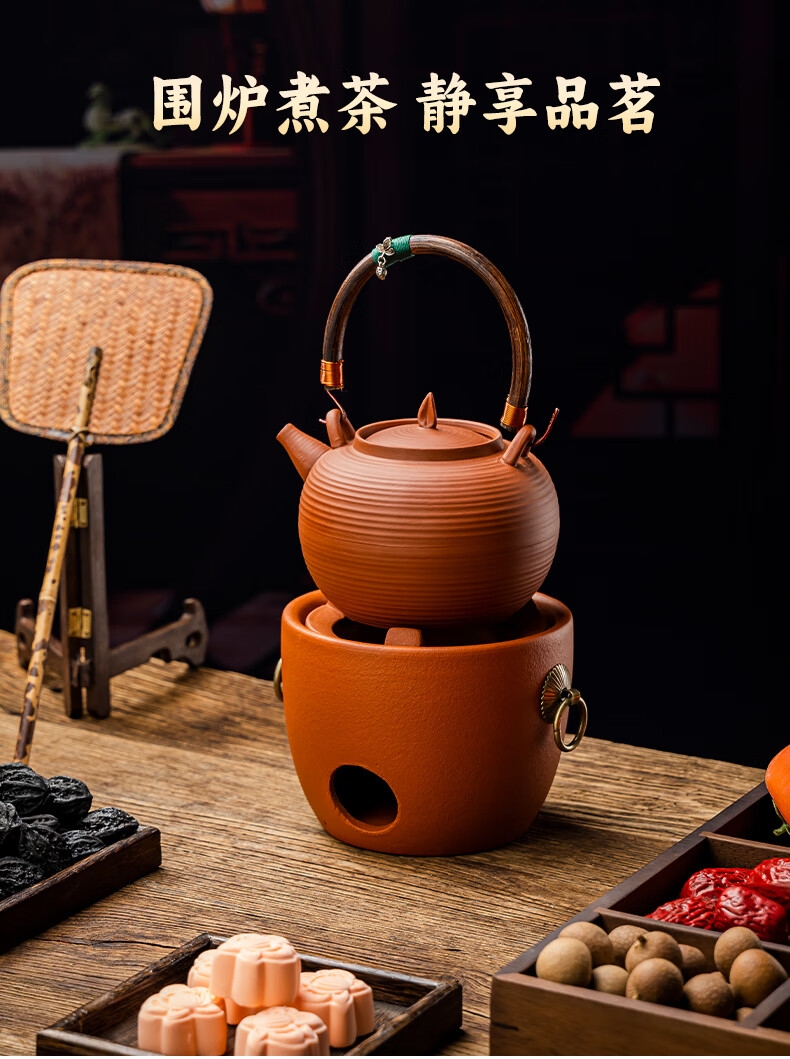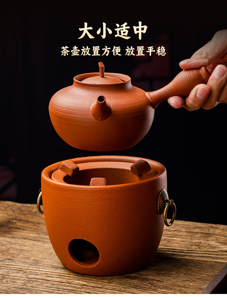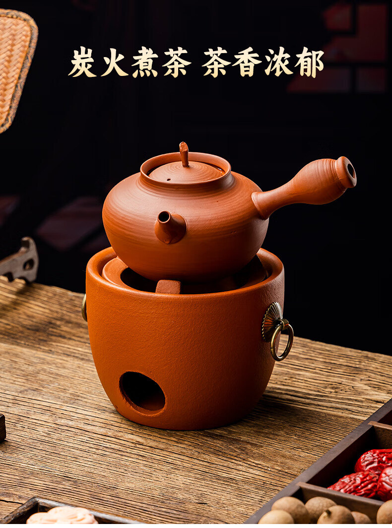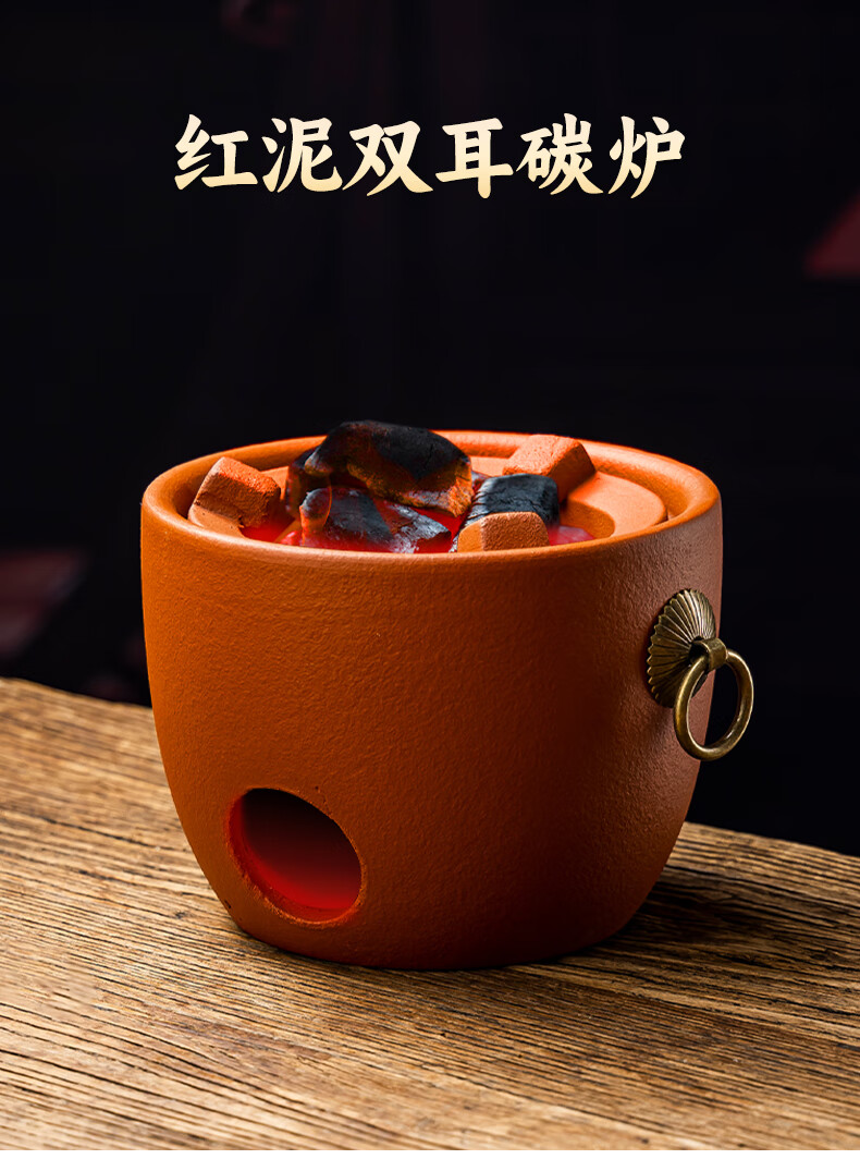 Rongshantang red clay small stove, charcoal stove, outdoor tea stove, charcoal stove, tea pot around the stove, outdoor stove, charcoal stove, charcoal charcoal stove, red clay ball handle kettle + Yuanyuan charcoal stove