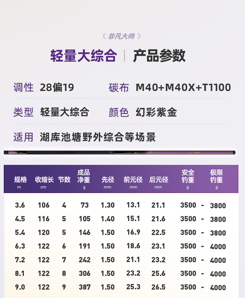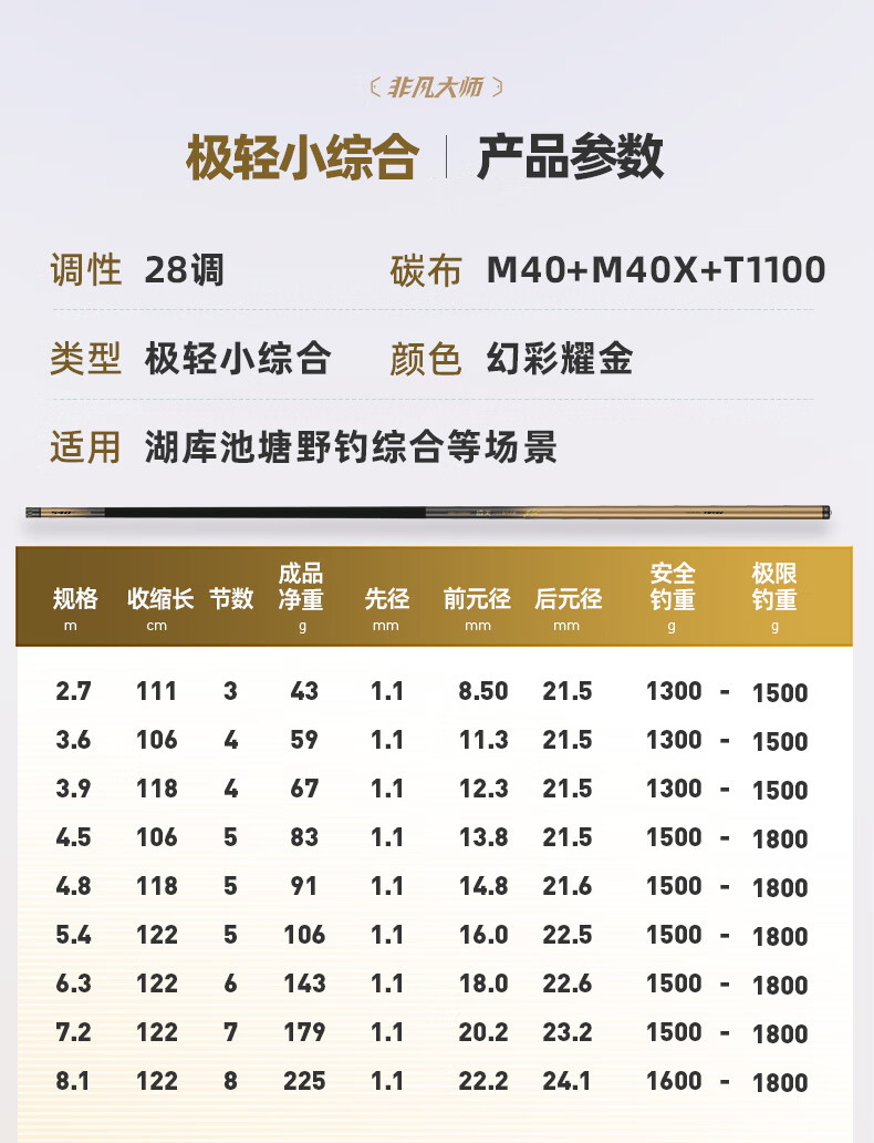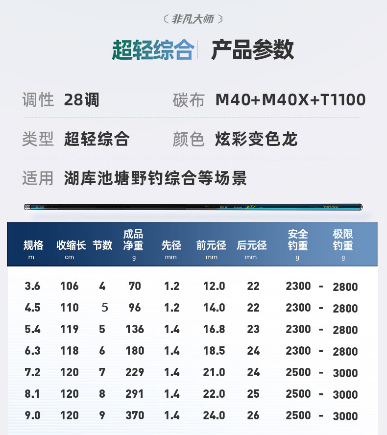 Chuangwei Lingtian Extraordinary Master Extremely Light and Small Comprehensive Ultra-light Fishing Rod Platform Fishing Rod Fishing Rod Hand Rod Silver Carp and Bighead Carp Fishing Rod Large Rod 2.7m Extremely Light and Comprehensive