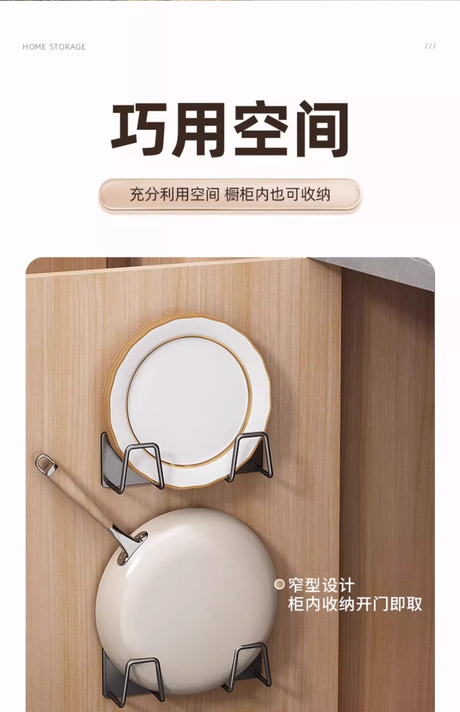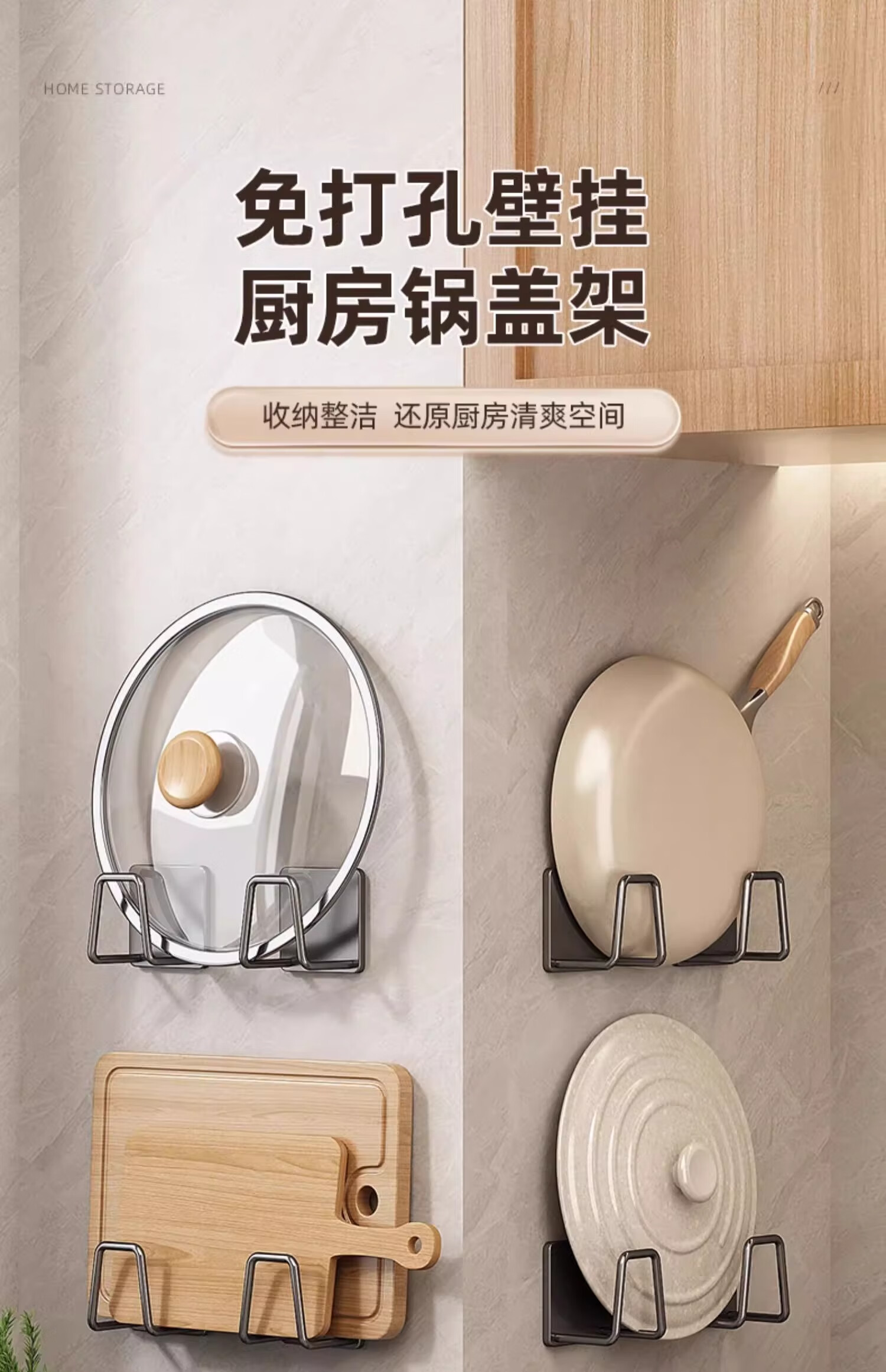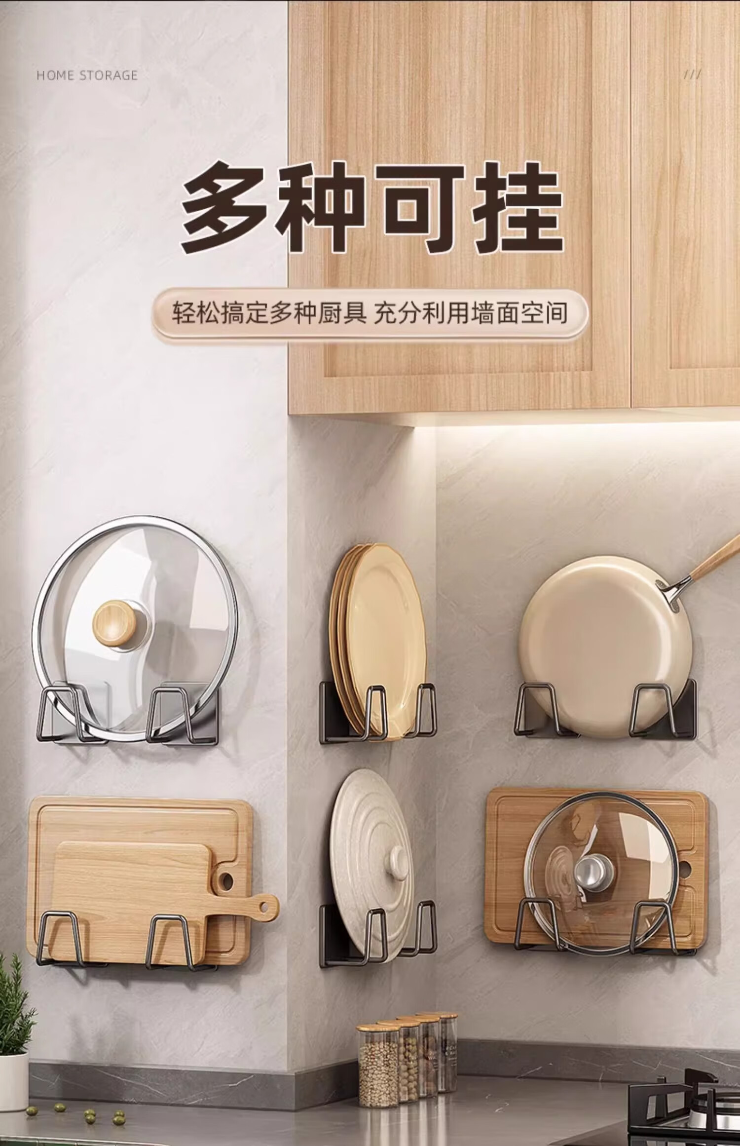 YOUQIN Stainless Steel Pot Lid Rack Kitchen Storage Rack No-Punch Wall-Mounted Multifunctional Chopping Board Rack Wall Chopping Board Storage Pair Pack Pot Lid Rack-Gun Ash No-Punching