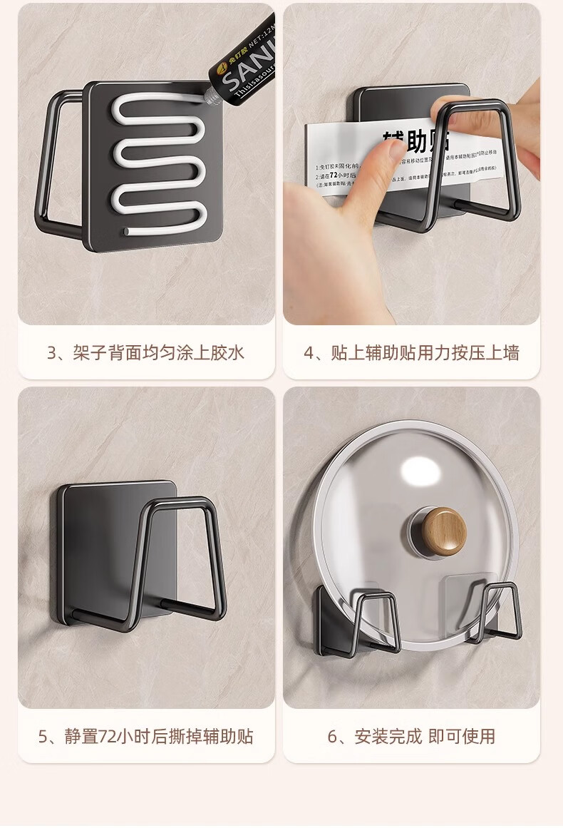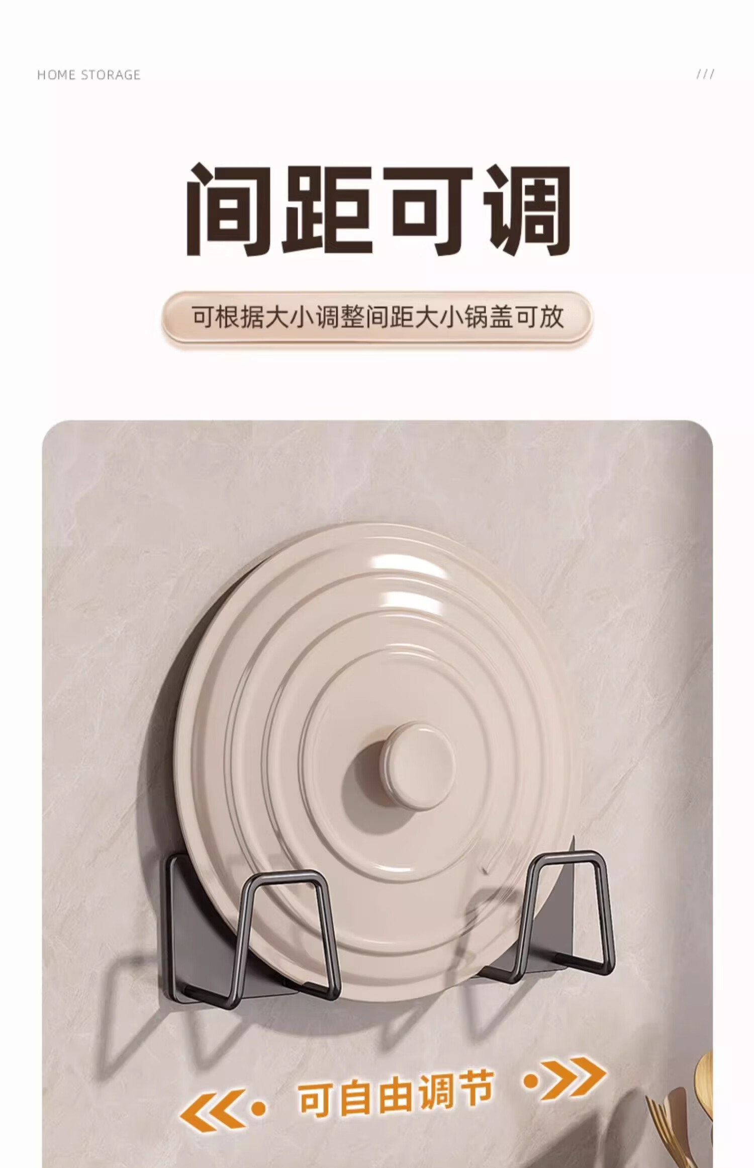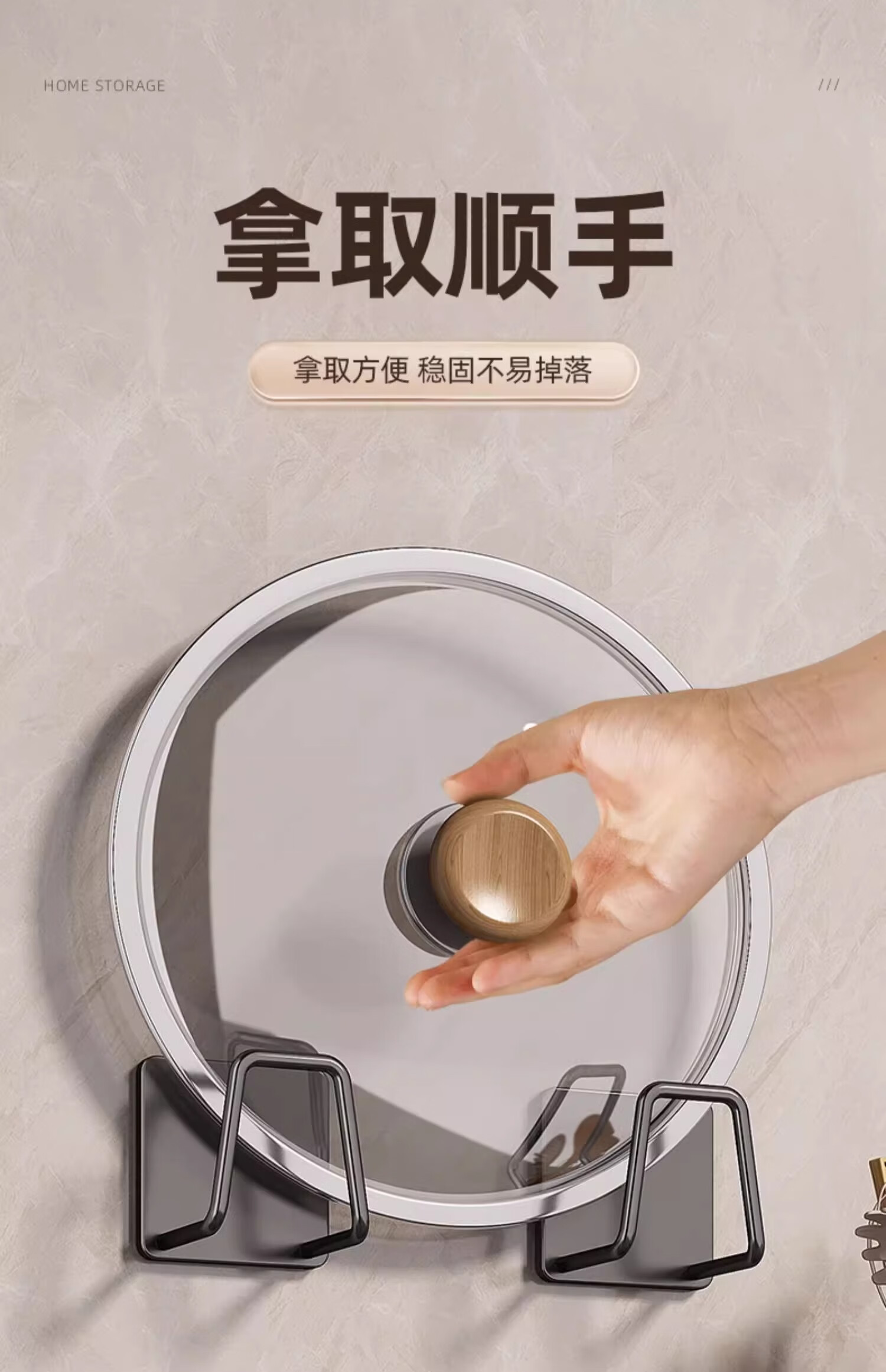 YOUQIN Stainless Steel Pot Lid Rack Kitchen Storage Rack No-Punch Wall-Mounted Multifunctional Chopping Board Rack Wall Chopping Board Storage Pair Pack Pot Lid Rack-Gun Ash No-Punching
