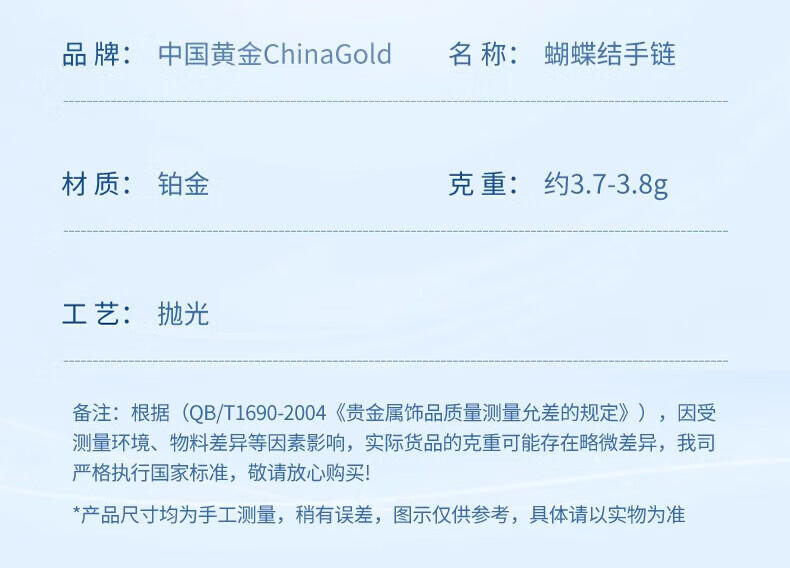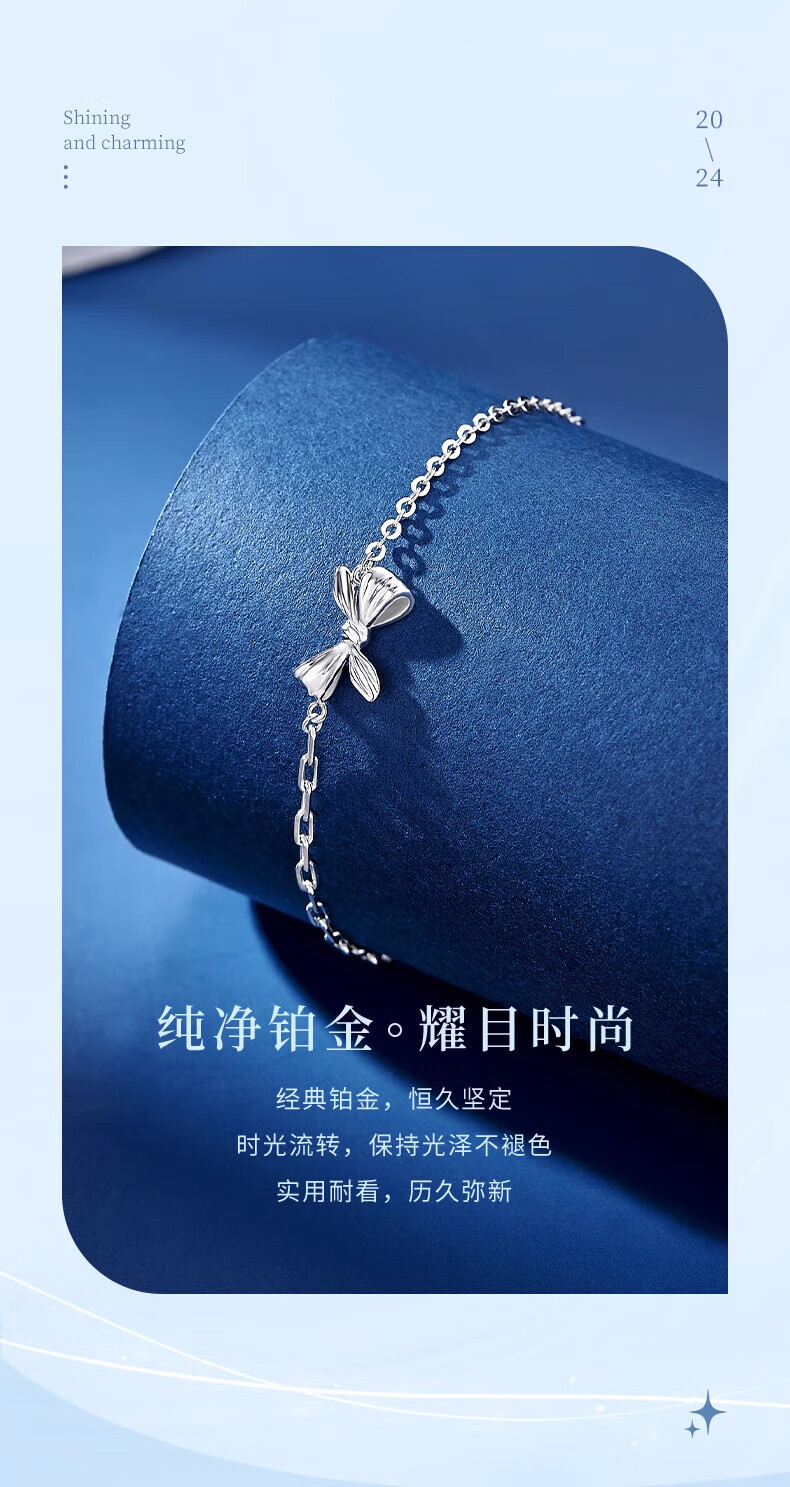 China Gold (CHINA GOLD) Bow platinum bracelet for women pt950 platinum chain bracelet, practical wedding and birthday gift for girls to send to their girlfriends. Bow platinum bracelet about 3.7g