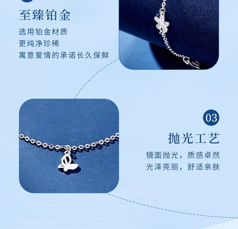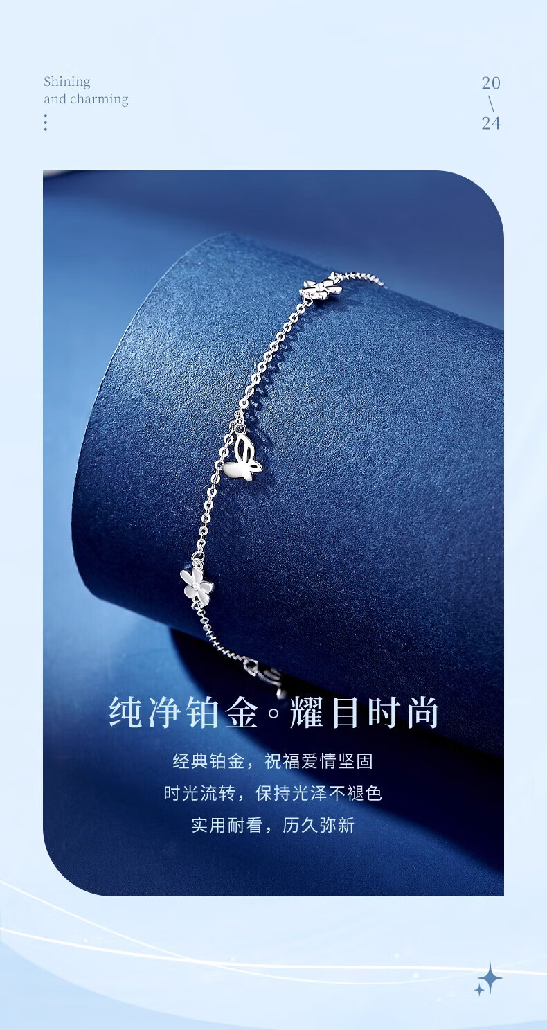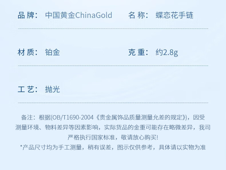 China Gold (CHINA GOLD) Dielianhua Platinum Bracelet for Women pt950 Platinum Bracelet Fashionable Plain Chain Wedding and Birthday Gift for Girlfriend Dielianhua Platinum Bracelet About 2.9g