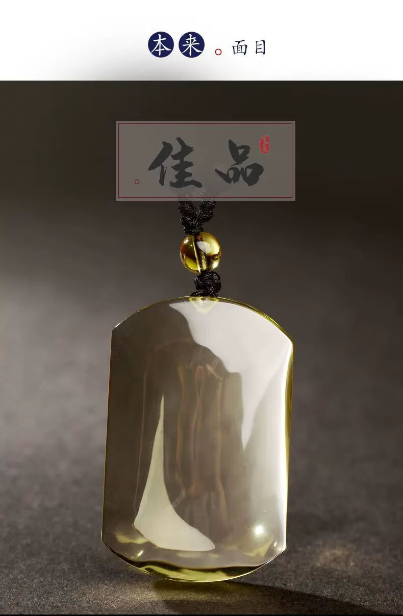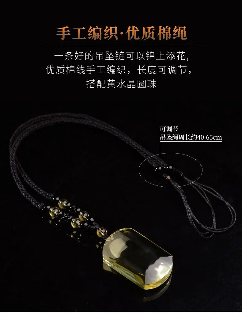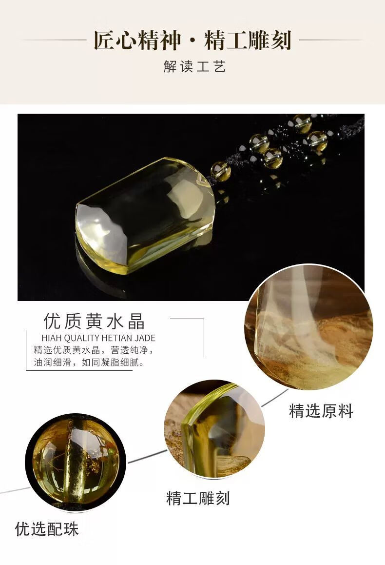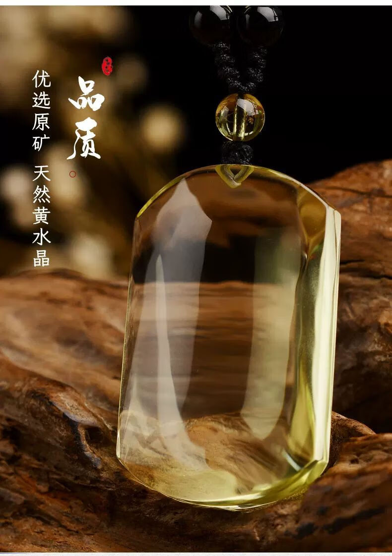 Yingtang natural citrine wordless Ping An Wu Shi brand pendant men's necklace women's Fang brand raw stone pure body about 50x31x15mm