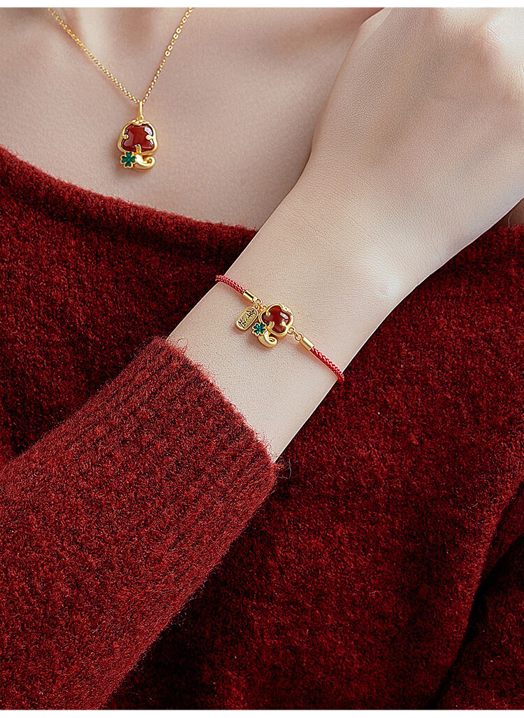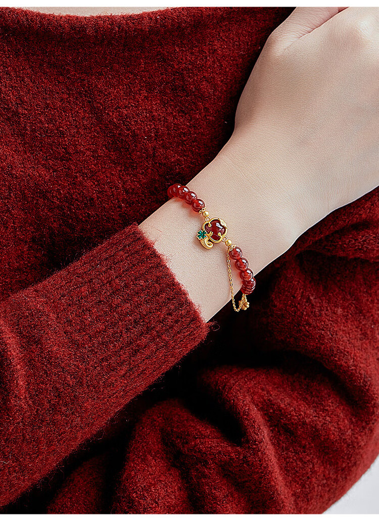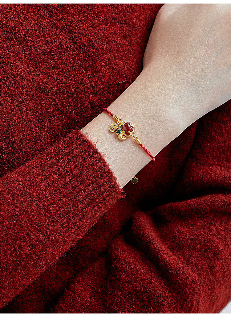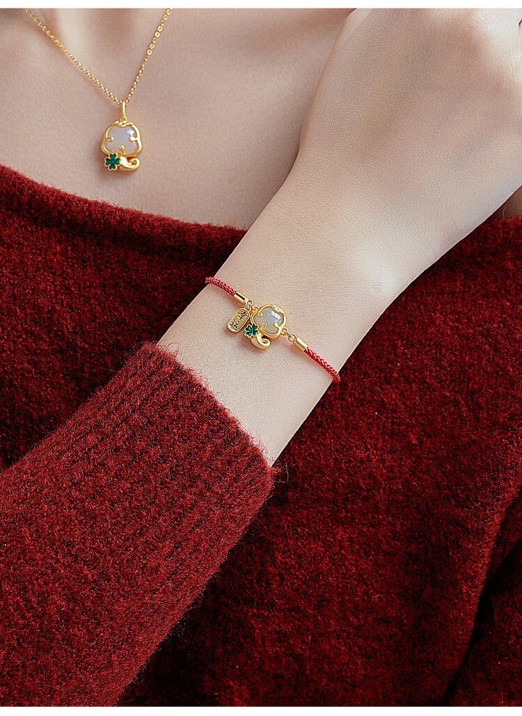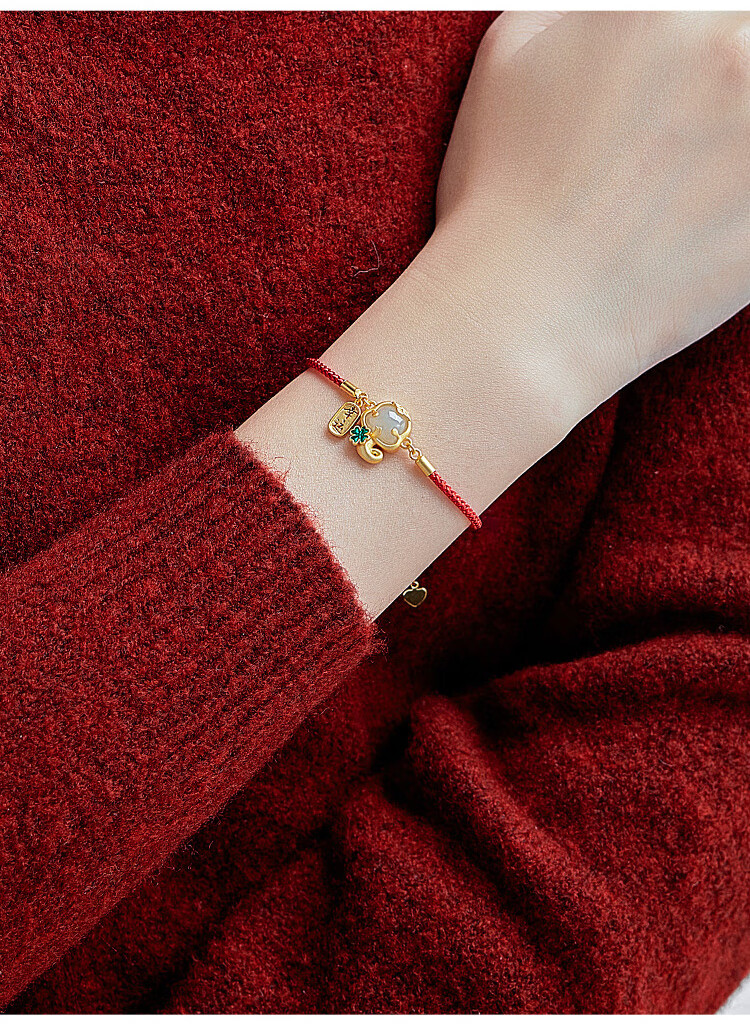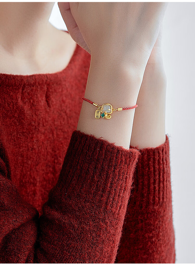IL&CO Youke Good Luck Cute Snake Zodiac Year of the Snake Bracelet Women's Braided Red Rope Birthday New Year Gift for Girlfriend Four-Leaf Clover Snake Year Stacked Hetian Jade Bracelet