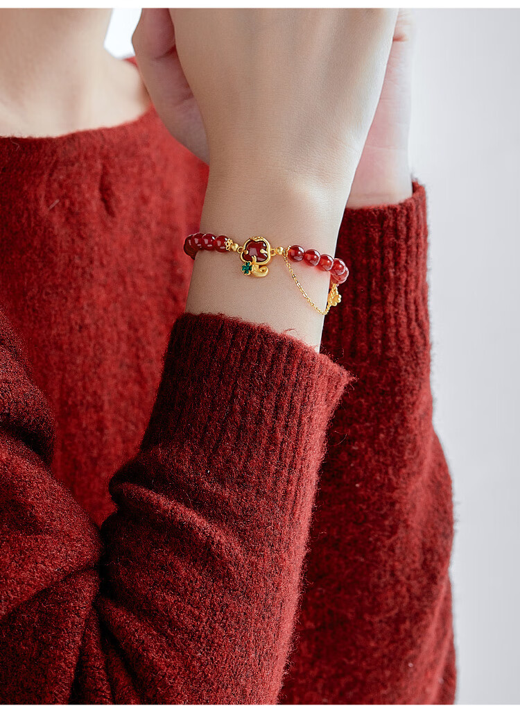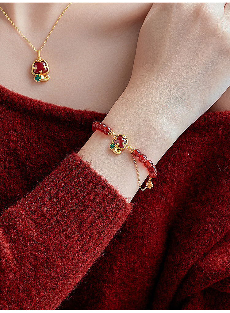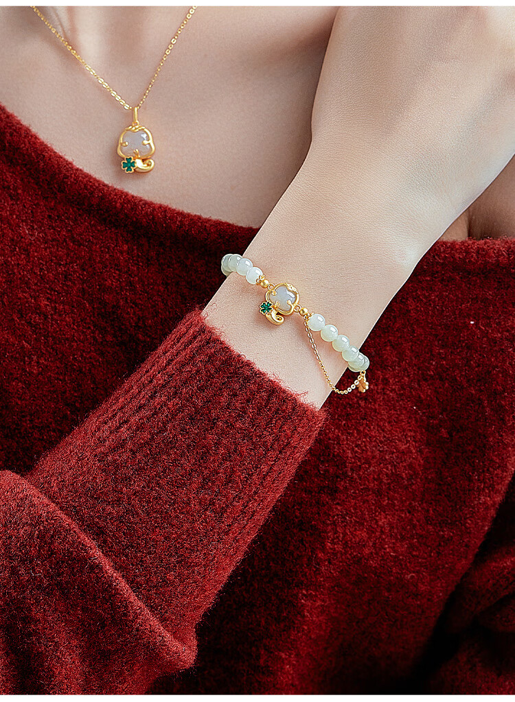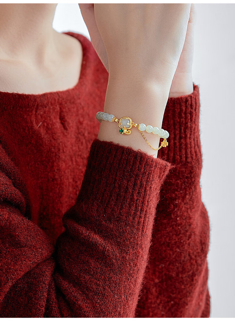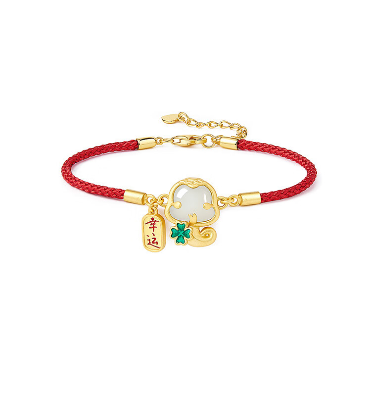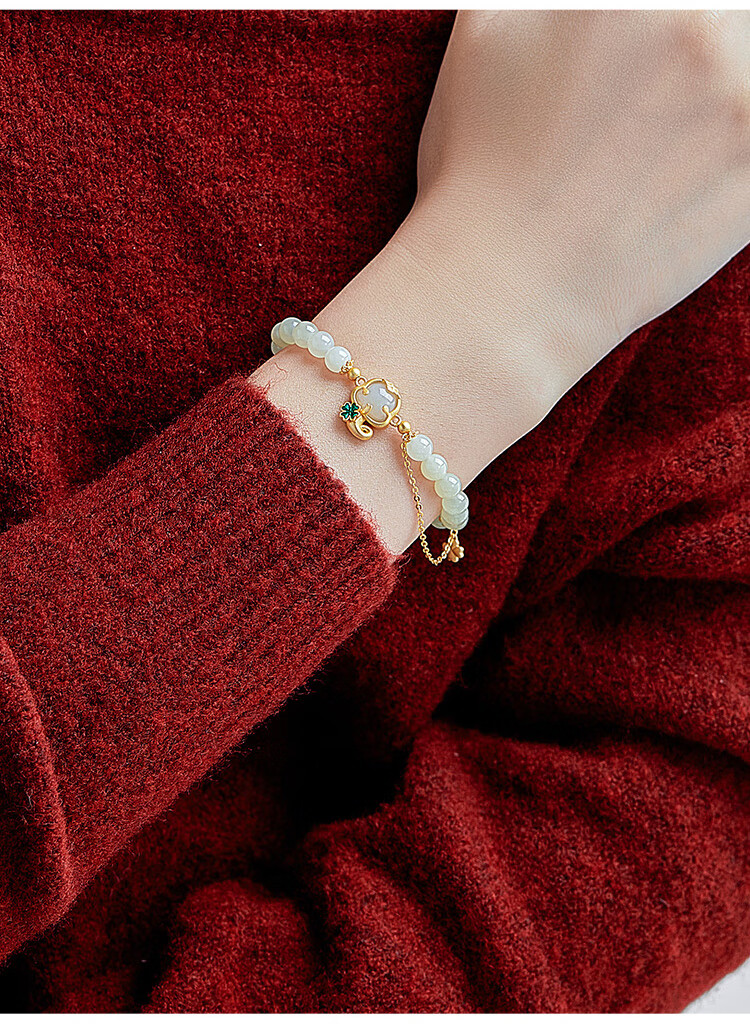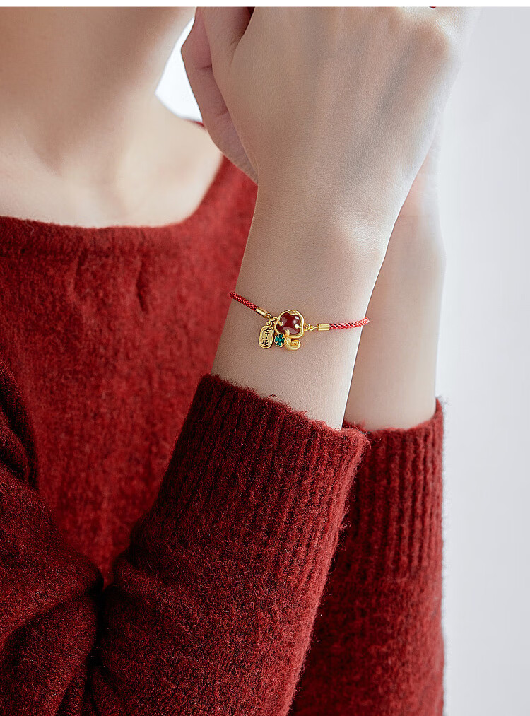 IL&CO Youke Good Luck Cute Snake Zodiac Year of the Snake Bracelet Women's Braided Red Rope Birthday New Year Gift for Girlfriend Four-Leaf Clover Snake Year Stacked Hetian Jade Bracelet