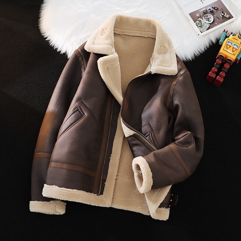 JEEP SPIRIT fur one-piece lambswool jacket men's autumn and winter new velvet thickened leather jacket autumn and winter men's lambswool jacket dark brown M