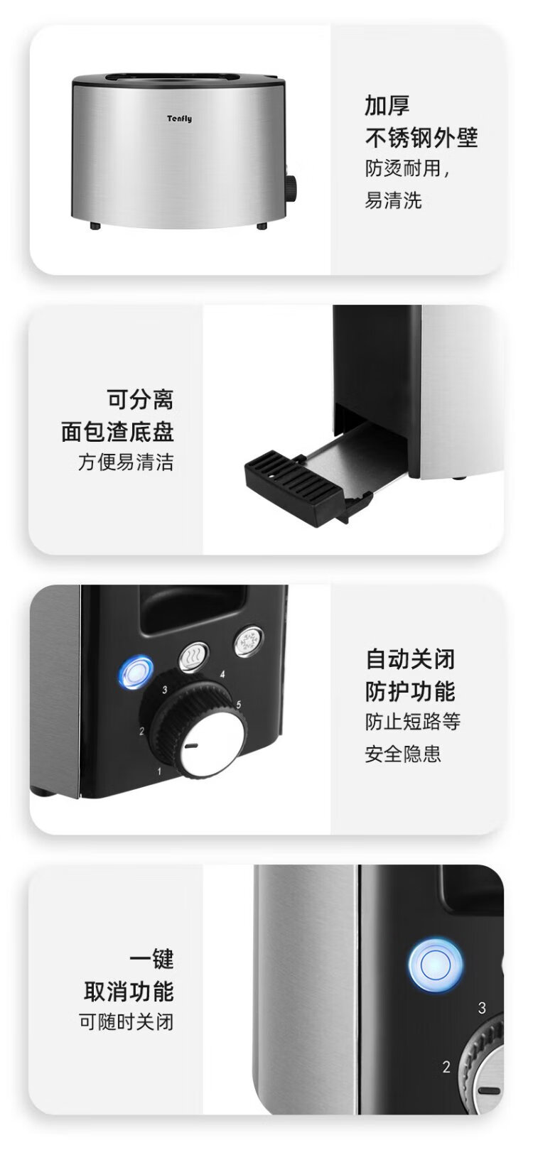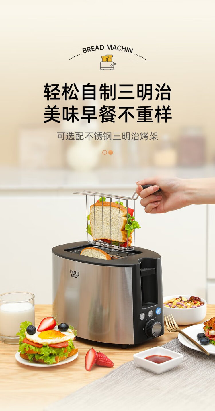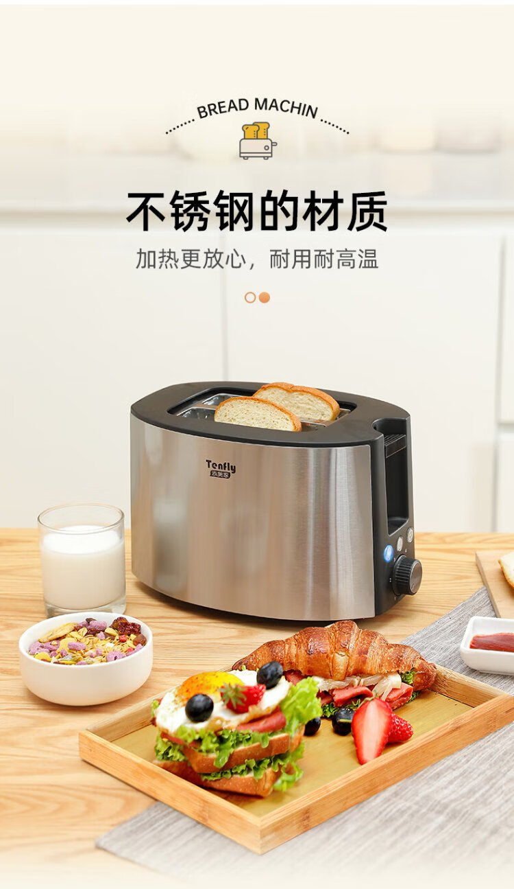 Tenfly Toaster Toaster Stainless Steel Double-Slice Toaster Home Desktop Toaster Commercial Double-Slice Toaster Touch Control Model for Home and Commercial Use Widened 4-Slice Bread Slot Contains Practical 4-piece Set