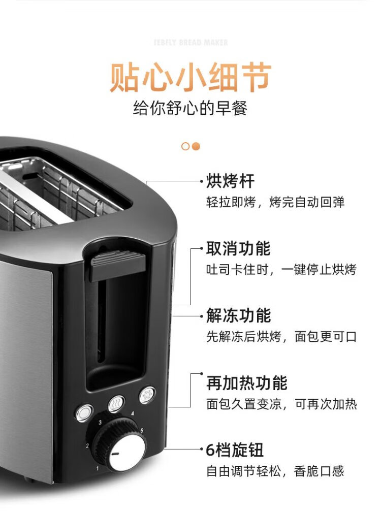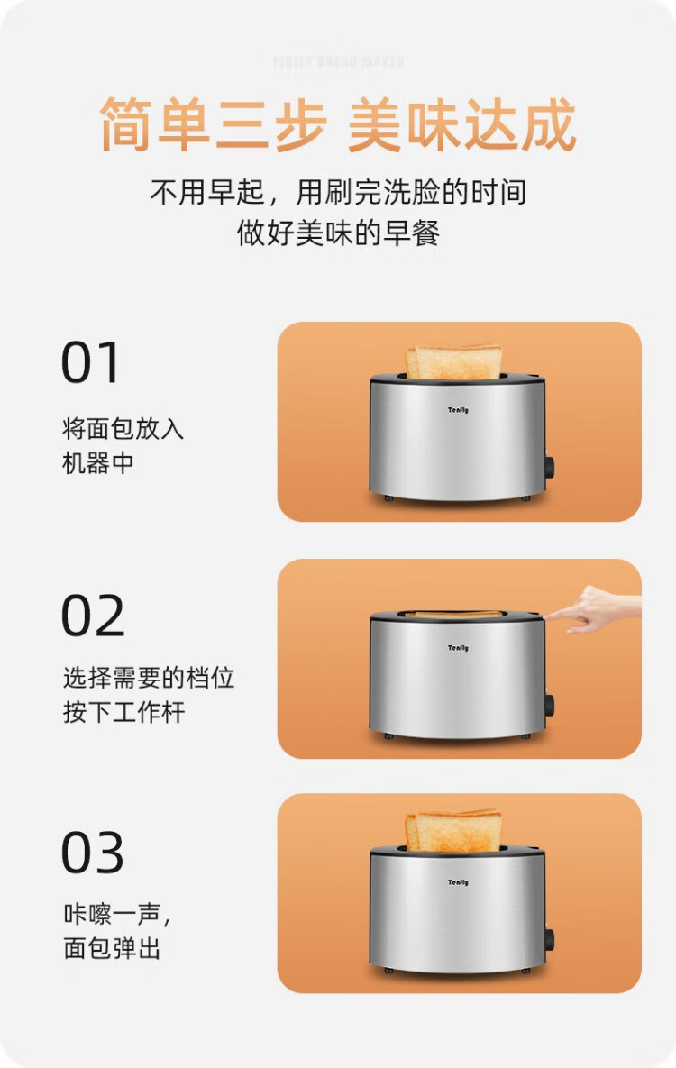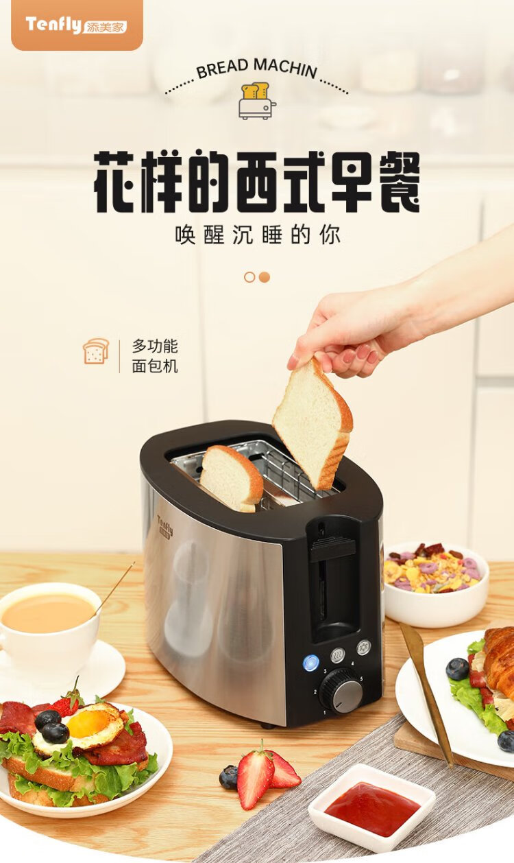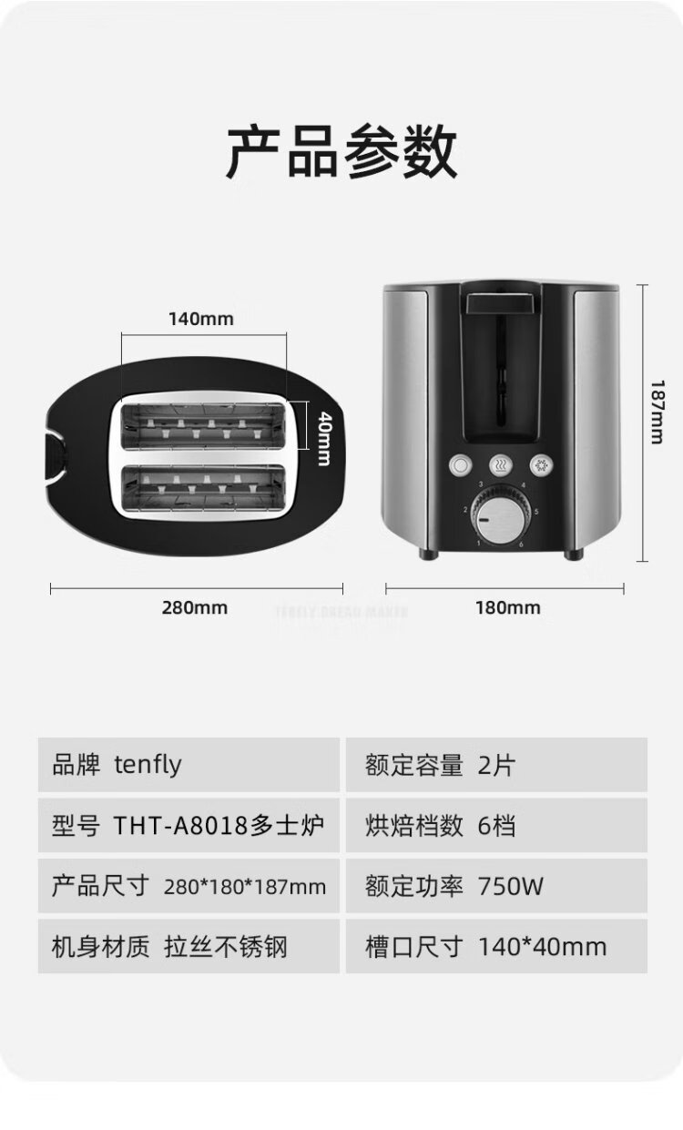 Tenfly Toaster Toaster Stainless Steel Double-Slice Toaster Home Desktop Toaster Commercial Double-Slice Toaster Touch Control Model for Home and Commercial Use Widened 4-Slice Bread Slot Contains Practical 4-piece Set