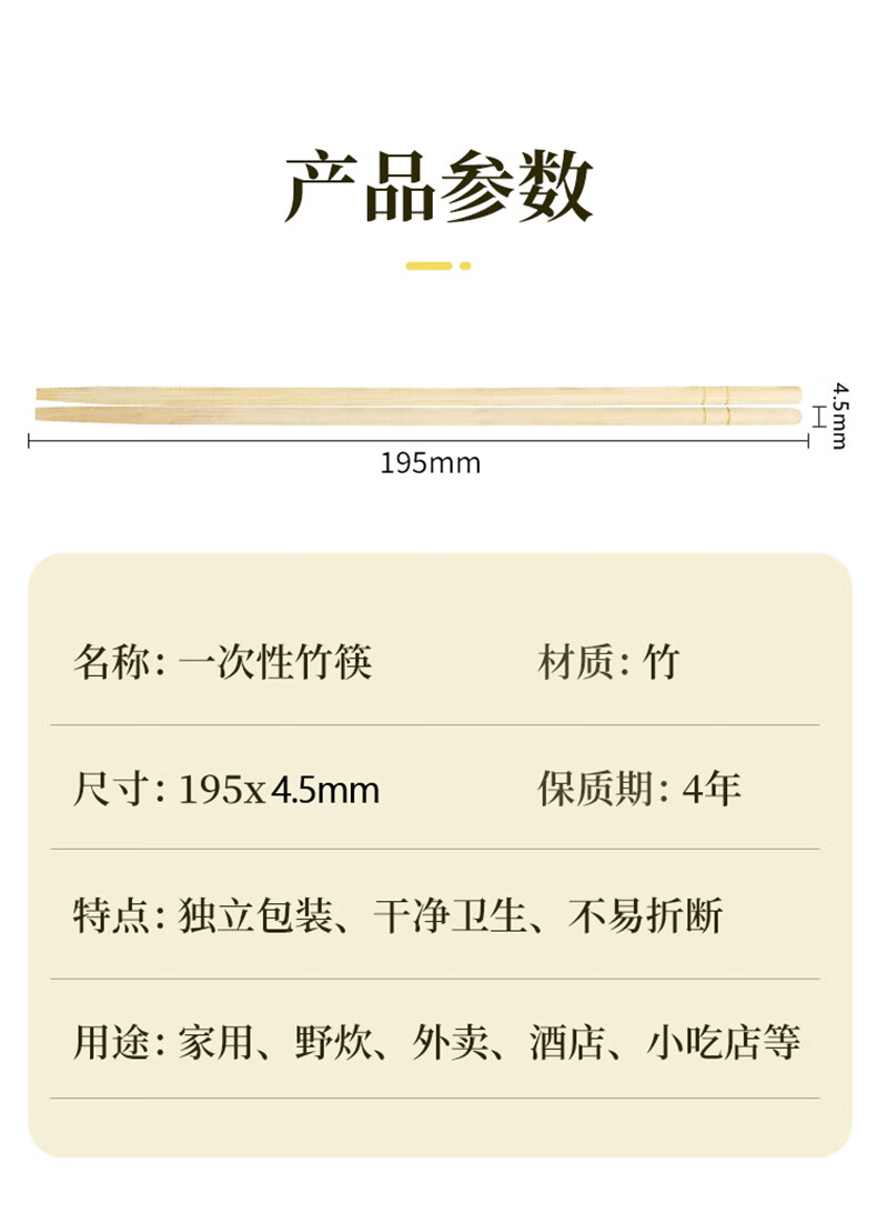 Disposable chopsticks for restaurants, cheap fast food, household and commercial take-out, individually packed, ten pairs, disposable chopsticks