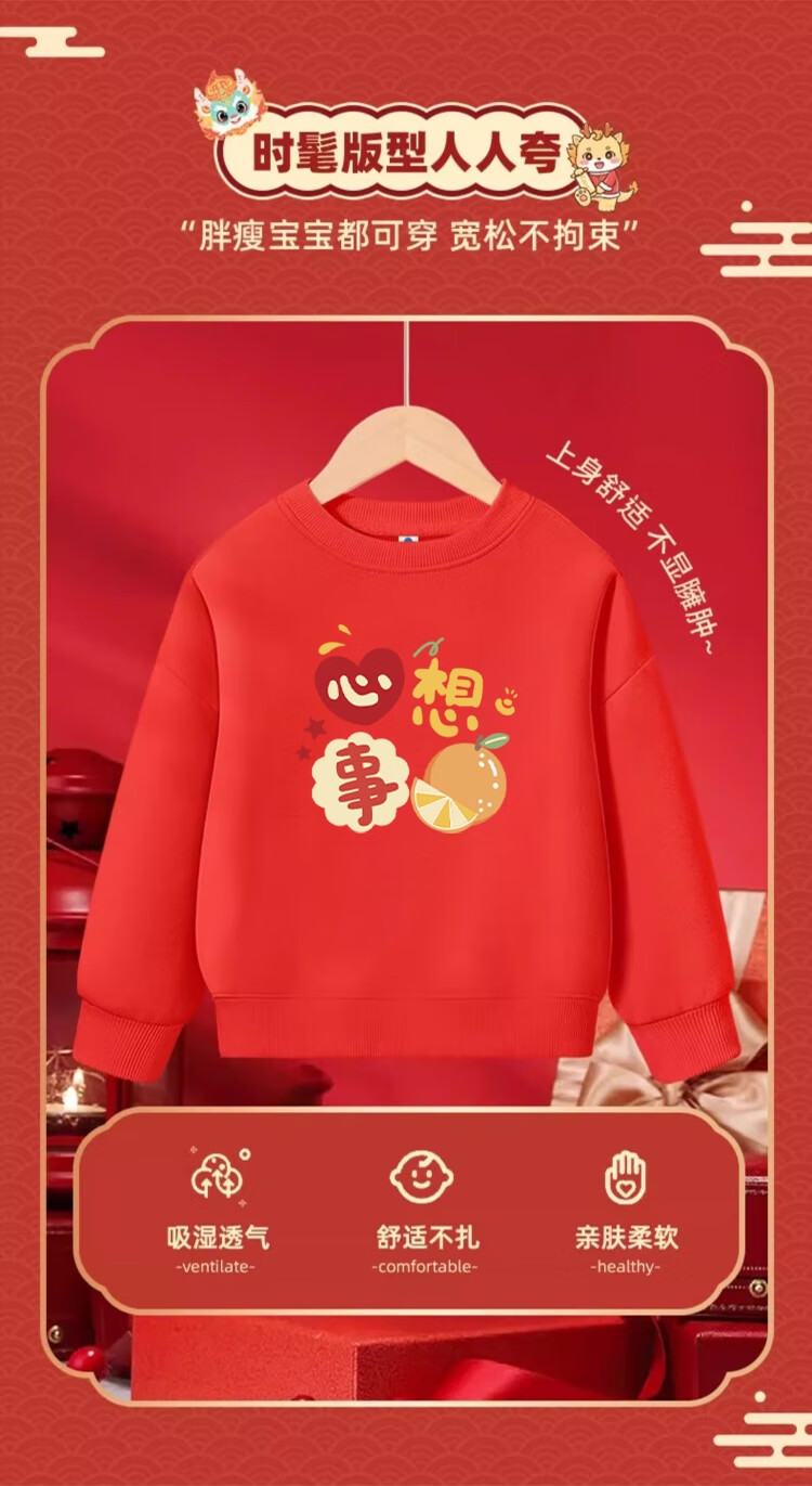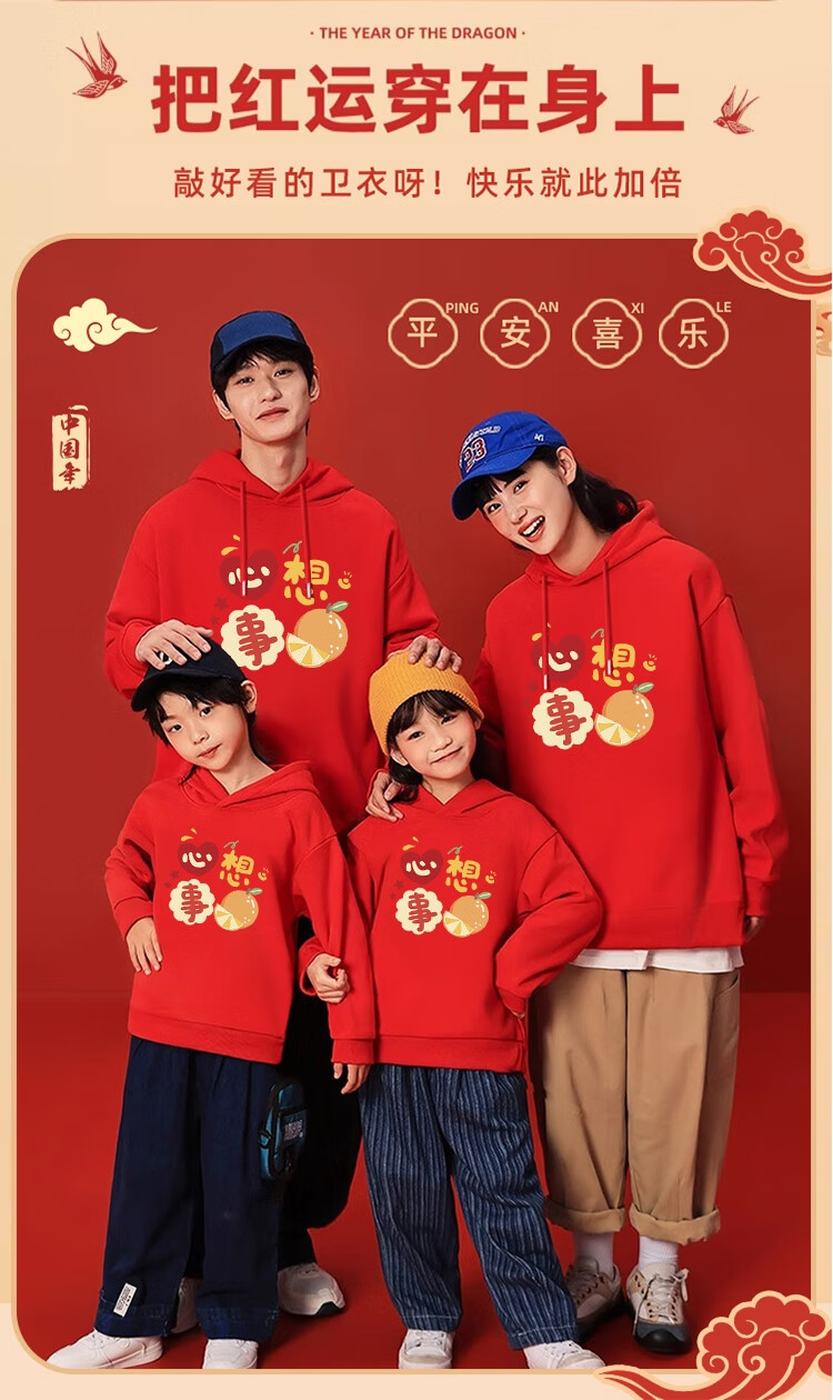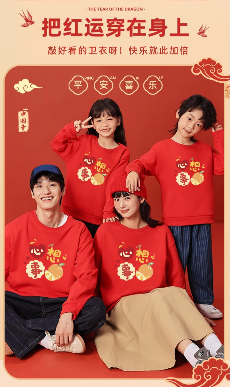 Mingdi clan’s wishes come true 2026 New Year red festive parent-child sweatshirts for a family of three or four, New Year’s greetings clothes for the whole family, red round neck, plus velvet 170 Dad/Mom L