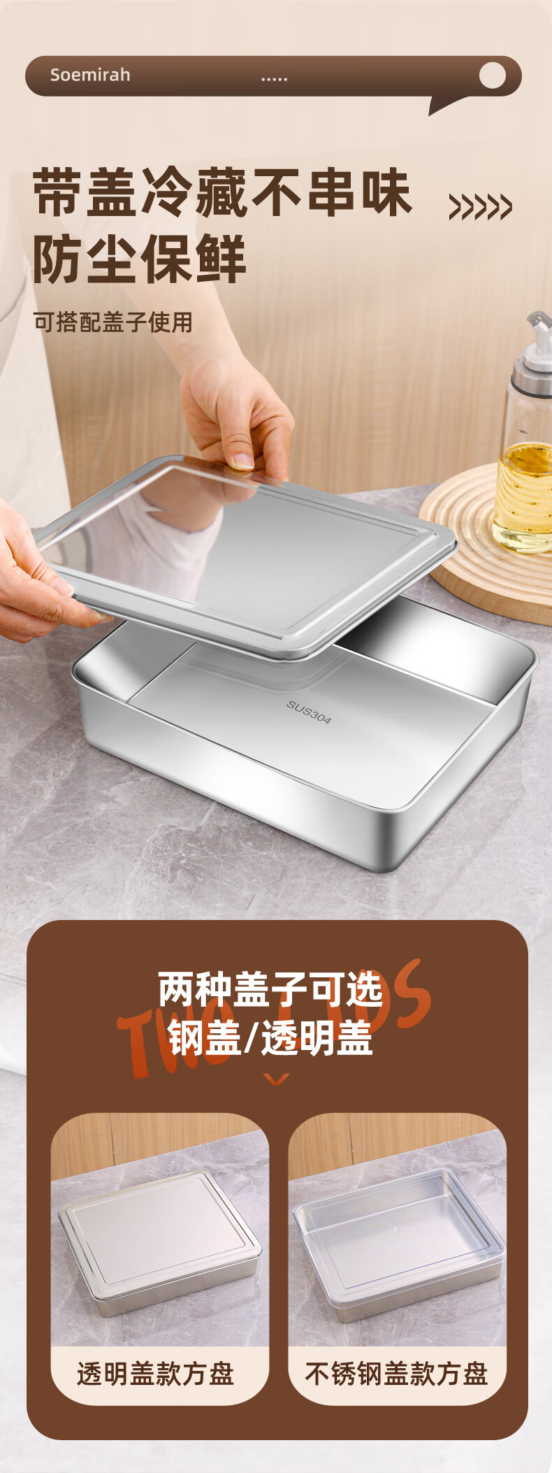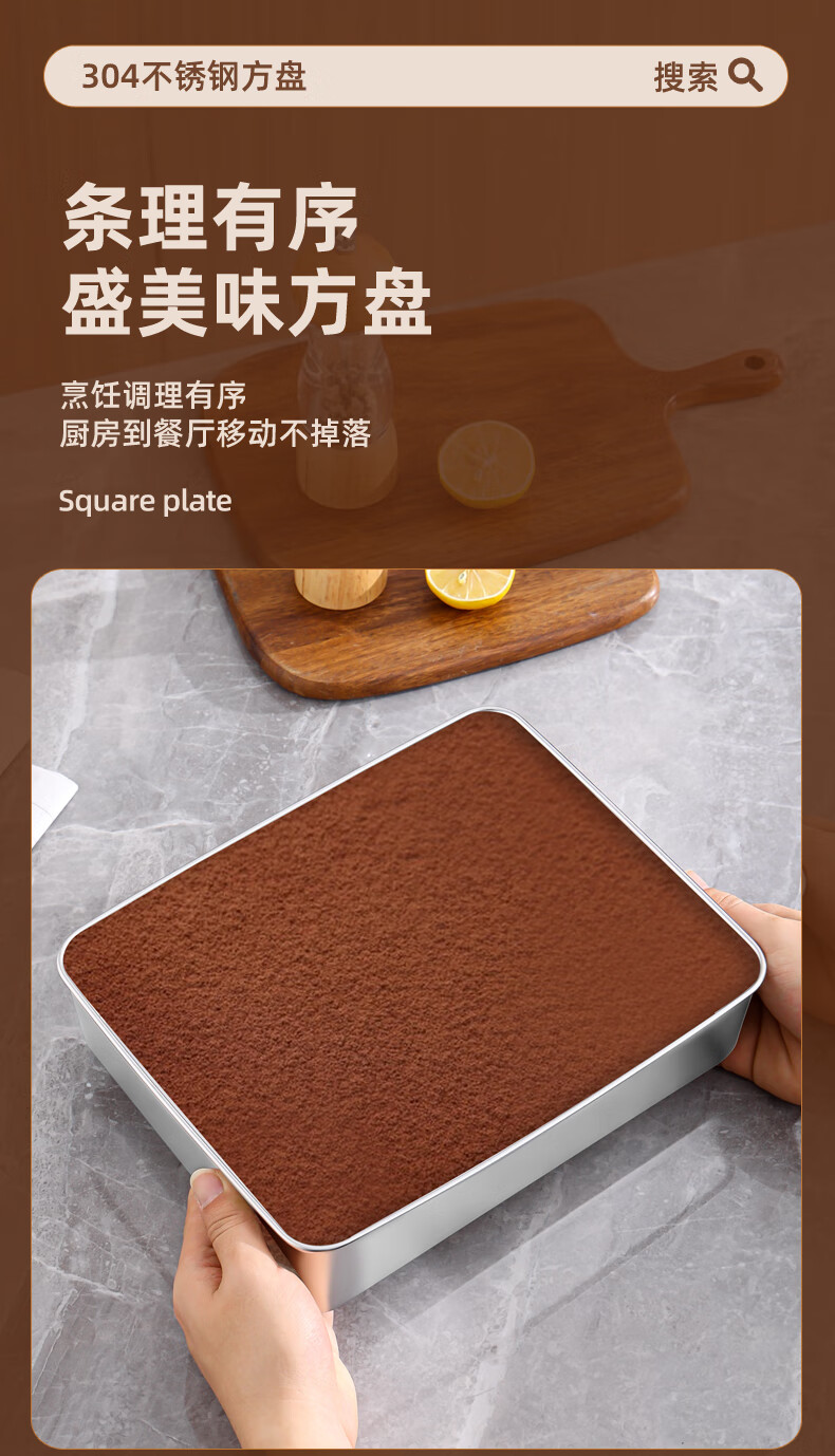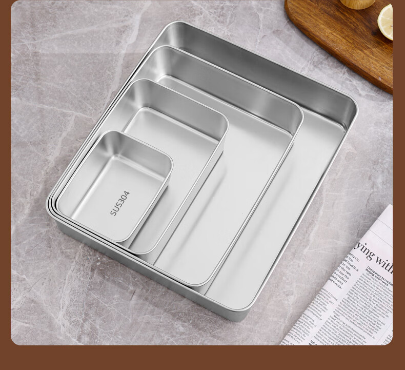 304 stainless steel square plate flat plate rectangular box with lid deep plate tiramisu utensils thickened tray 304 narrow edge sanded 33*15*6cm