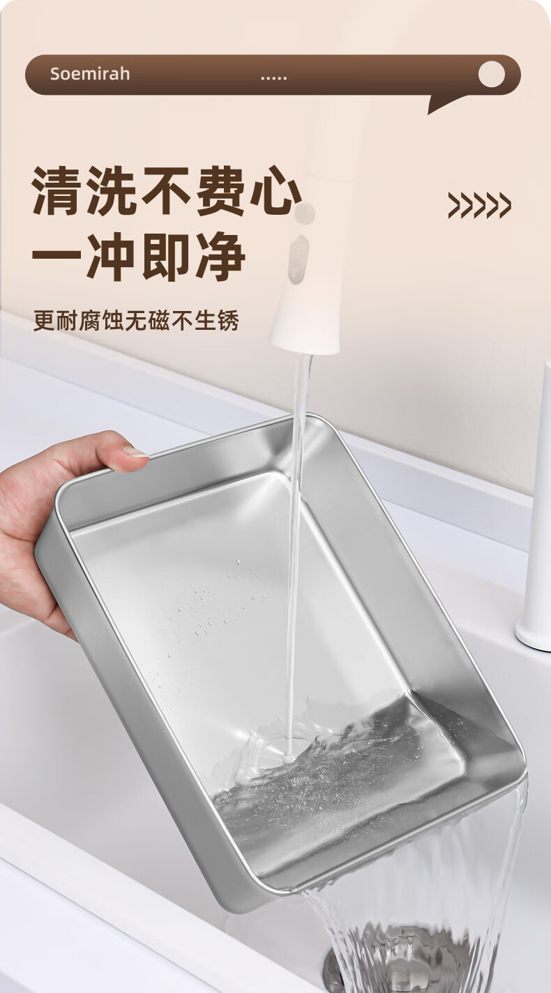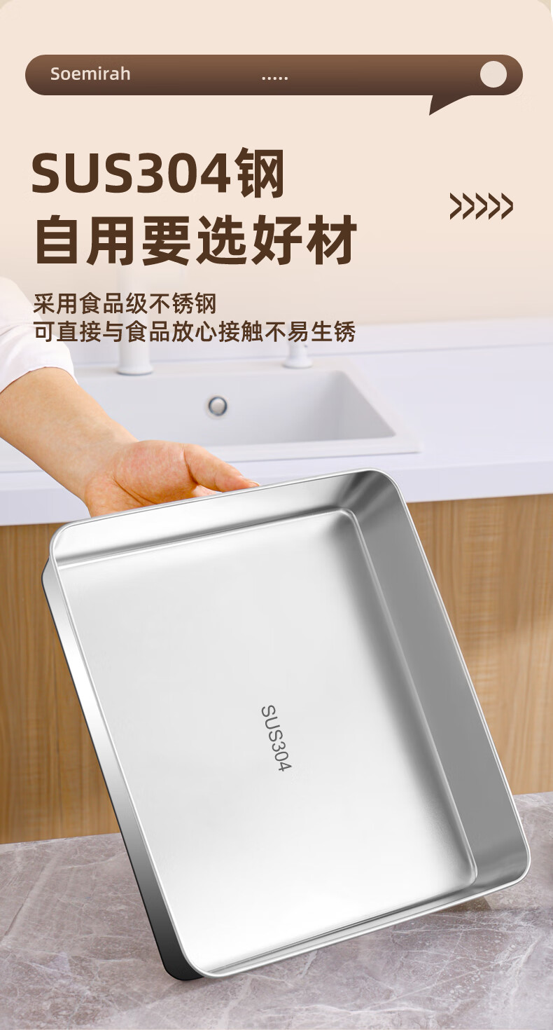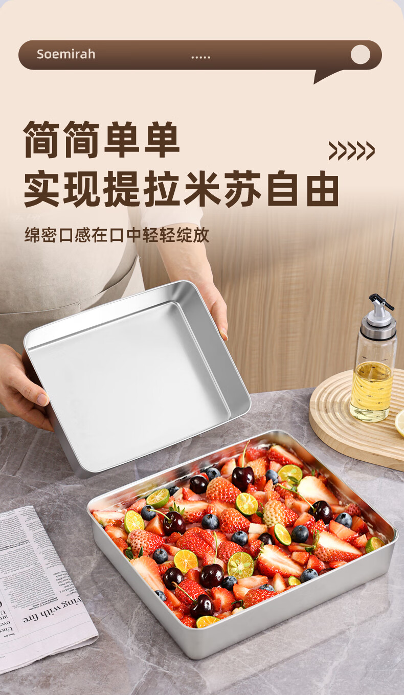 304 stainless steel square plate flat plate rectangular box with lid deep plate tiramisu utensils thickened tray 304 narrow edge sanded 33*15*6cm