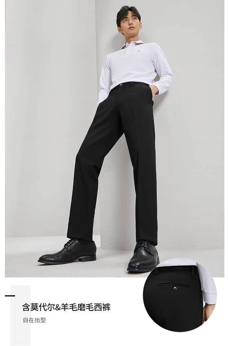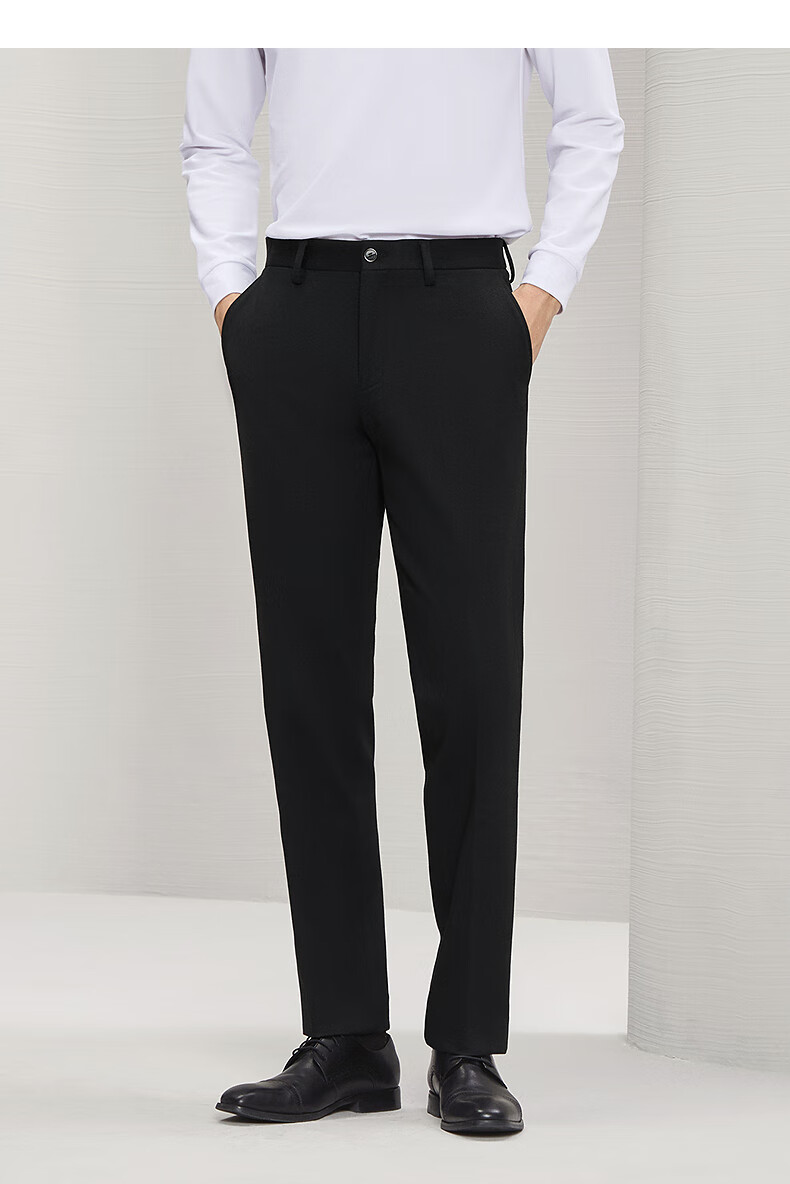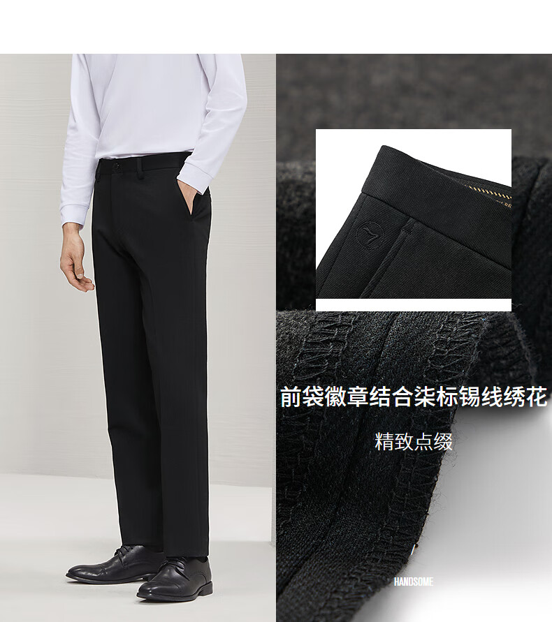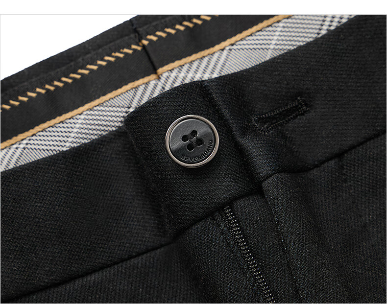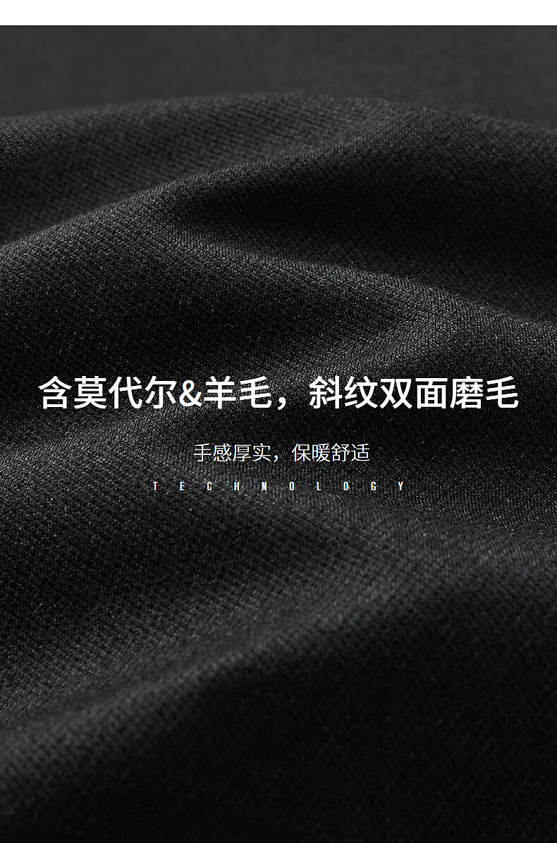 Qipai wool-containing men's casual trousers for men spring and summer thick double-sided brushed comfortable warm trousers black 35