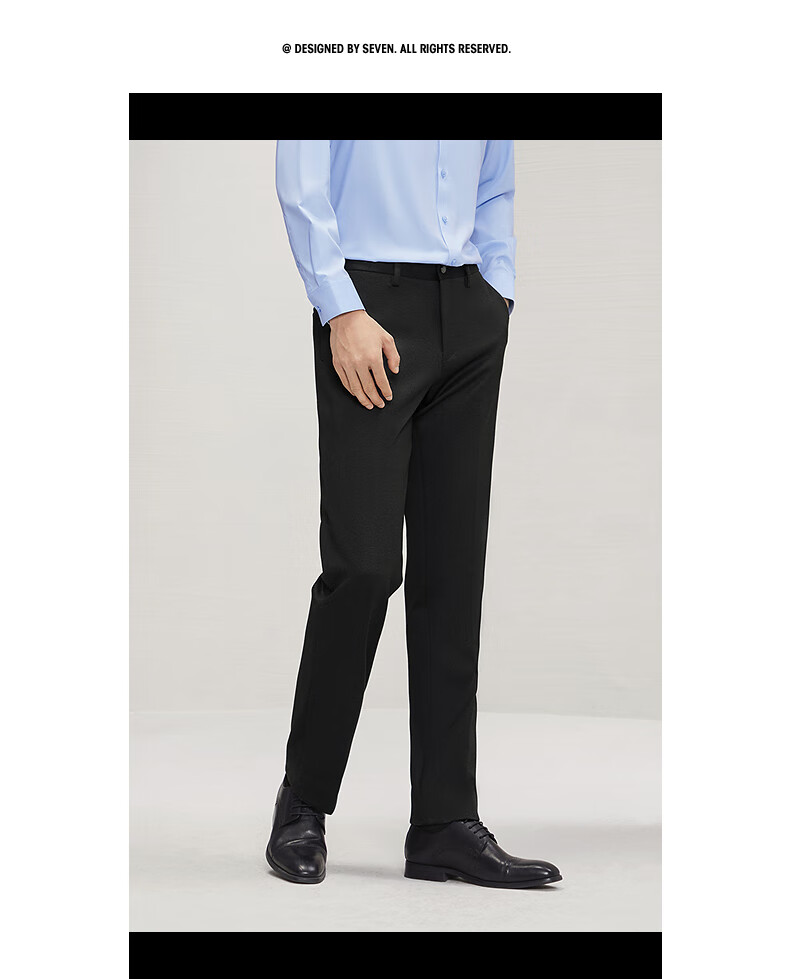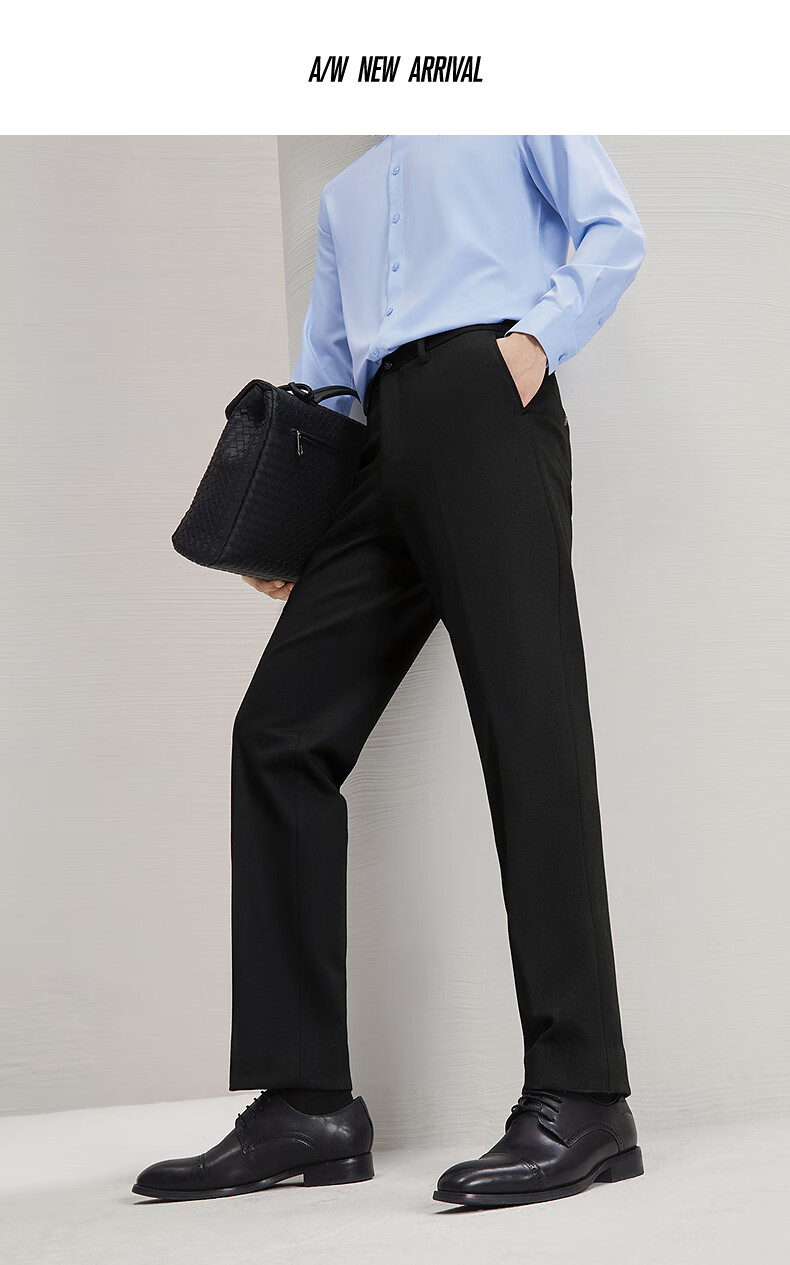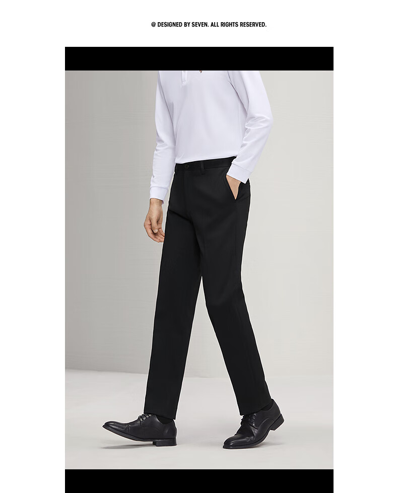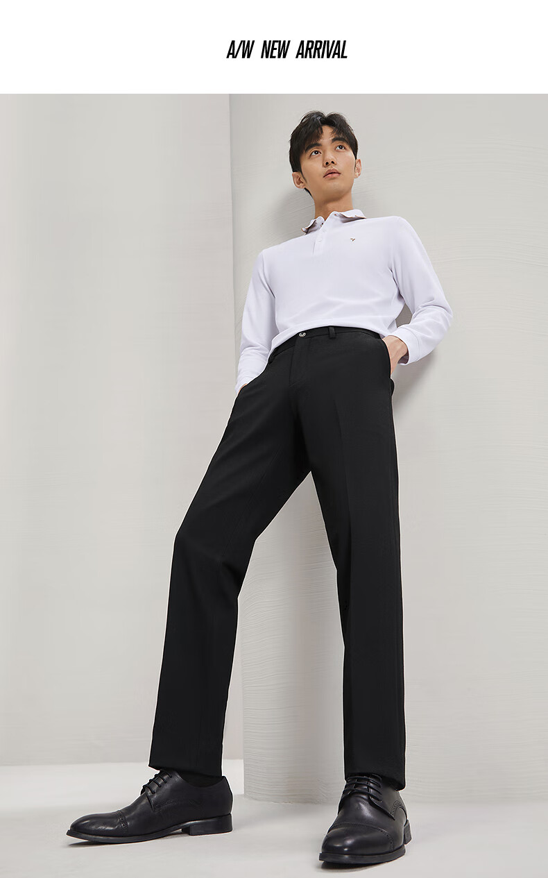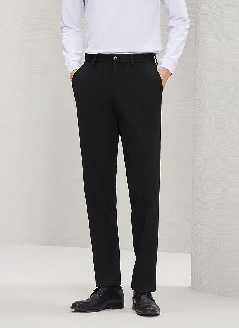 Qipai wool-containing men's casual trousers for men spring and summer thick double-sided brushed comfortable warm trousers black 35