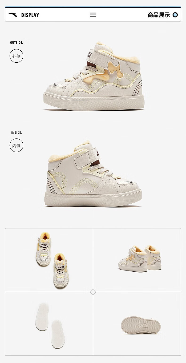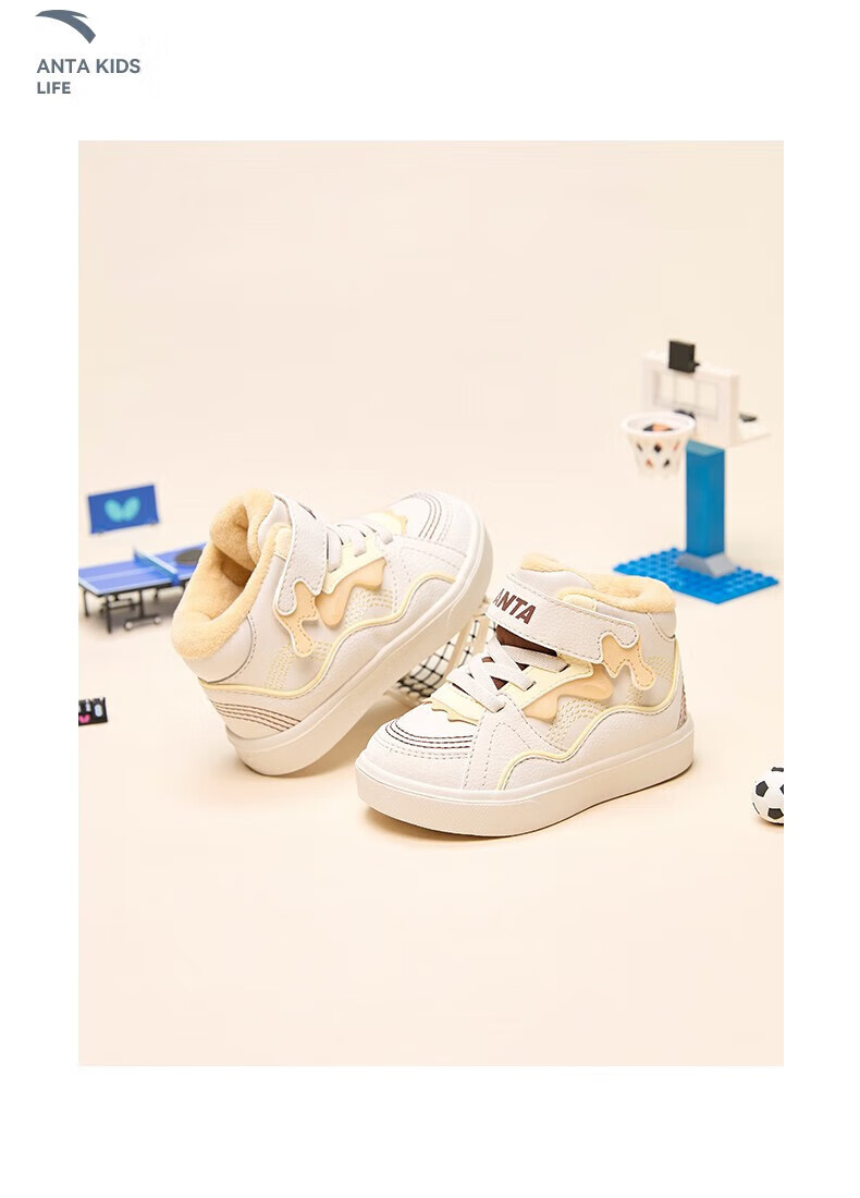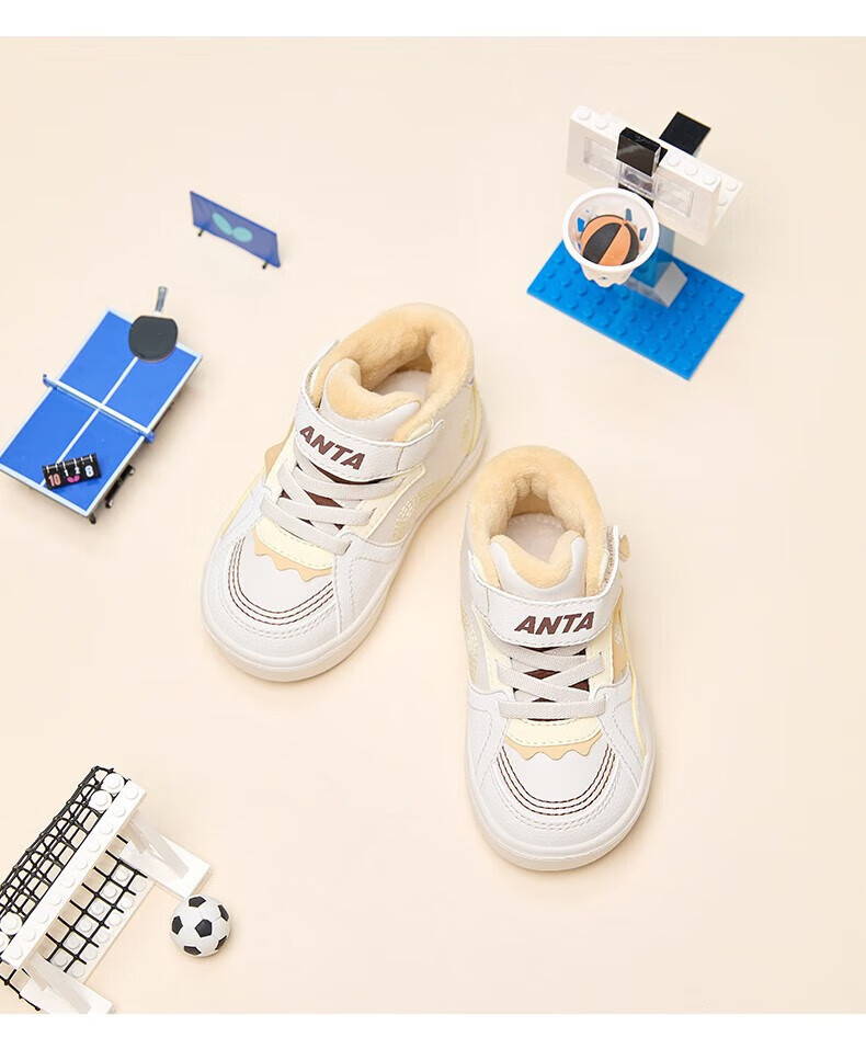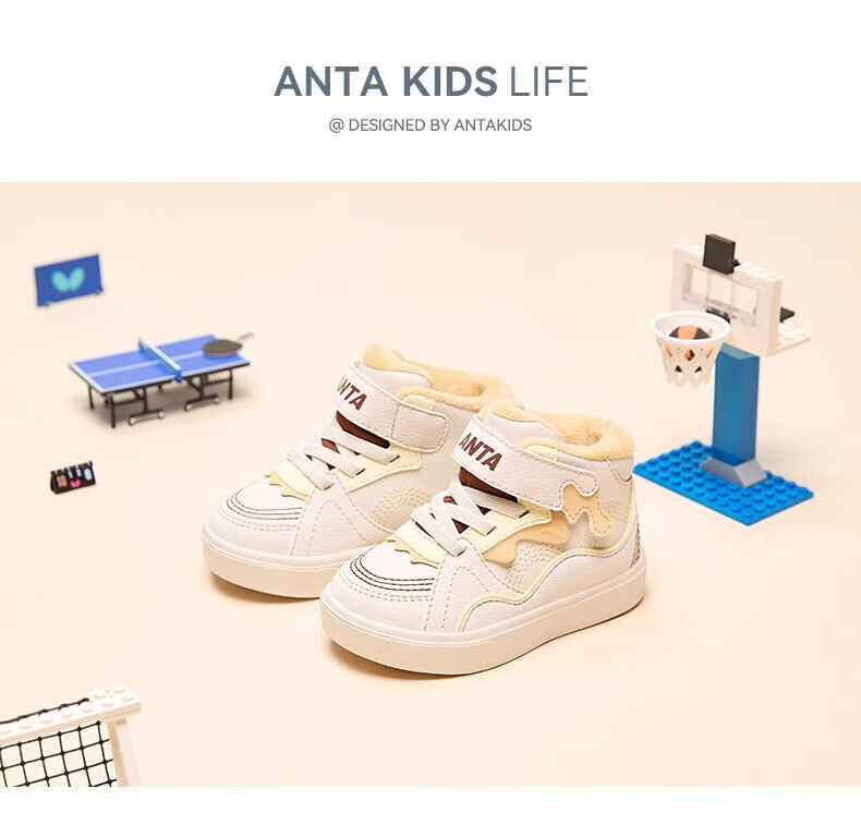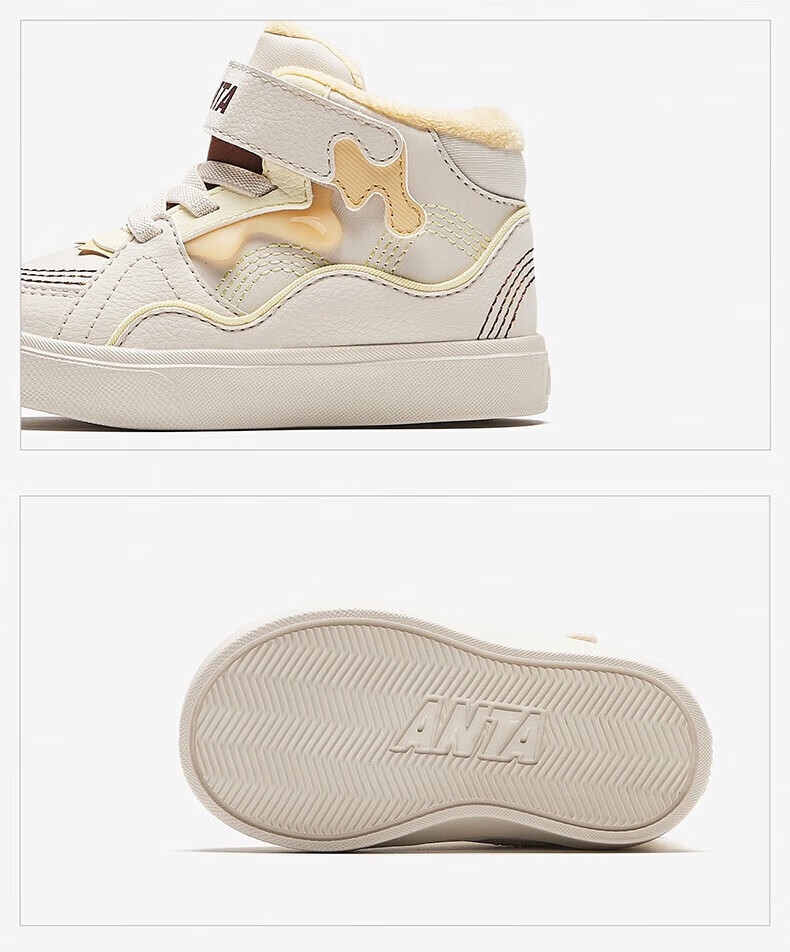 ANTA Children's Cotton Shoes Baby Shoes 2024 Winter Velvet Warm Velcro High Top Baby Cotton Boots White Shoes Silt Gray/Warm Sand Color/Haute Brown-1 22 Sizes