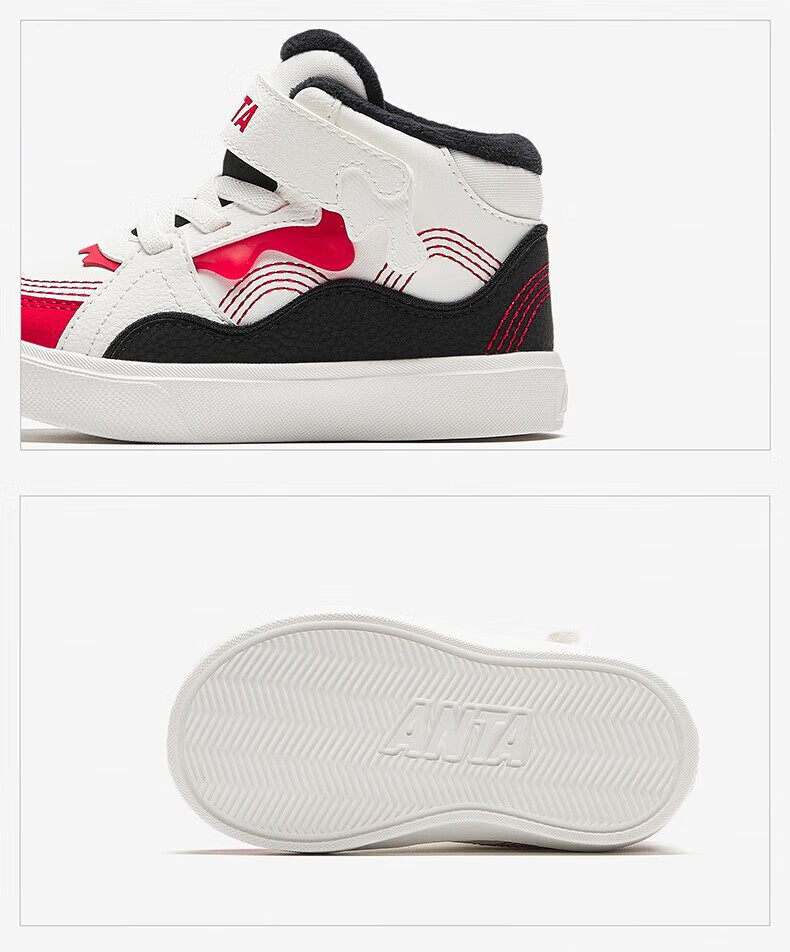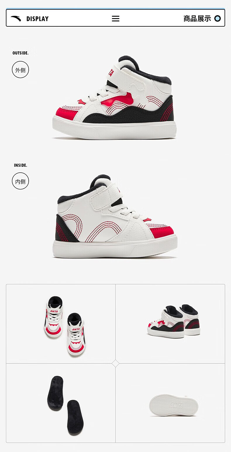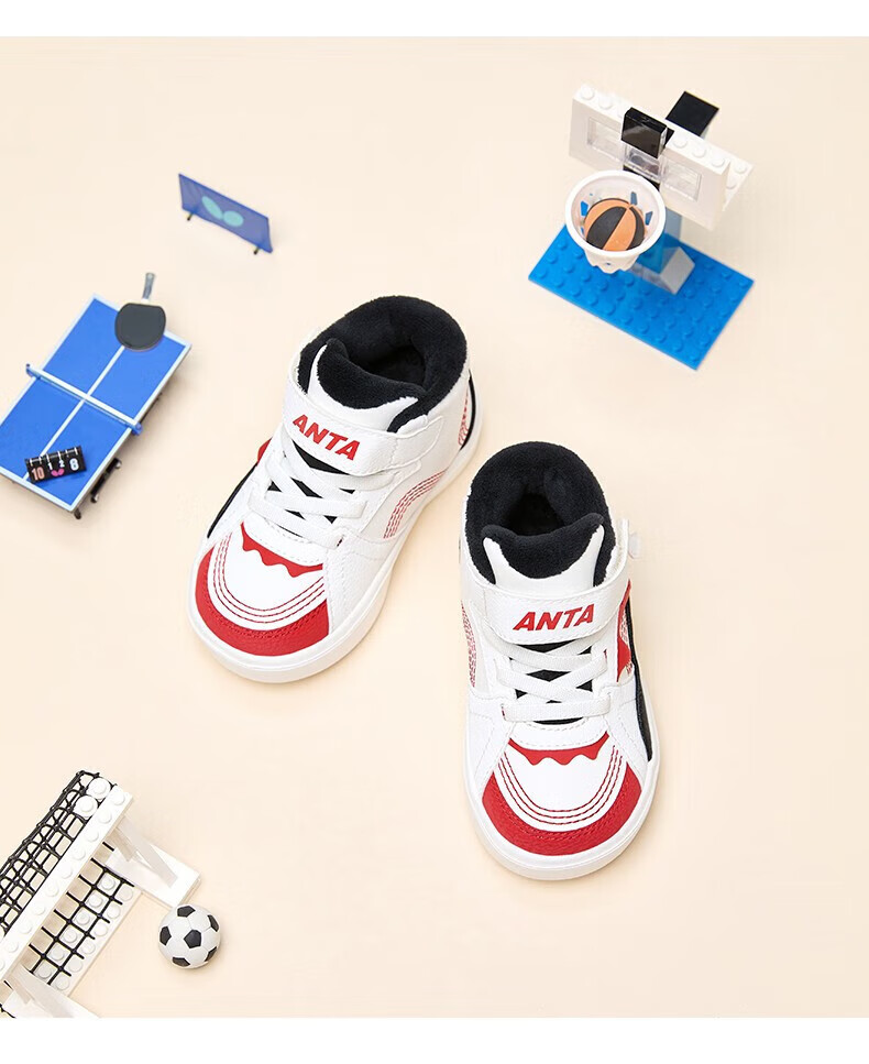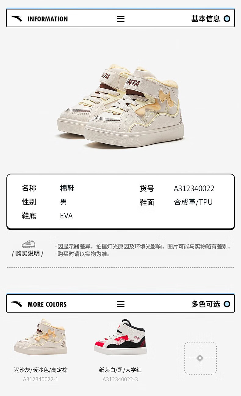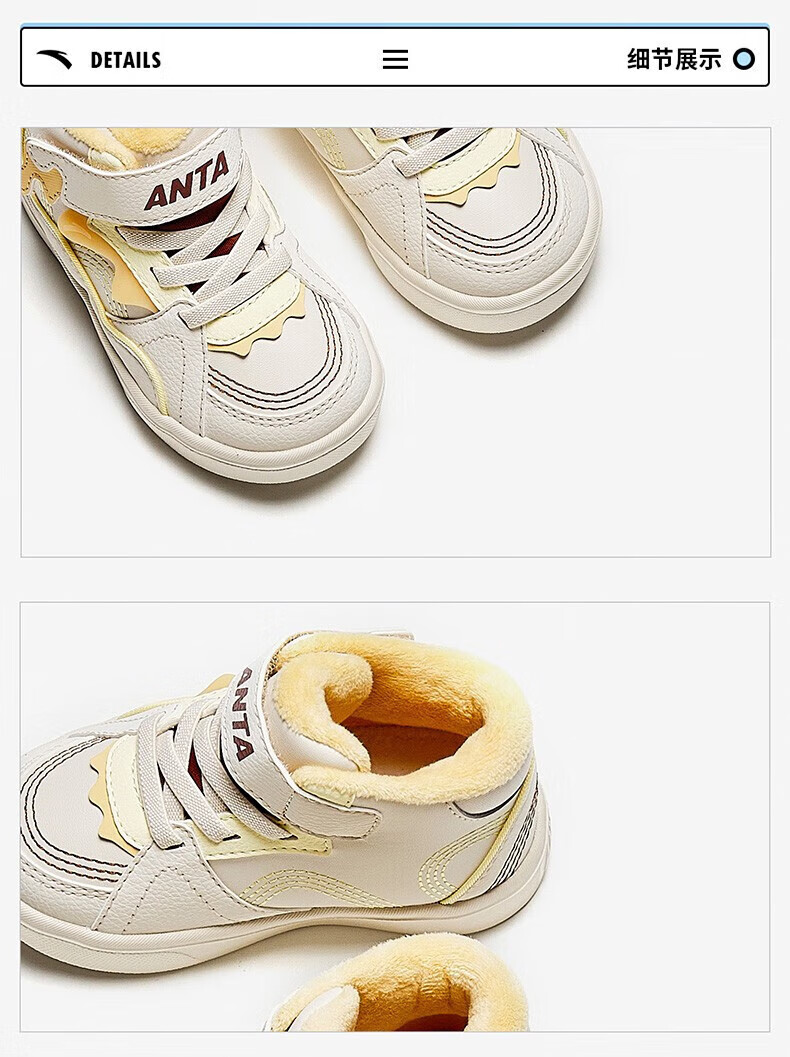 ANTA Children's Cotton Shoes Baby Shoes 2024 Winter Velvet Warm Velcro High Top Baby Cotton Boots White Shoes Silt Gray/Warm Sand Color/Haute Brown-1 22 Sizes
