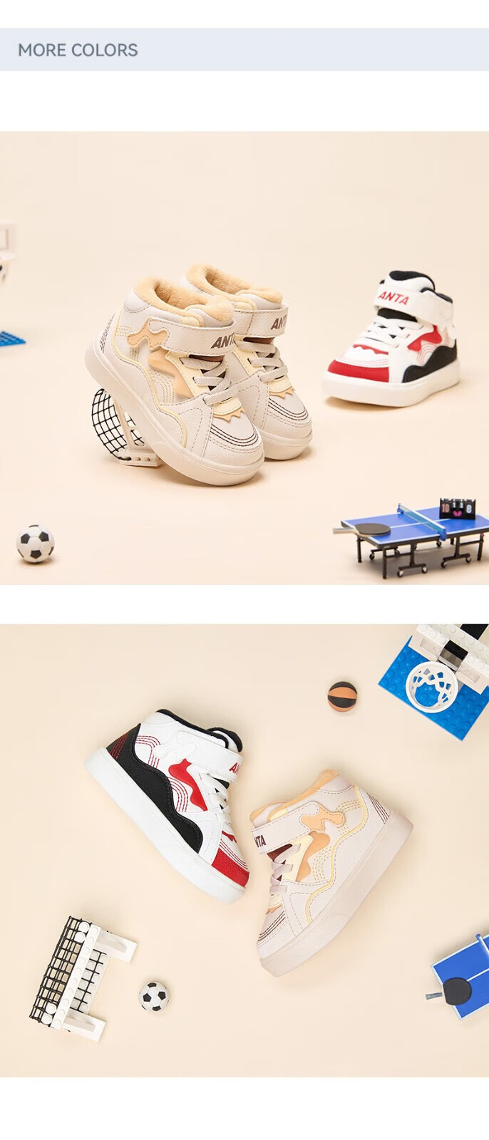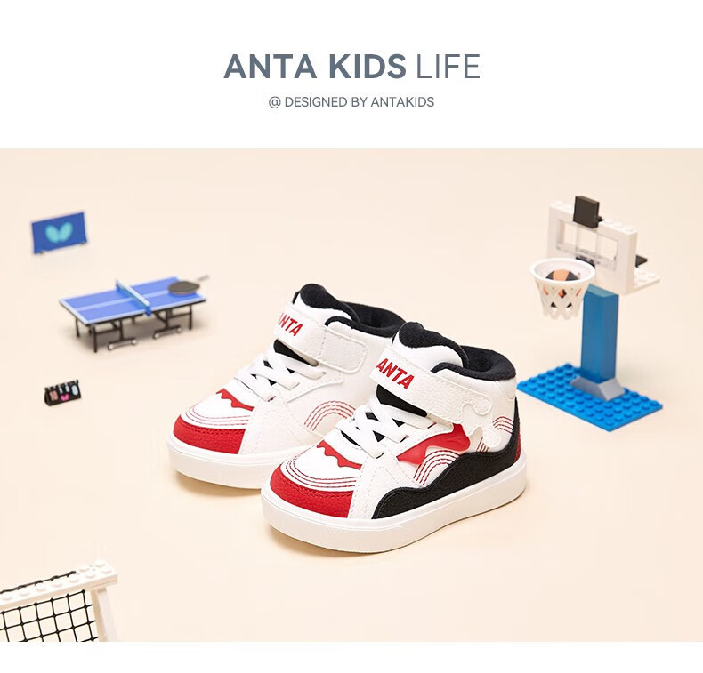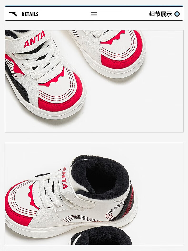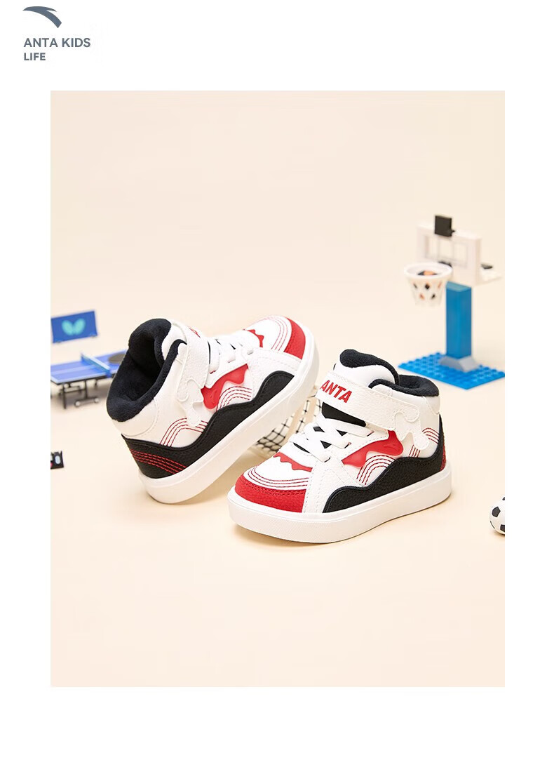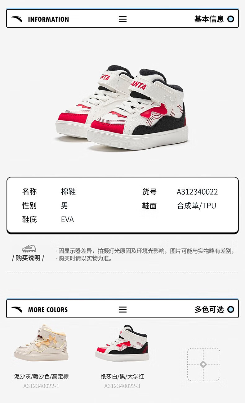 ANTA Children's Cotton Shoes Baby Shoes 2024 Winter Velvet Warm Velcro High Top Baby Cotton Boots White Shoes Silt Gray/Warm Sand Color/Haute Brown-1 22 Sizes