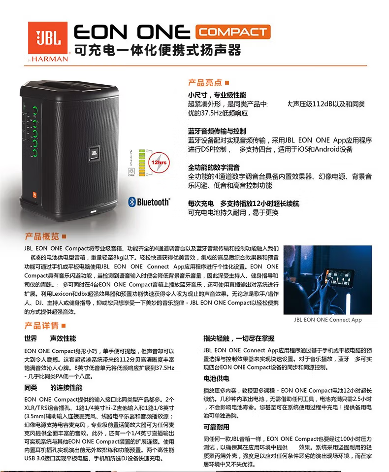 JBL Outdoor Bluetooth Speaker Karaoke Live Stage Performance Guitar Singing Music Square Dance Trolley Speaker No JBLEONONECOMPACT Bluetooth Speaker