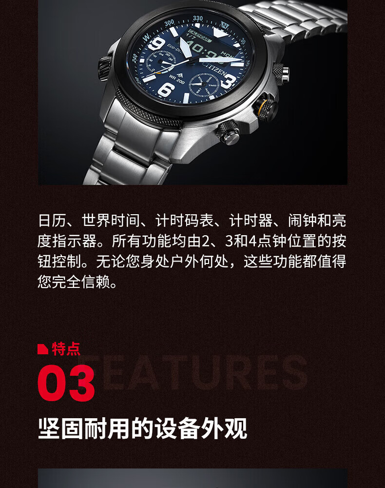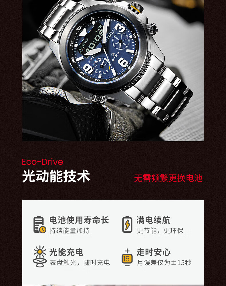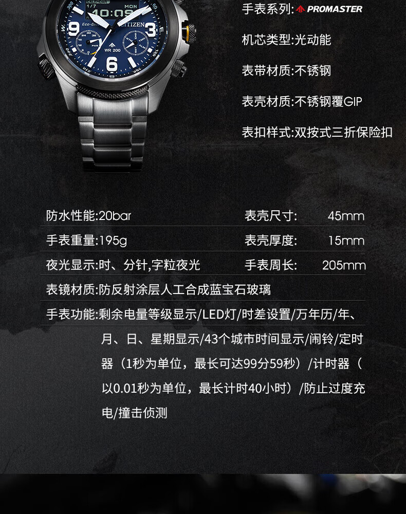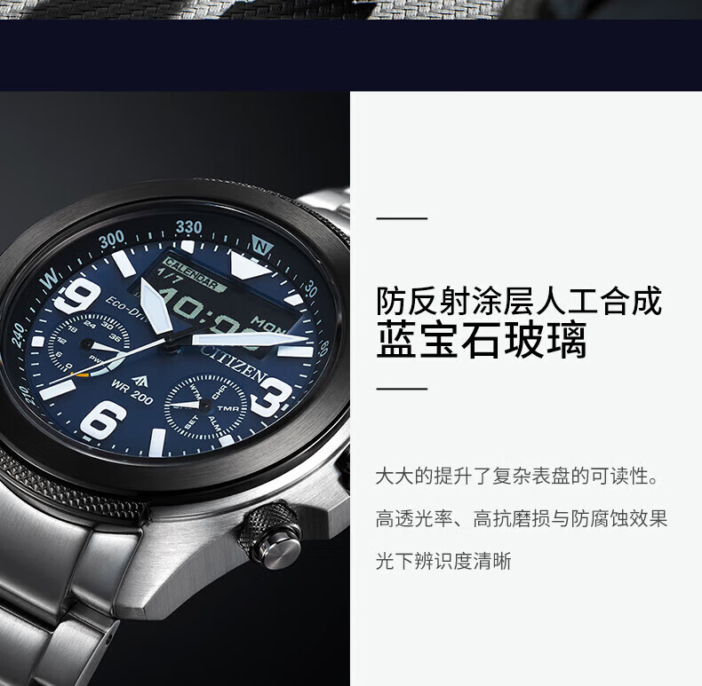 CITIZEN Promaster Series Eco-Drive Sapphire Mirror Luminous Pointers Business Men's Watch for Your Boyfriend Eco-Drive + Sapphire Mirror JV1005-02W