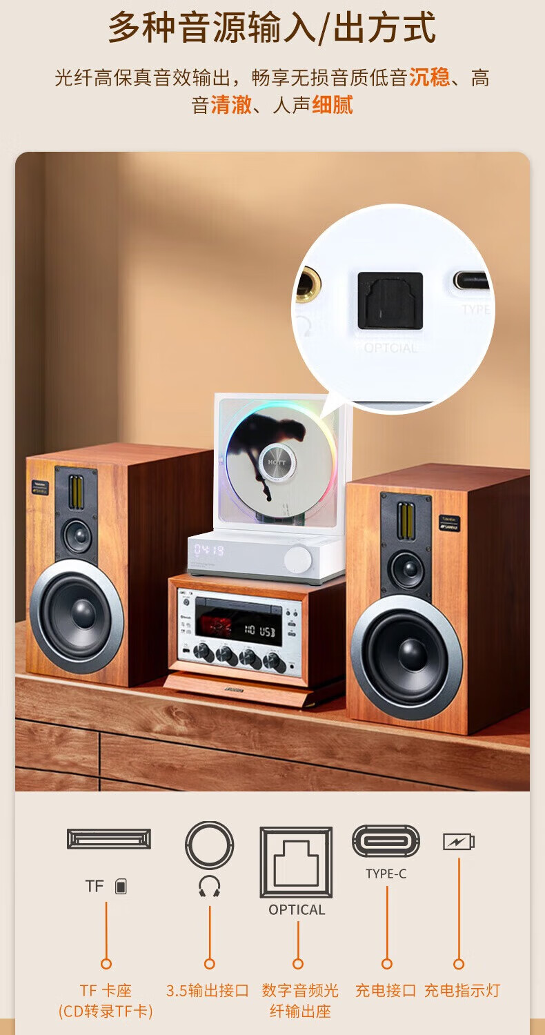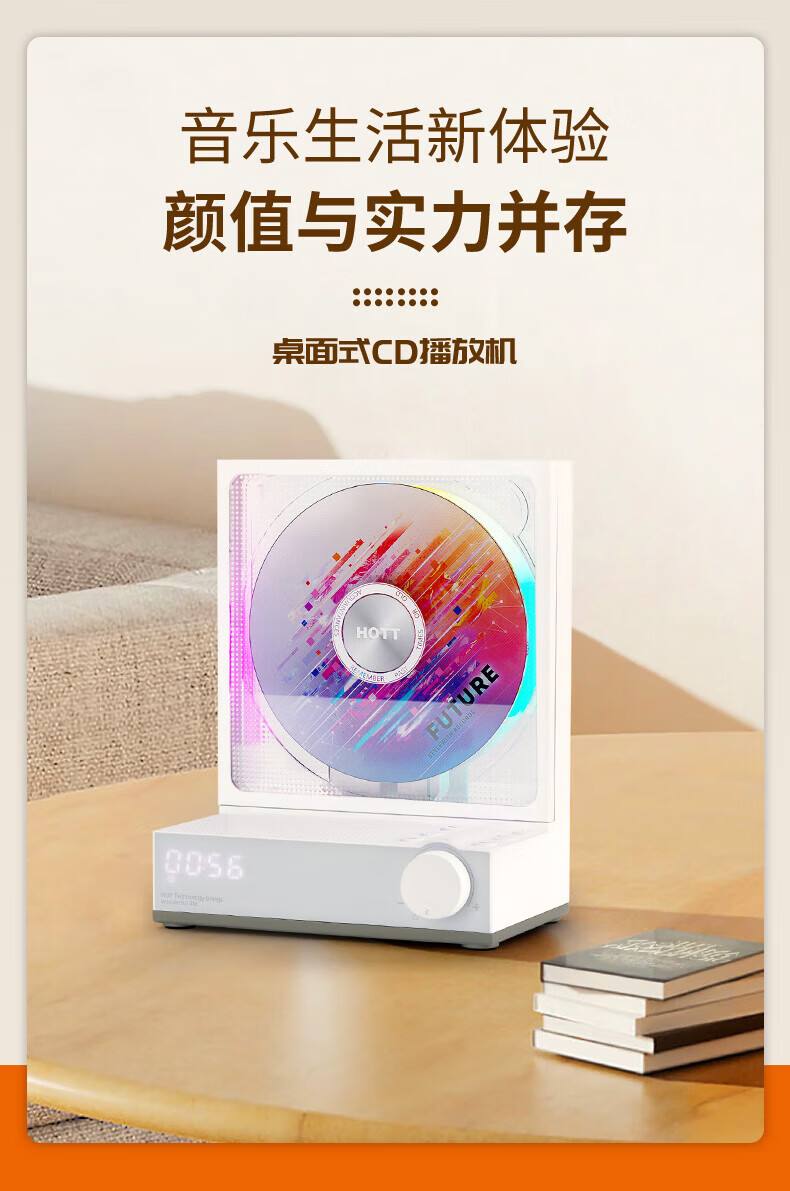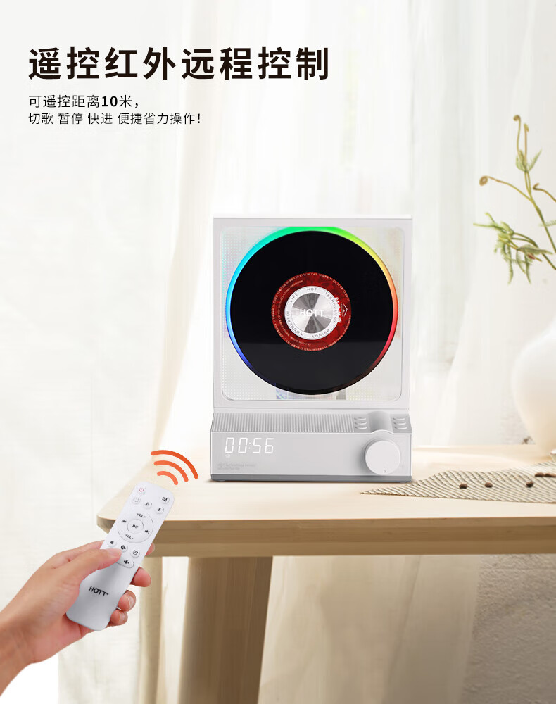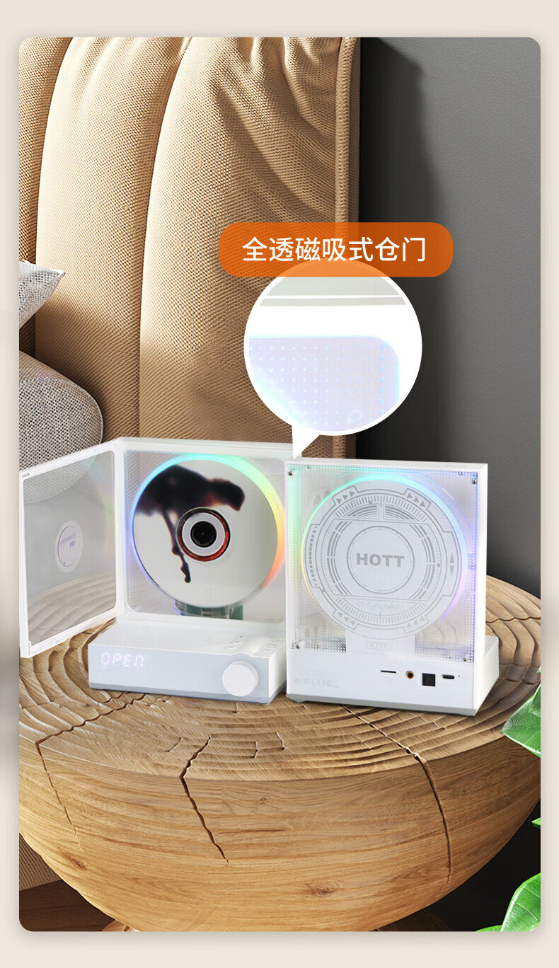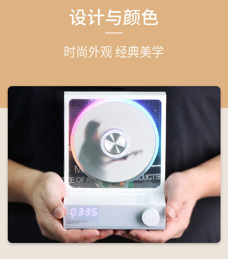 HOTT Voice of Berlin C229 Desktop CD Record Player HIFI Fever-Grade Wireless Bluetooth Speaker All-in-One Portable CD Player Retro Fashion Ornament Outdoor Portable Audio Elegant White U Disk Version Lossless Sound Quality + Imported Movement + Two-Way Bluetooth