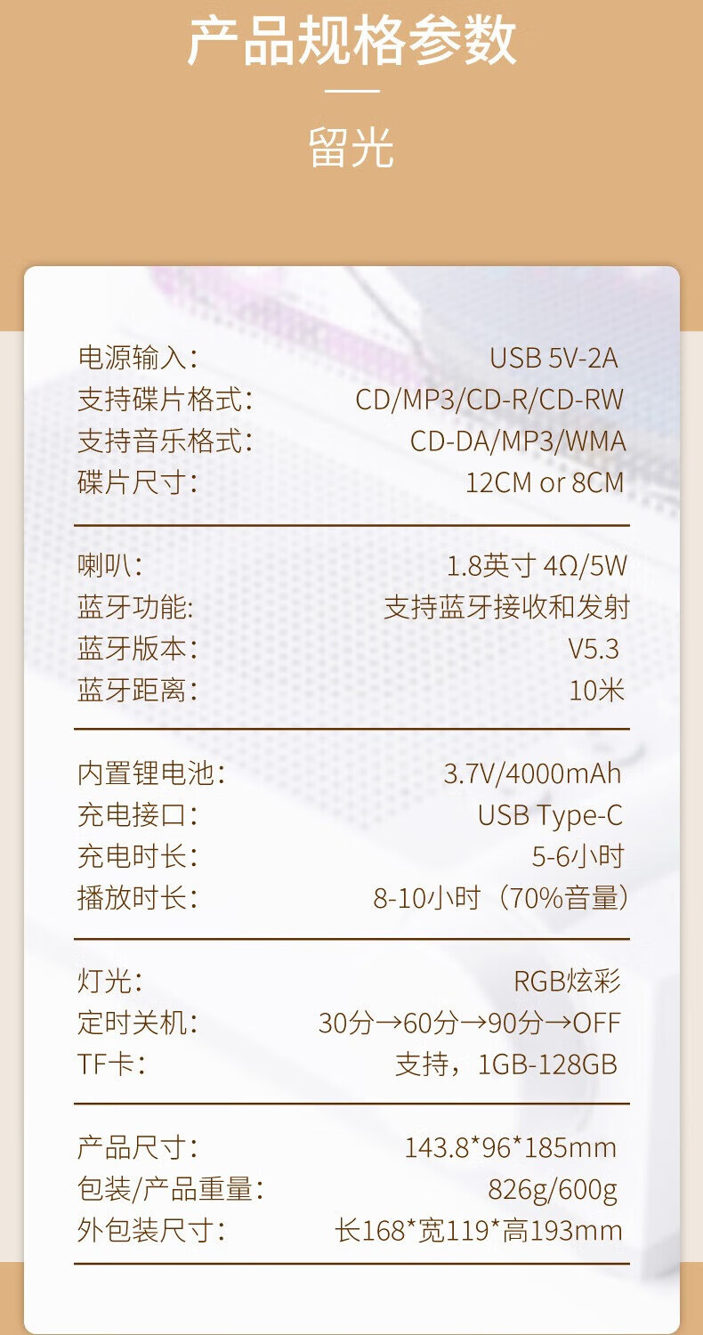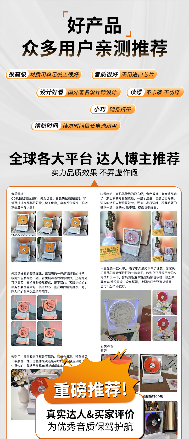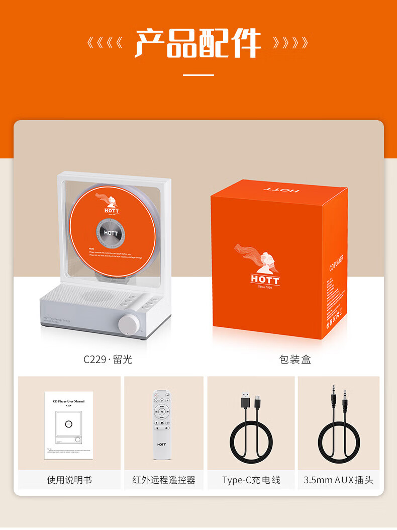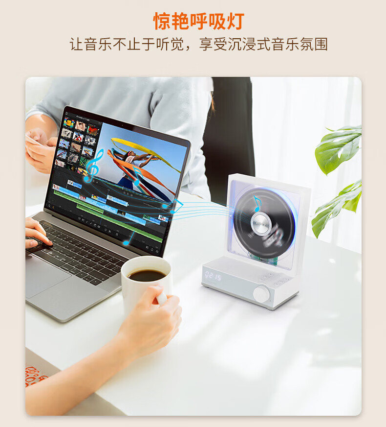 HOTT Voice of Berlin C229 Desktop CD Record Player HIFI Fever-Grade Wireless Bluetooth Speaker All-in-One Portable CD Player Retro Fashion Ornament Outdoor Portable Audio Elegant White U Disk Version Lossless Sound Quality + Imported Movement + Two-Way Bluetooth