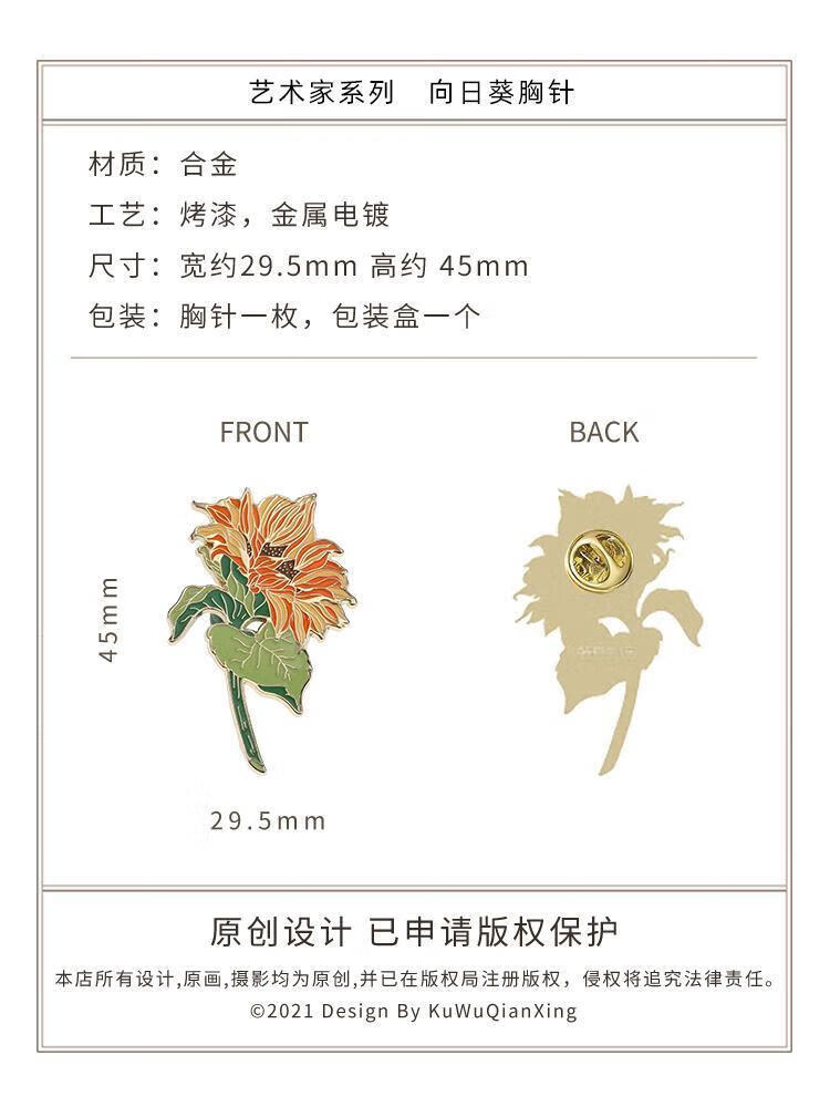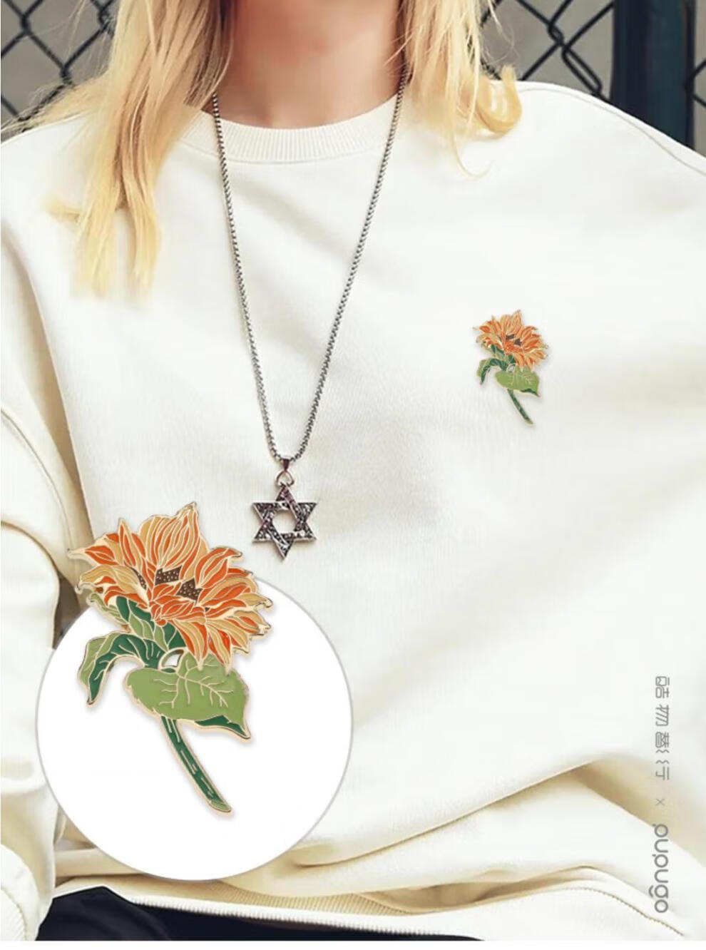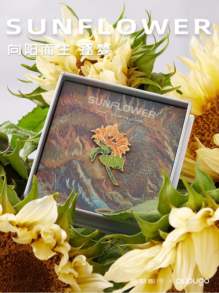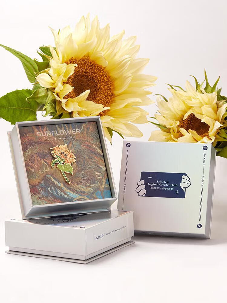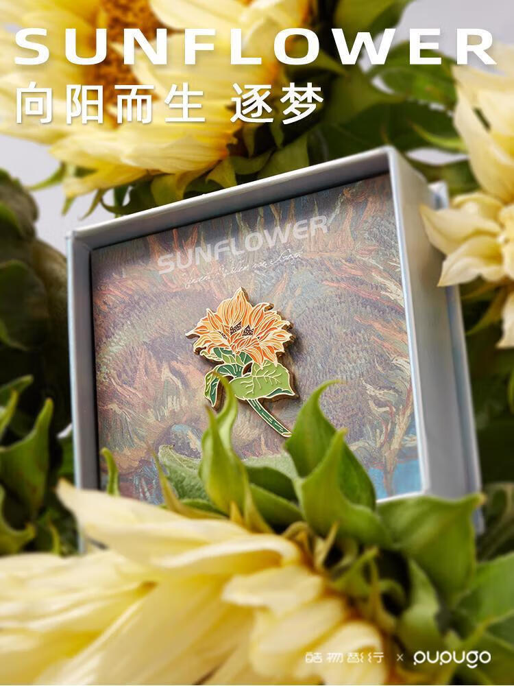 Worthy Van Gogh Sunflower Brooch Birthday Gift for Girls to Give to Friends 38 Women's Day Niche Souvenirs Van Gogh's Sunflowers Born towards the Sun Ordinary