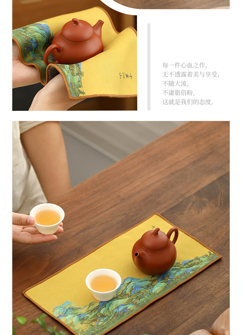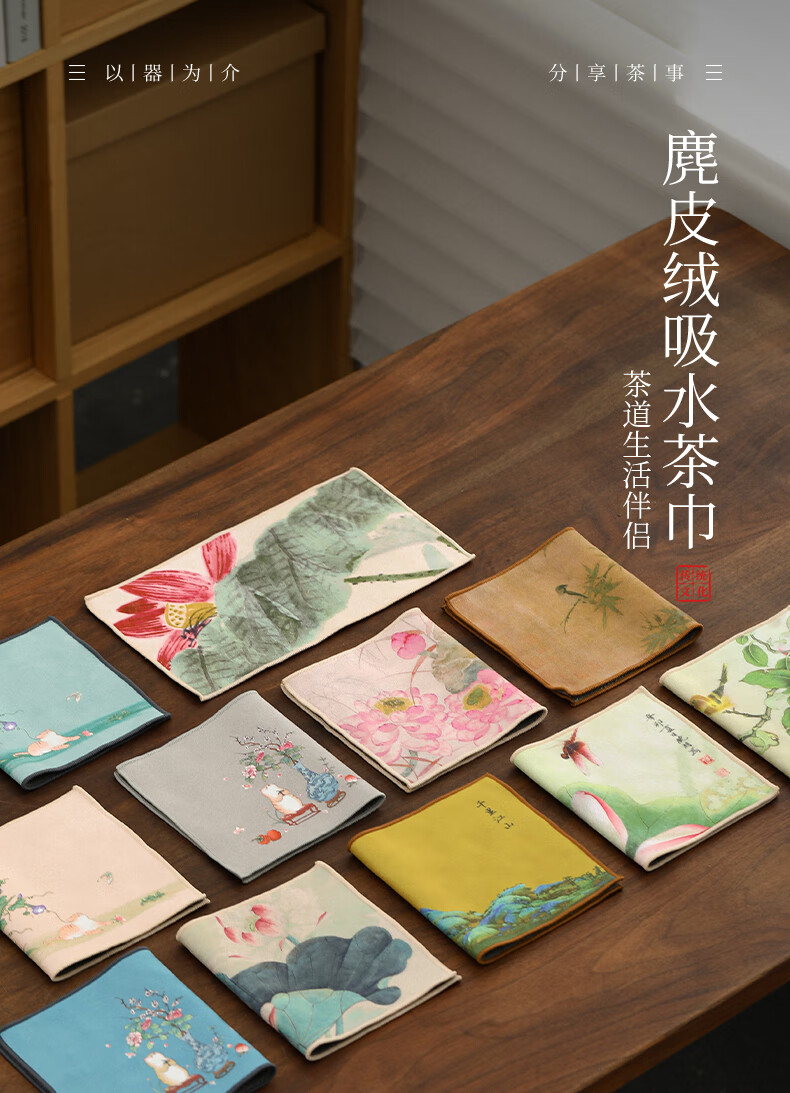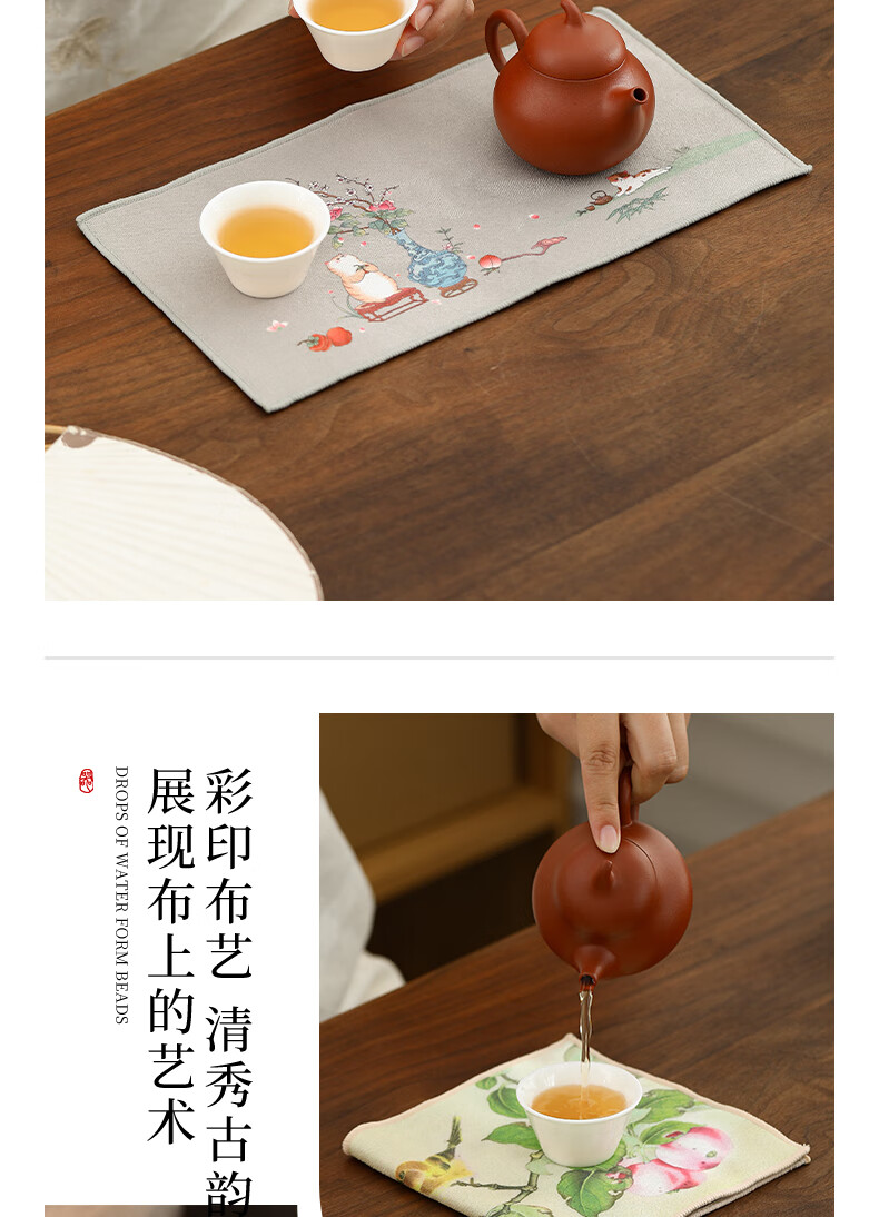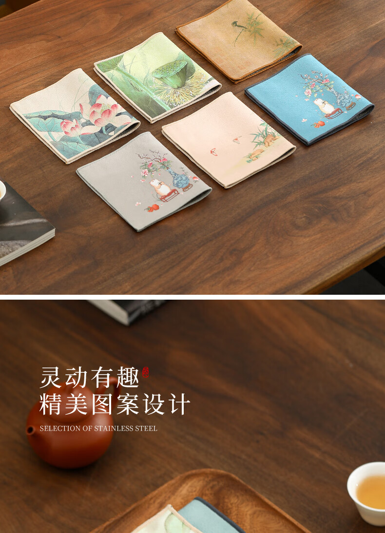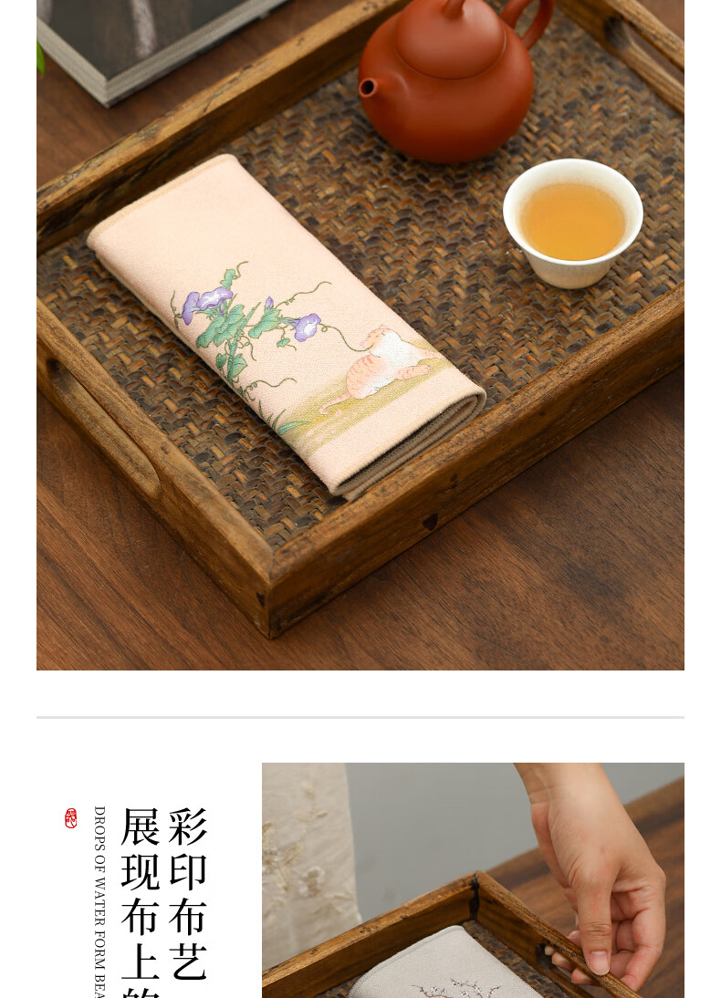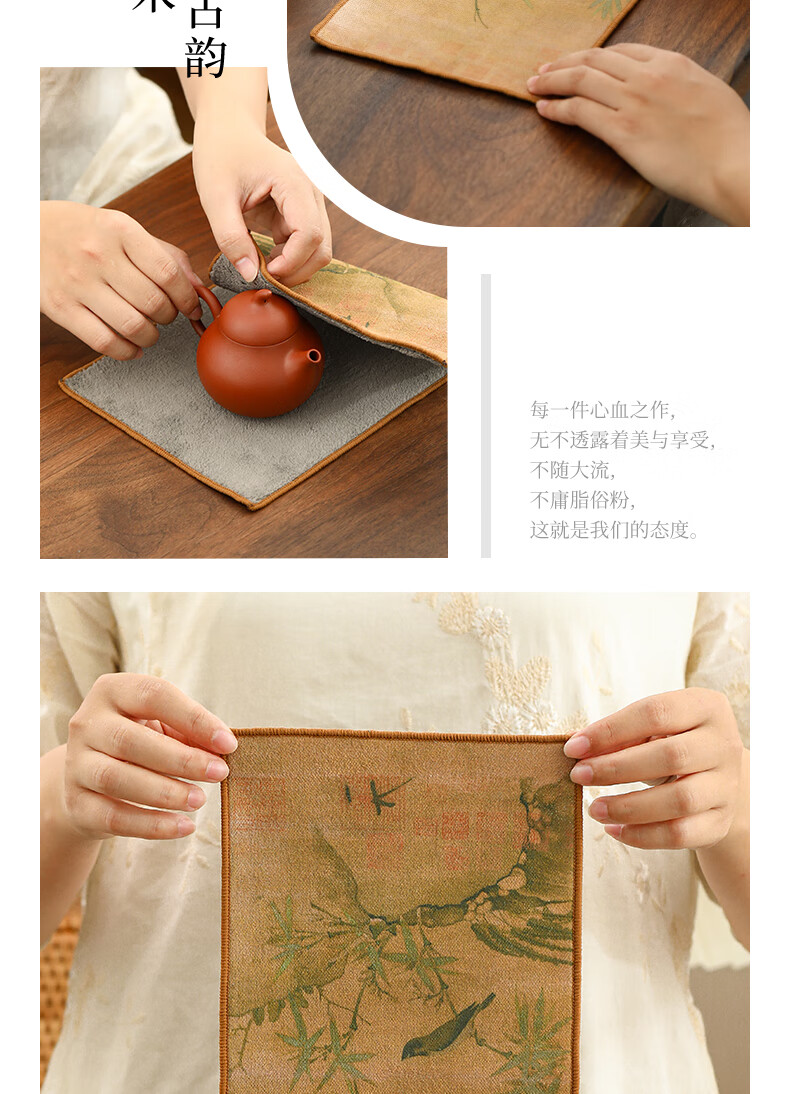 Tang Feng absorbent tea towel household painted Zen rag pot towel tea table special tea set towel new Chinese style fabric suede tea towel (bamboo peace)