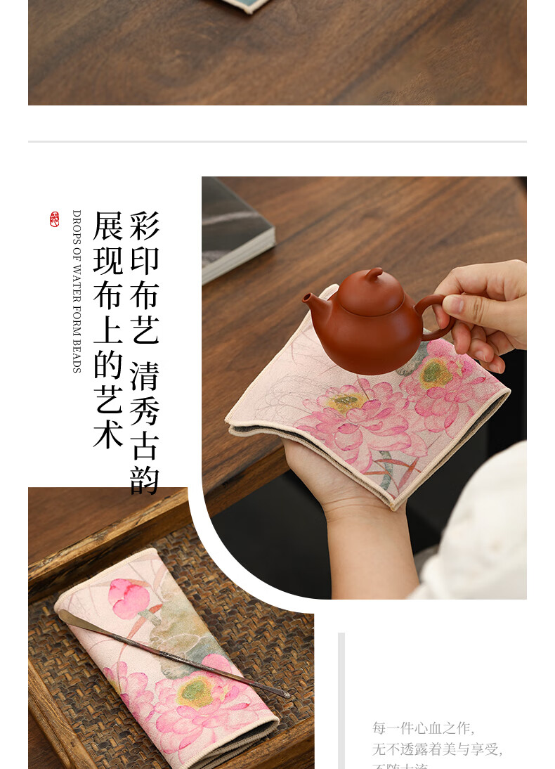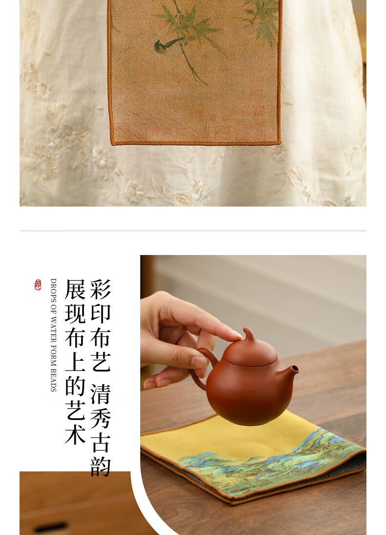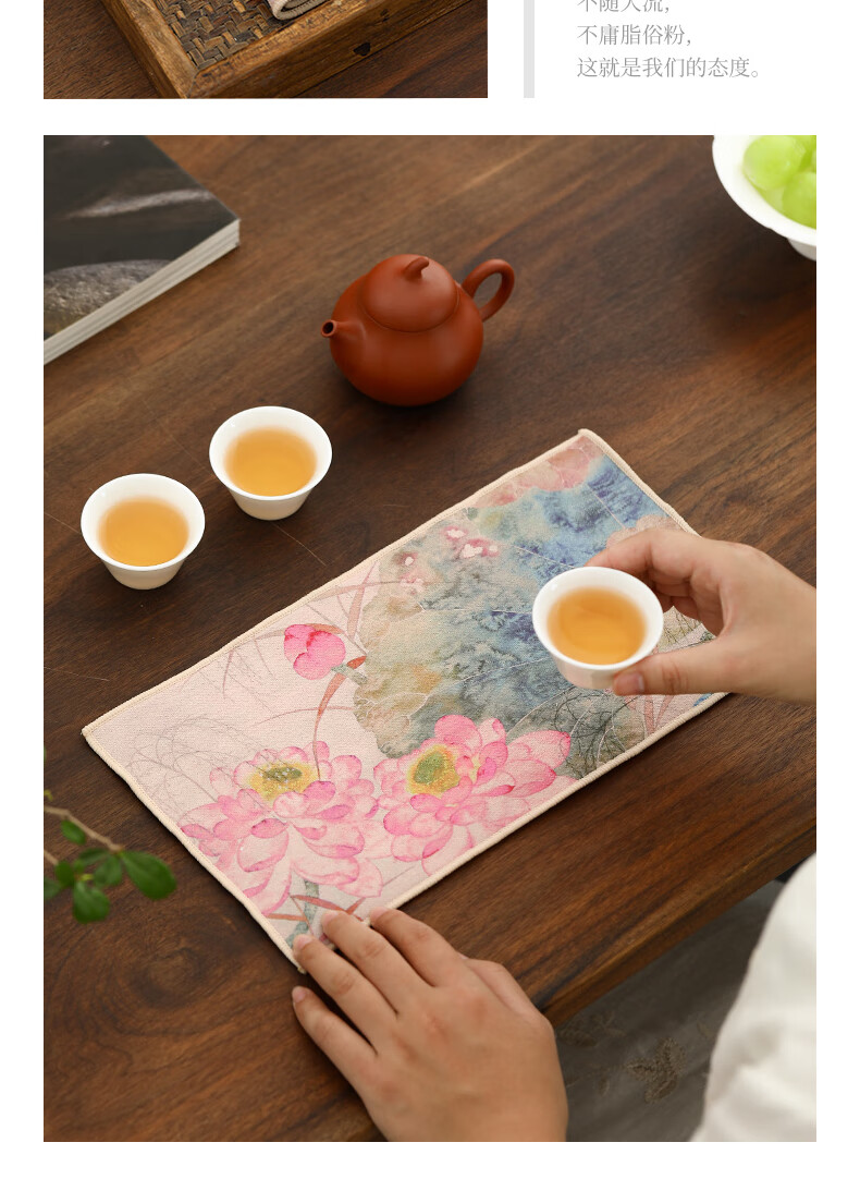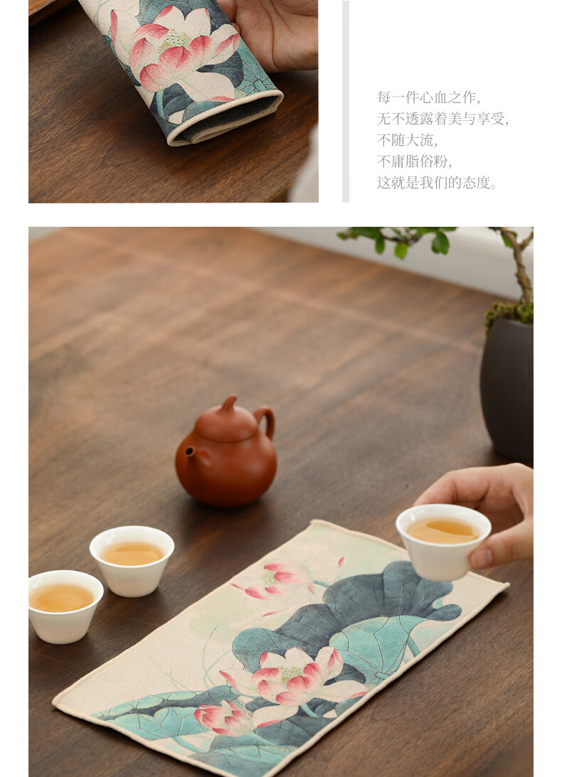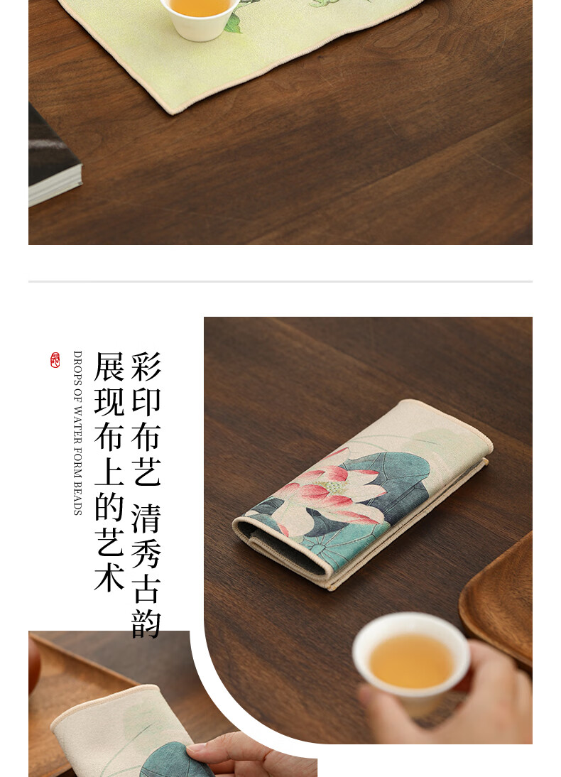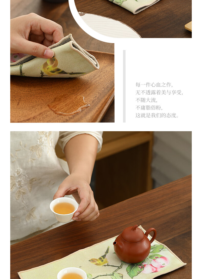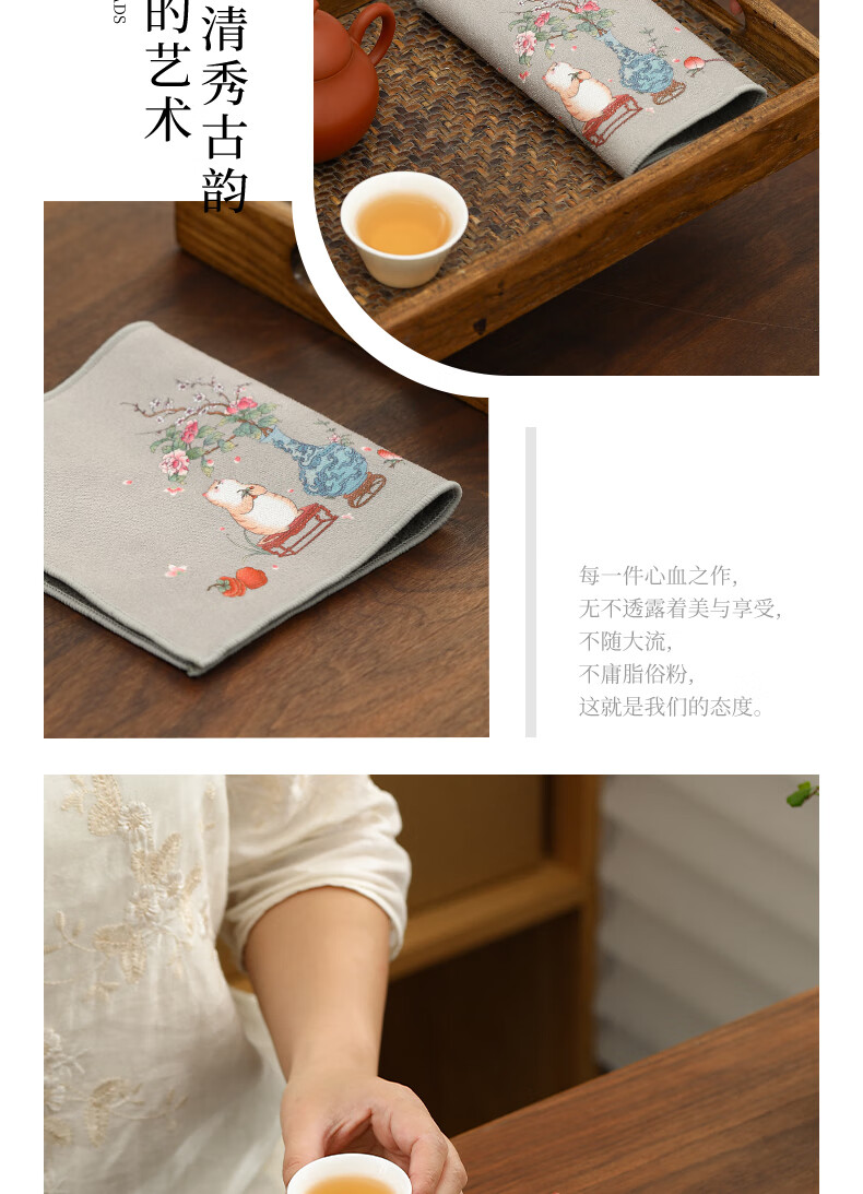 Tang Feng absorbent tea towel household painted Zen rag pot towel tea table special tea set towel new Chinese style fabric suede tea towel (bamboo peace)