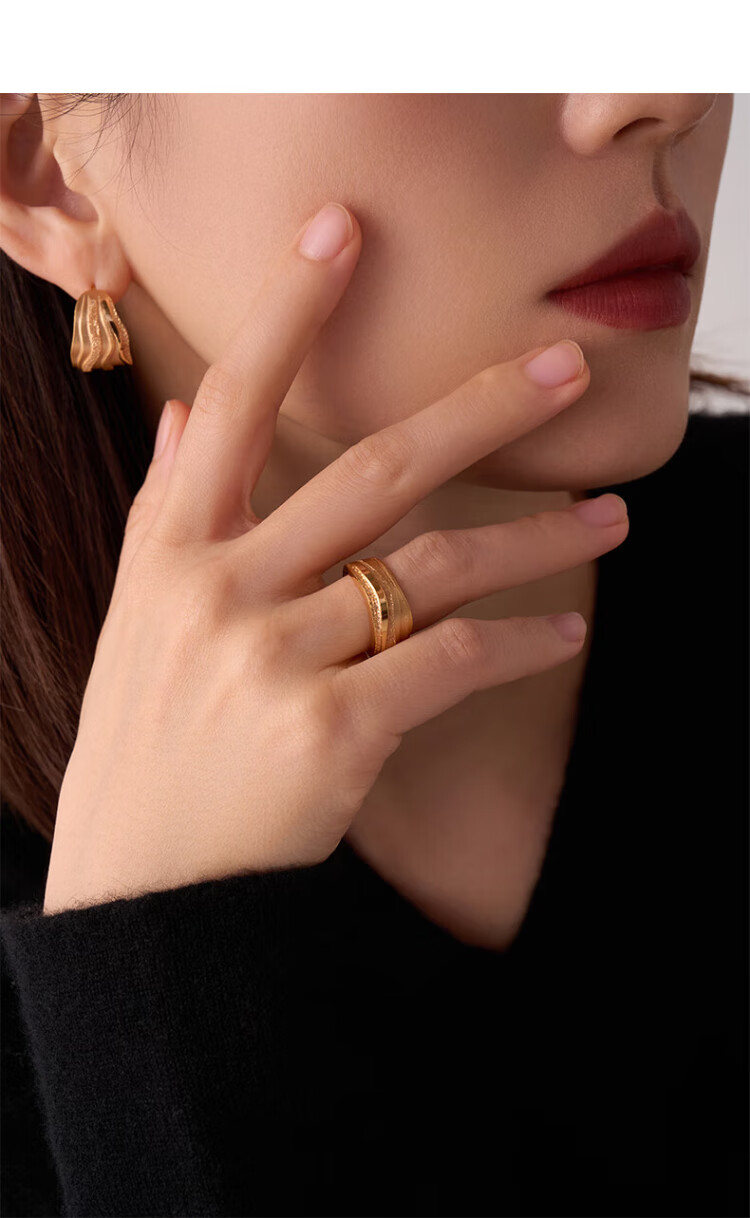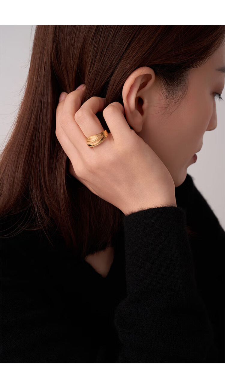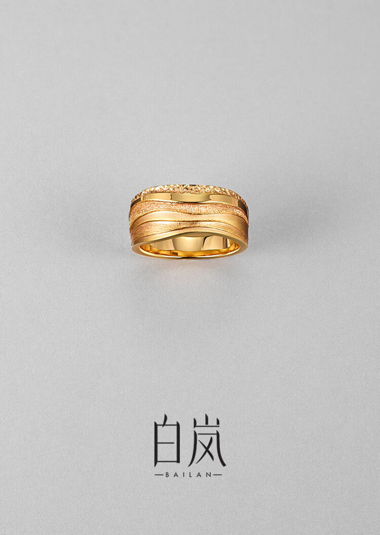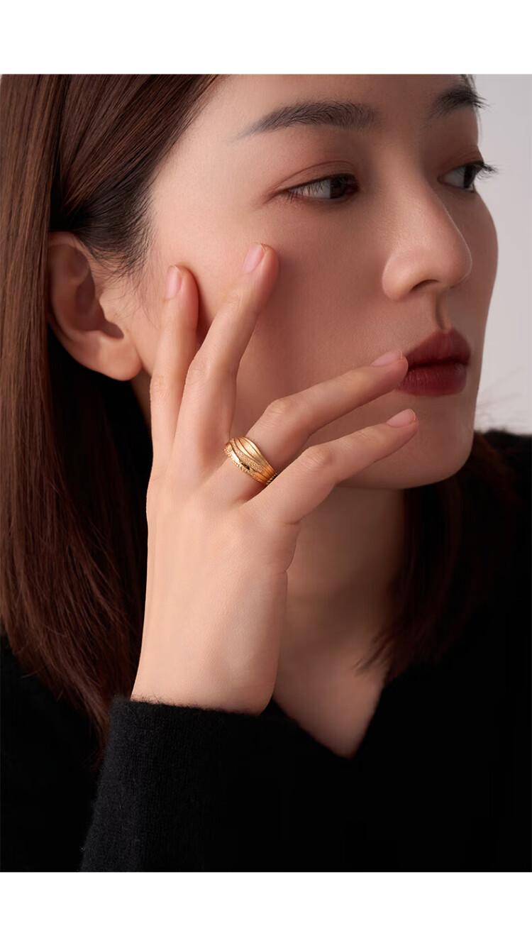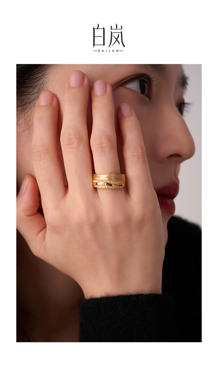 Bailan Jinchuan Ring 925 Silver Fine Jewelry Feminine Light Luxurious High-end Jewelry Birthday Gift for Wife Gold No. 12 (Inner Circumference 50.6mm)