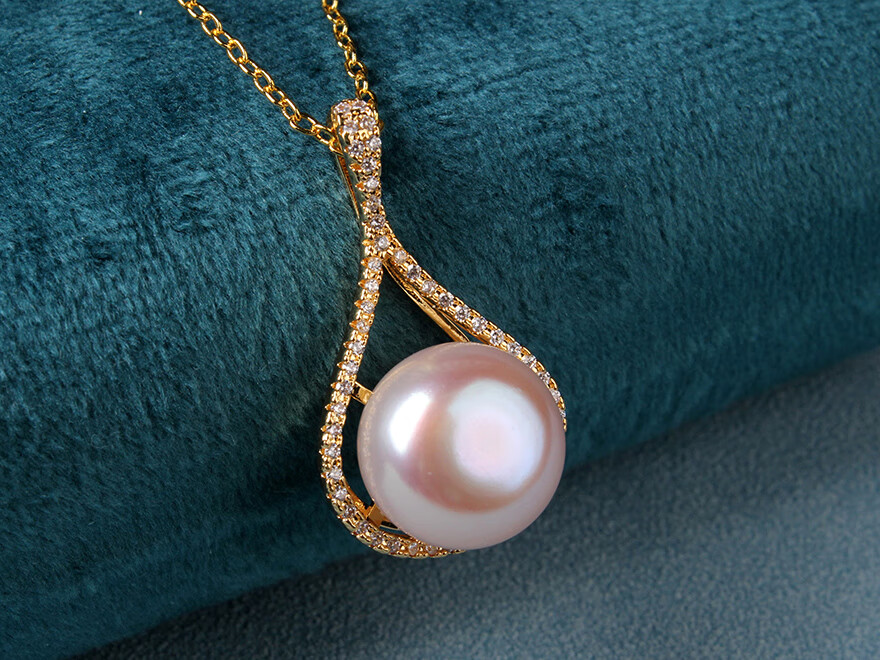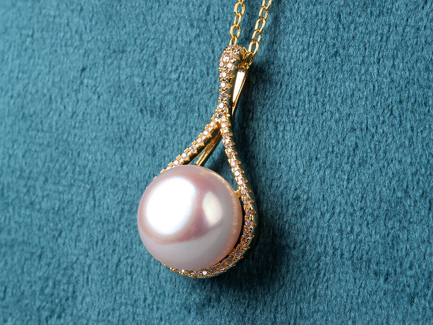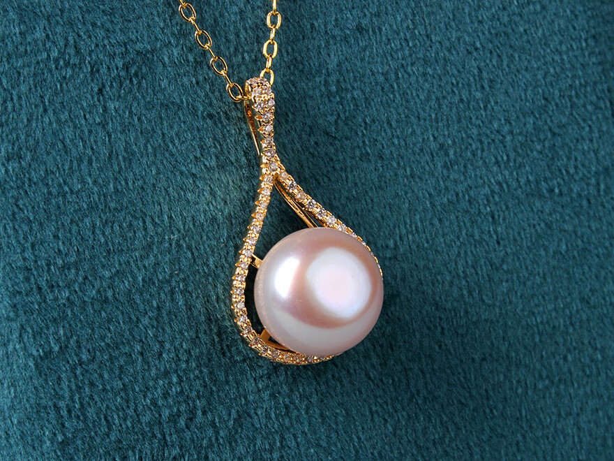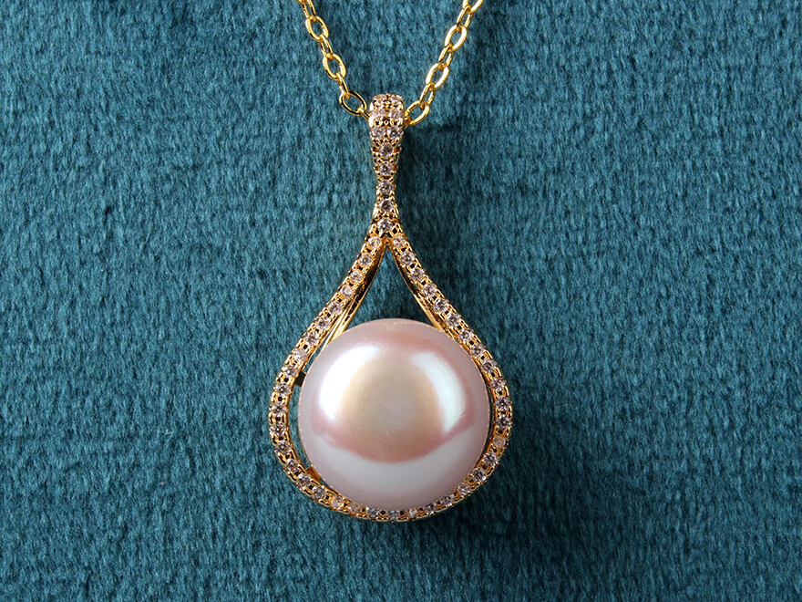Minol Freshwater Pearl Necklace Pink Purple Near Round Pearl Necklace Pendant Slightly Flawed 035