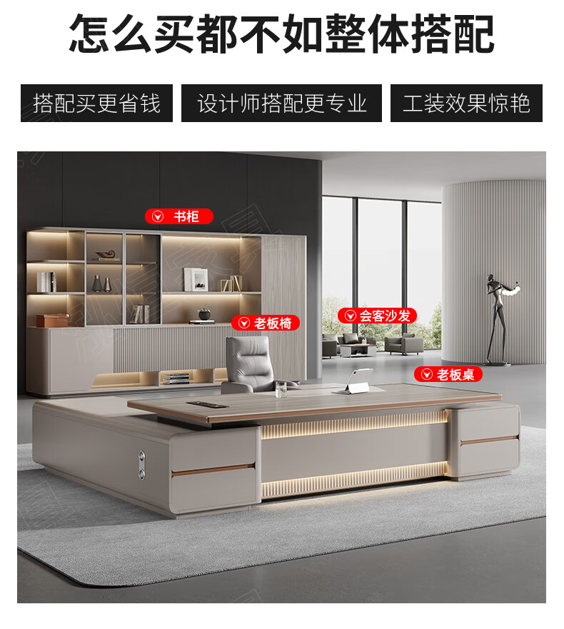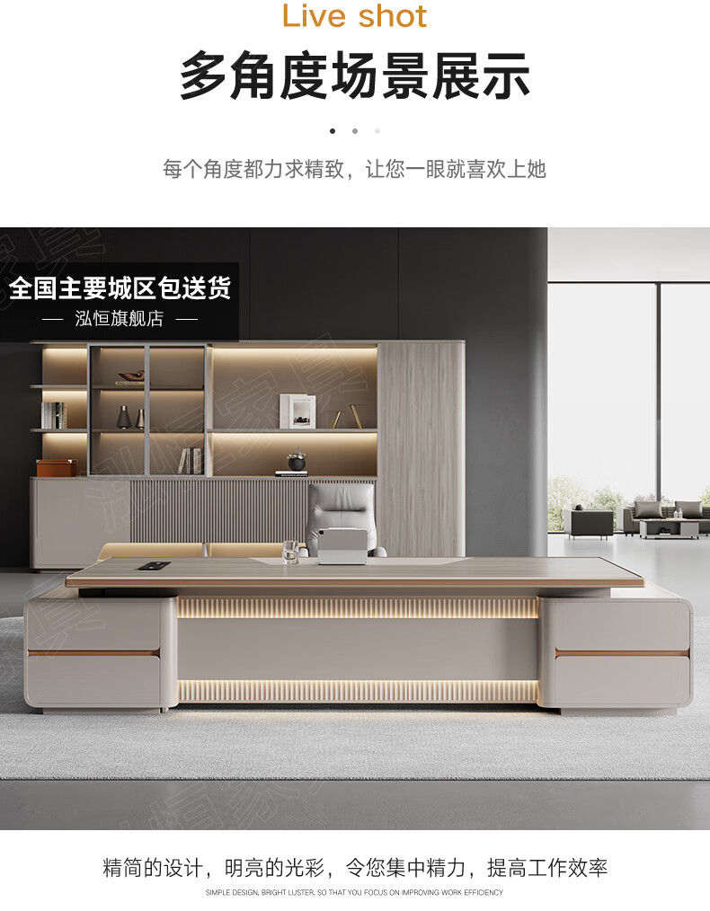 Hongheng boss desk desk simple modern chairman aluminum alloy manager light luxury executive desk office desk and chair combination material sample