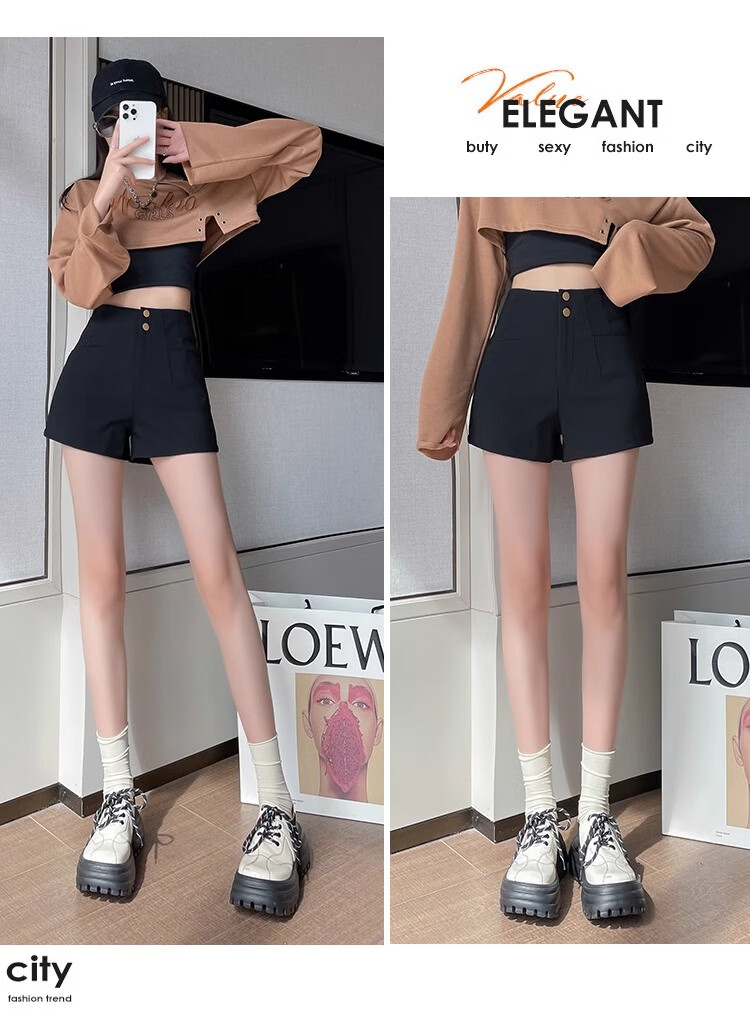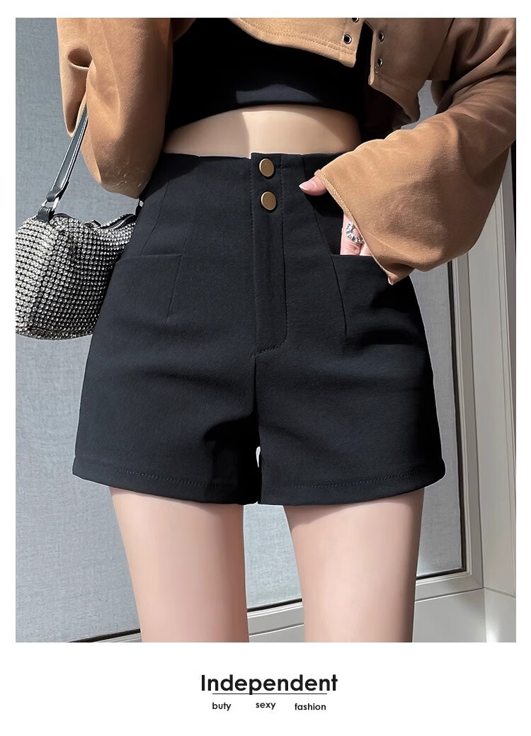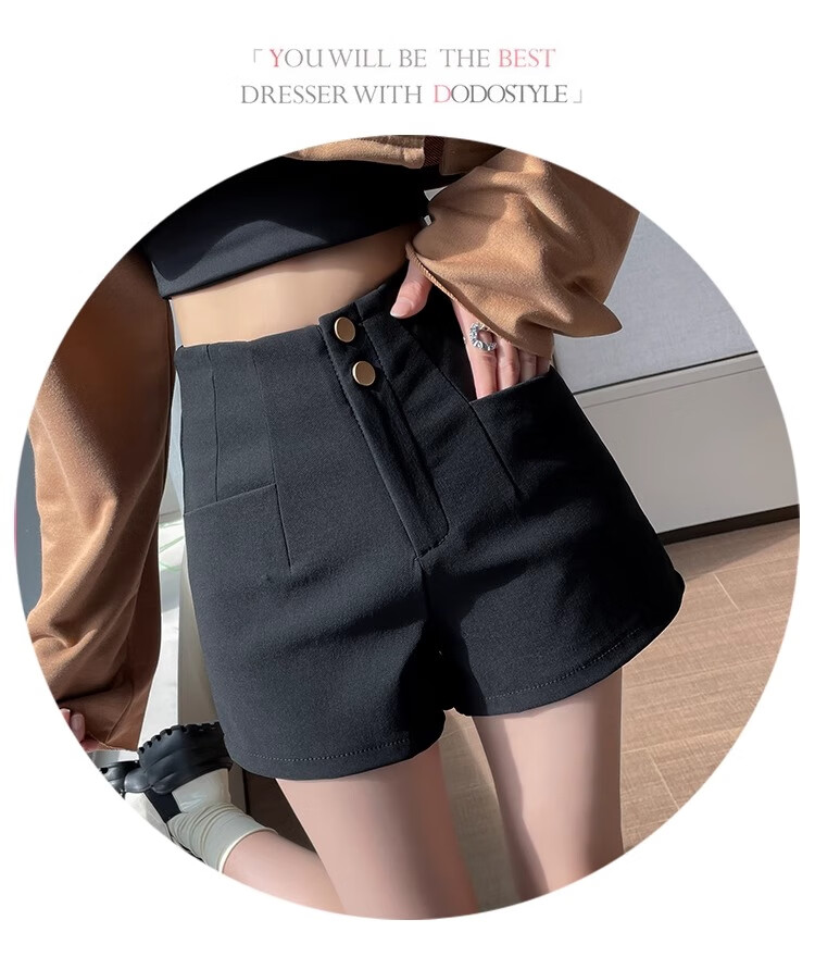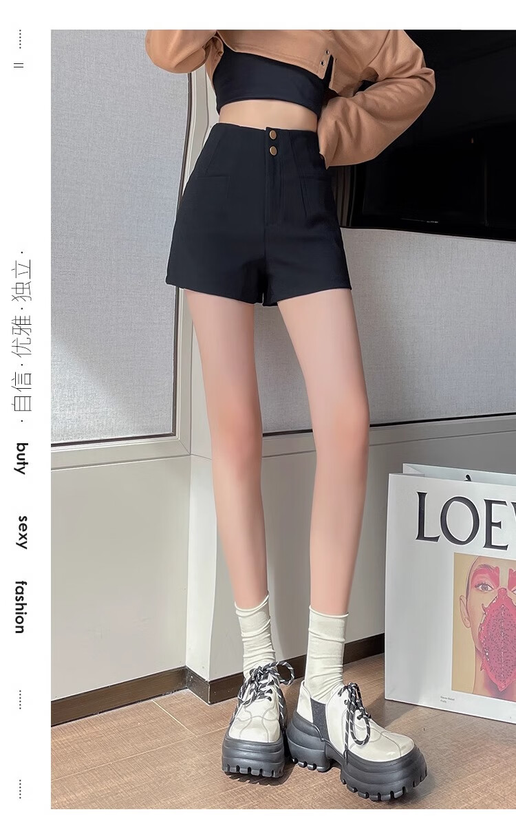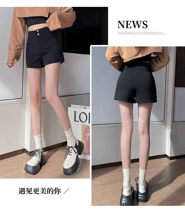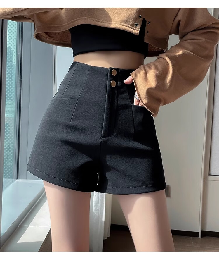 Ge Shihui shorts autumn and winter girls hot pants hot pants winter black shorts plus velvet casual pants high-waisted shorts with boots high-waisted suit shorts plus velvet L