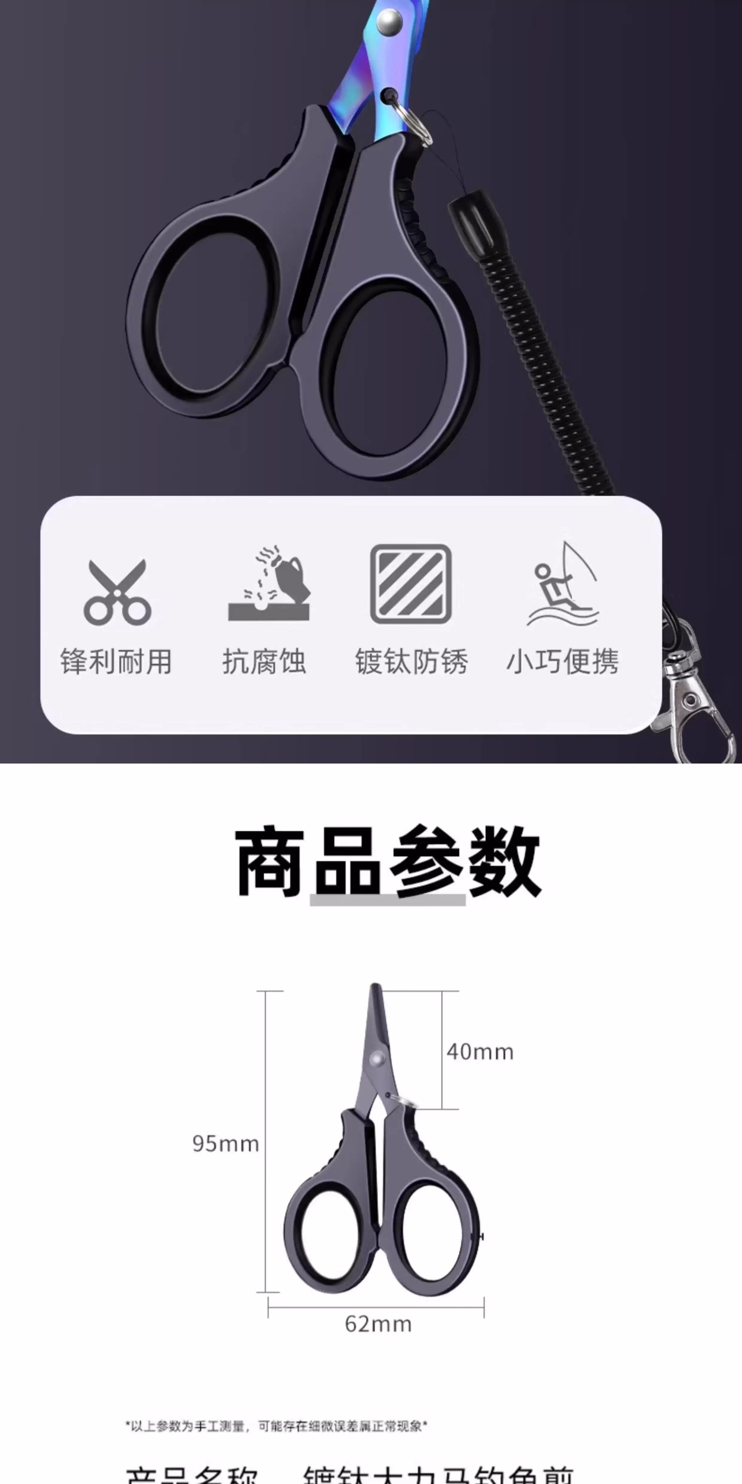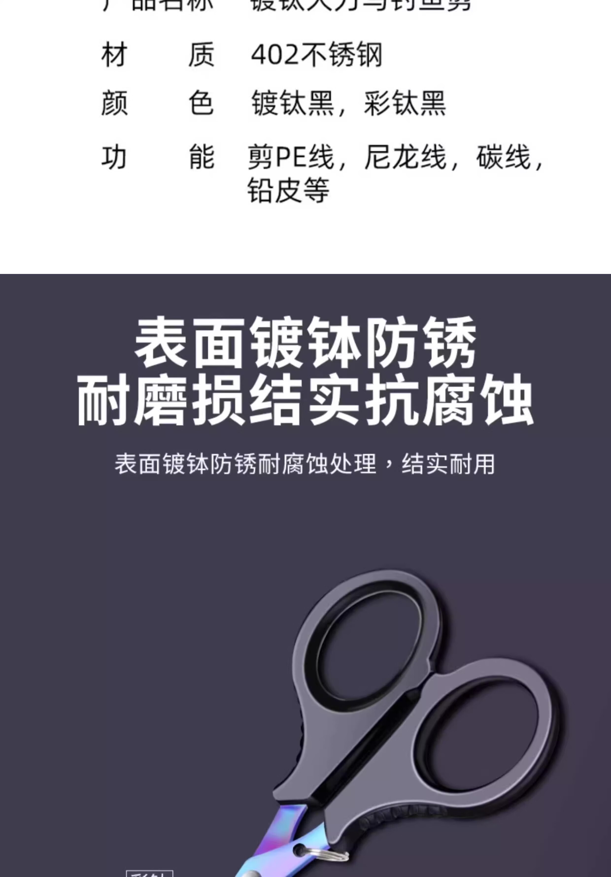 Titanium-plated manual scissors, PE line, lead-covered fishing line, strong horse sharpness, stainless steel lure small scissors, multi-functional fishing line scissors - titanium-plated black scissors - 1 pair