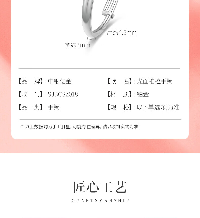 BOC Billion Gold PT950 push-pull glossy platinum bracelet for women, platinum ring, live birthday, Valentine's Day gift for girlfriend, platinum push-pull bracelet, gold weight is about 20g