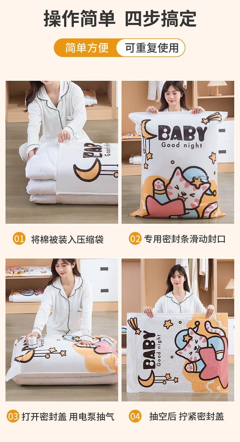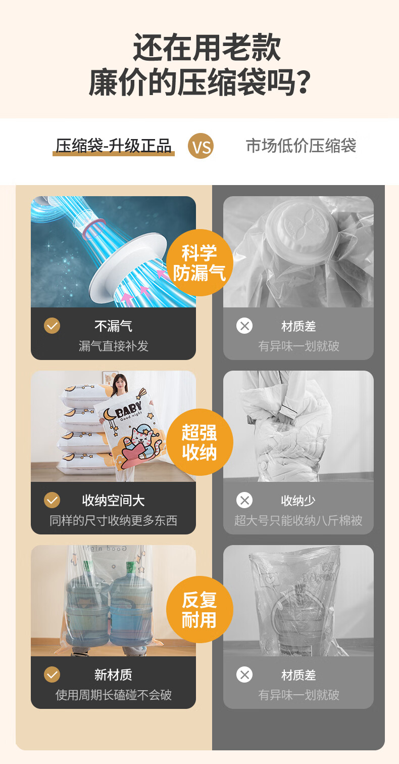 Xivis vacuum compression storage bag, special air extraction bag for clothes and quilts, suitcase, clothing sealing storage and organization bag, 5-piece set without pump, large size