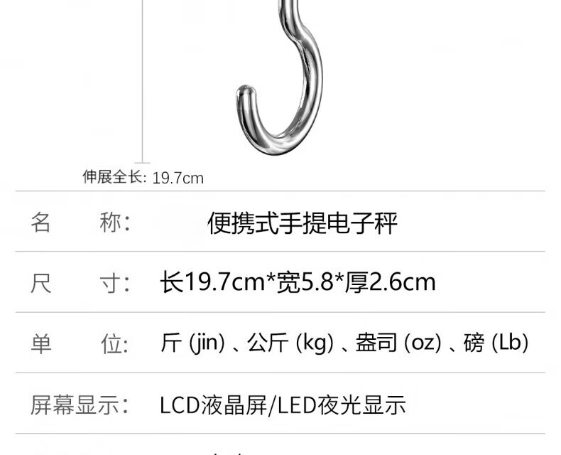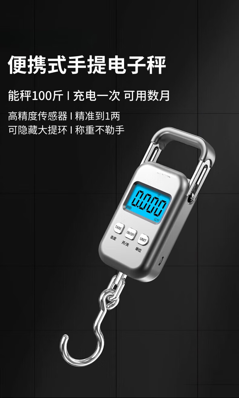 JCZS German brand high-precision portable electronic scale express scale portable spring luggage fish scale portable charging charging model charging cable protective cover 10kg