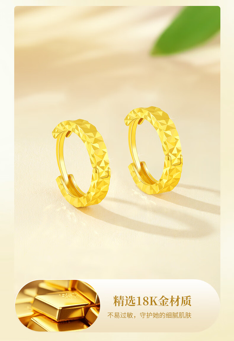 China Gold (CHINA GOLD) Crushed Ice Ring 18k Gold Earrings for Women Gold Birthday Gifts for Girlfriends and Wife Wedding Anniversary Practical Gifts Jingsuda-18k Gold Baby's Breath Earrings