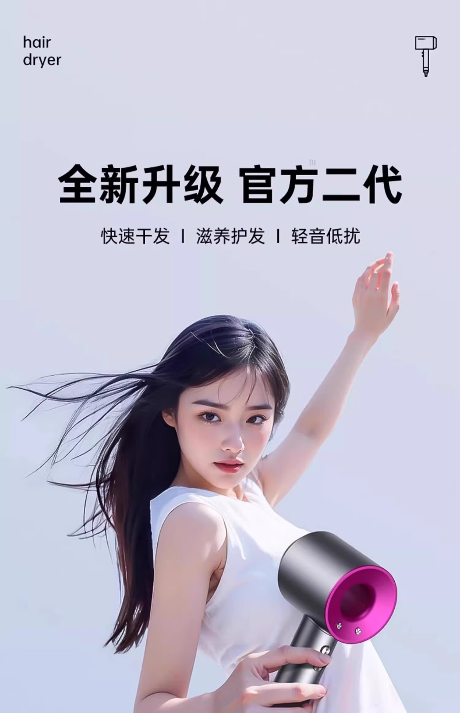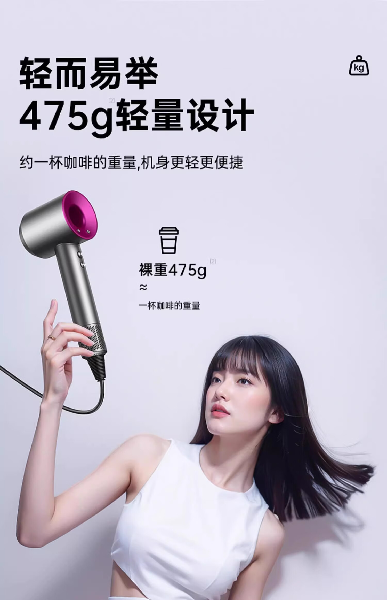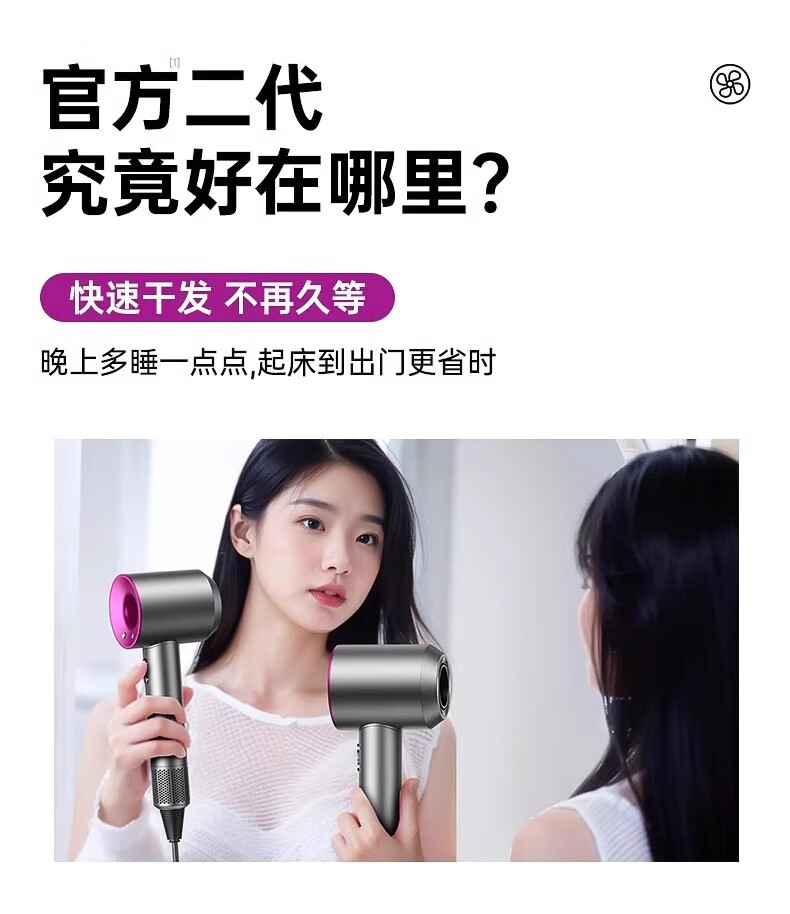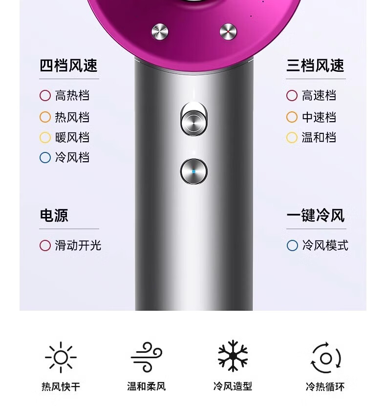Leifen official website Leifen high-speed hair dryer household negative ions 2024 Leifen hair dryer hair care hotel strong wind quick drying 6-year warranty 30 days no reason rose red - single nozzle 1.8 meters + hanger