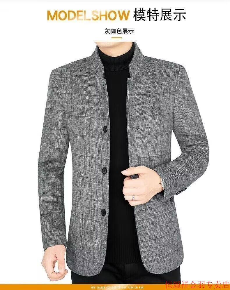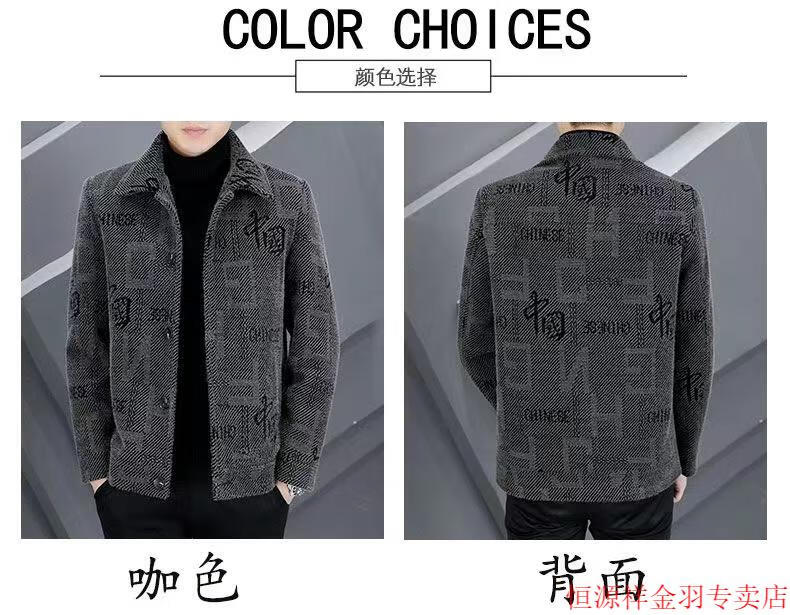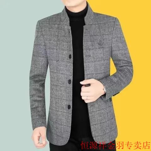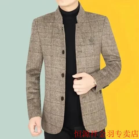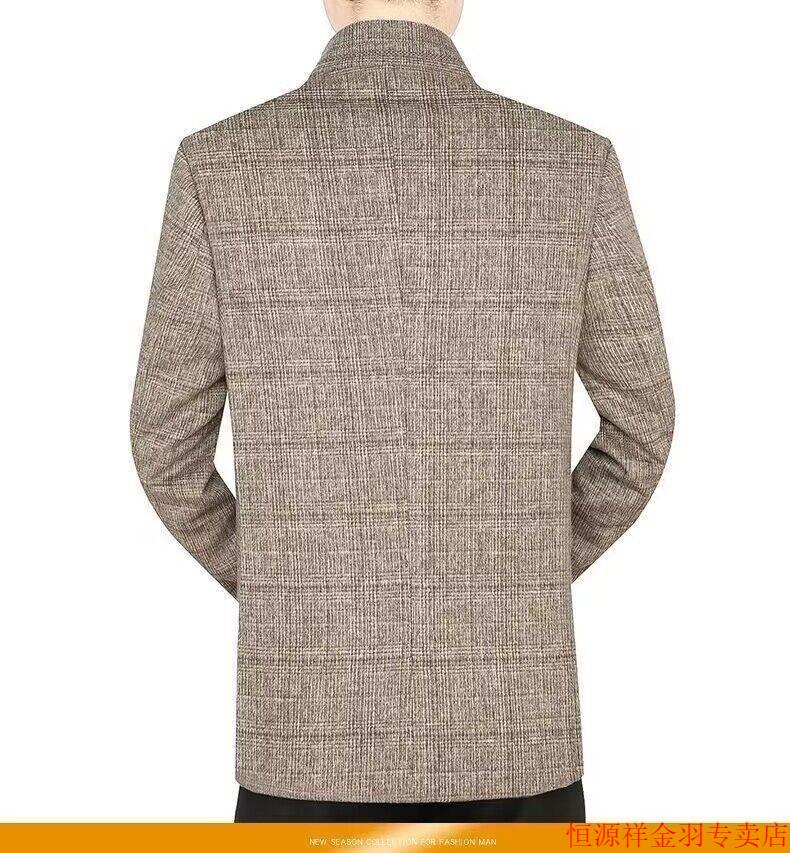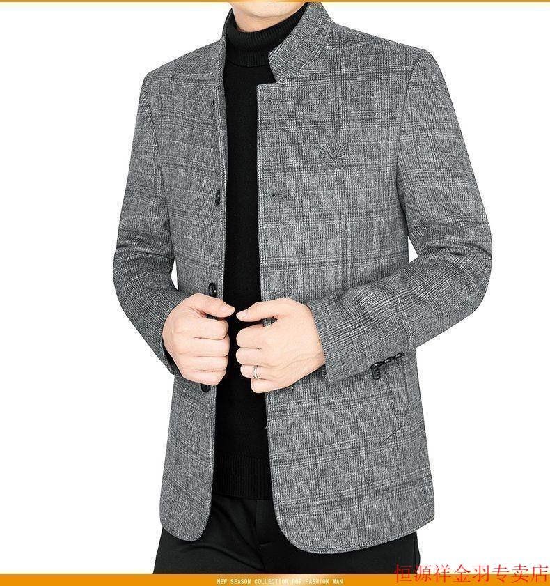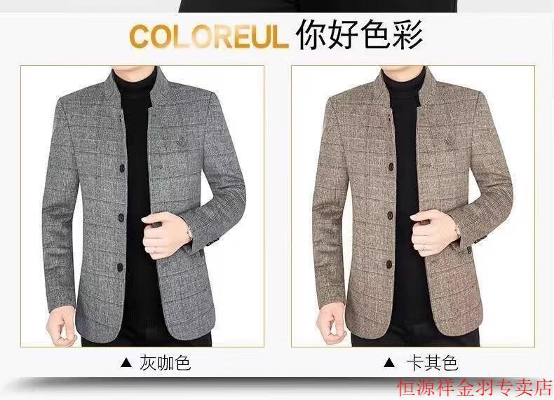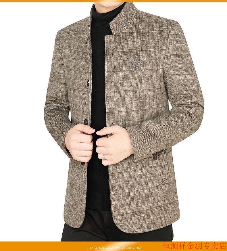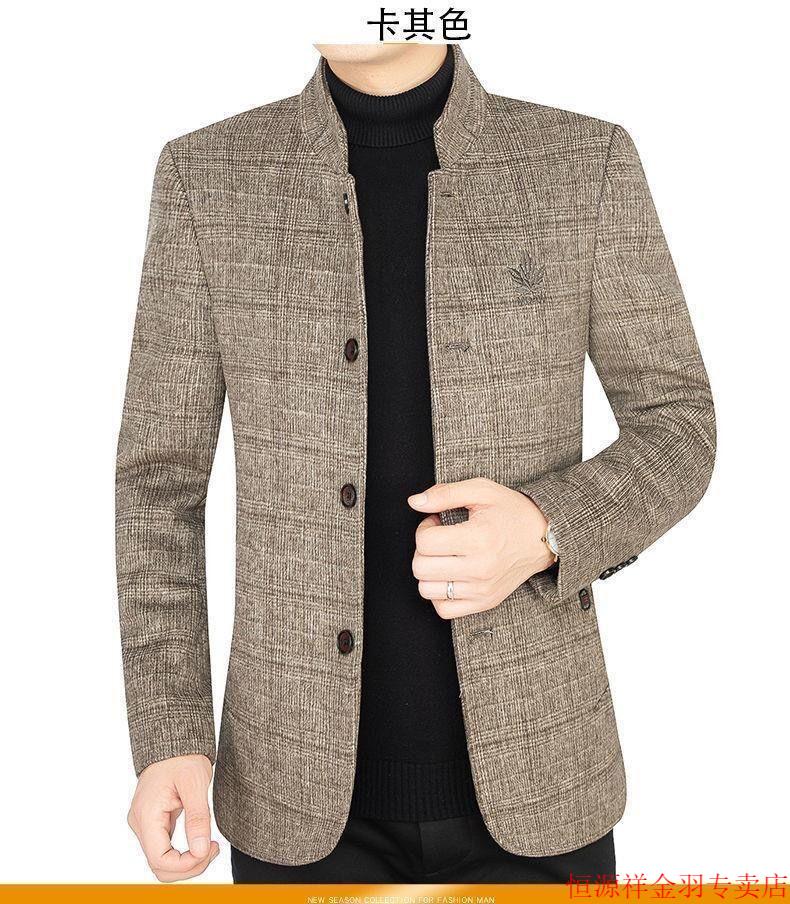 Hengyuanxiang's new spring, autumn and winter woolen jackets for middle-aged men, business casual stand-up collar woolen jackets, men's woolen coats, khaki+velvet++ thick, 71 models, XXS XXL code, recommended 140-155 Jin Jin equals 0.5 kg